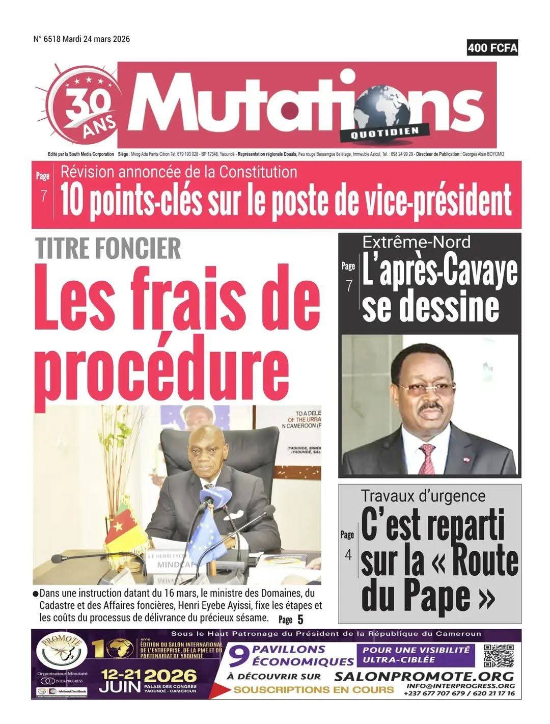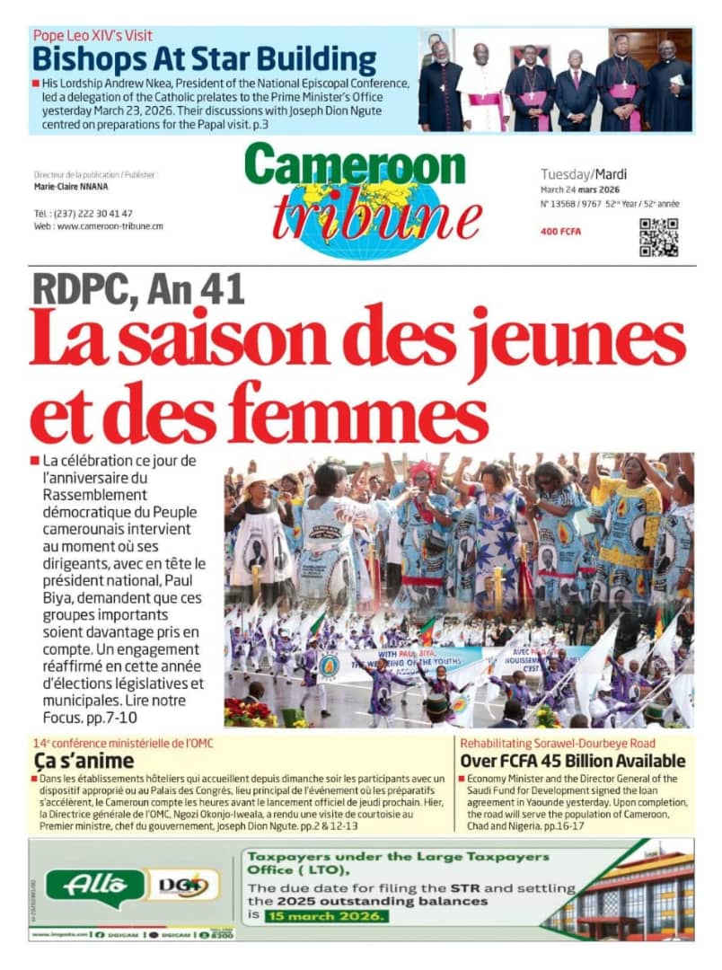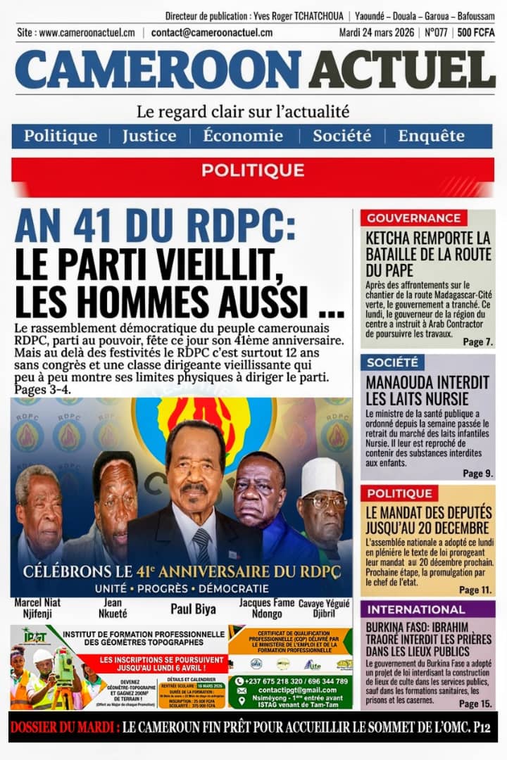 Cameroun : les journaux du mardi 24 mars 2026 Lire les UNES du Cameroun