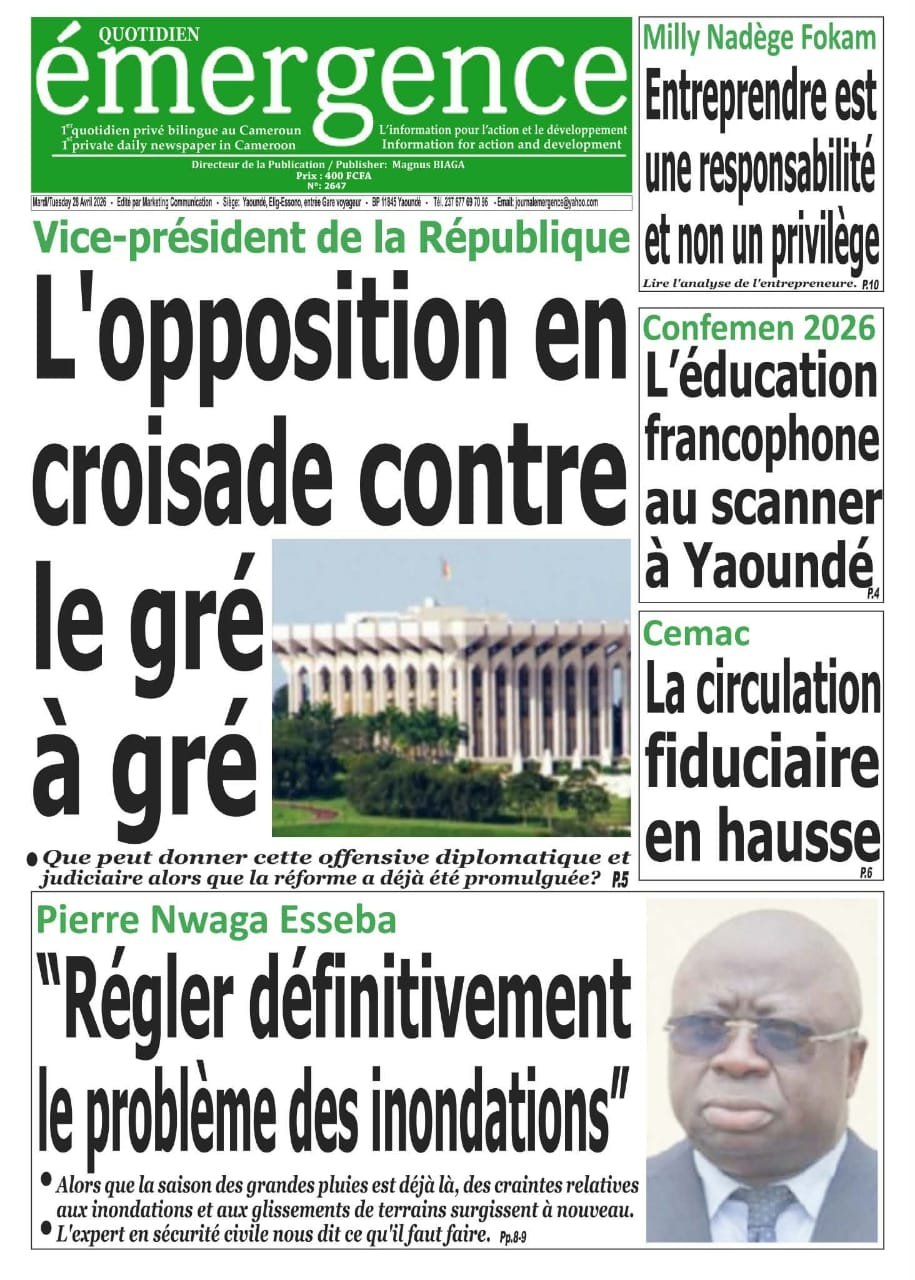 Cameroun : les journaux du mardi 28 avril 2026 Lire les UNES camerounaises