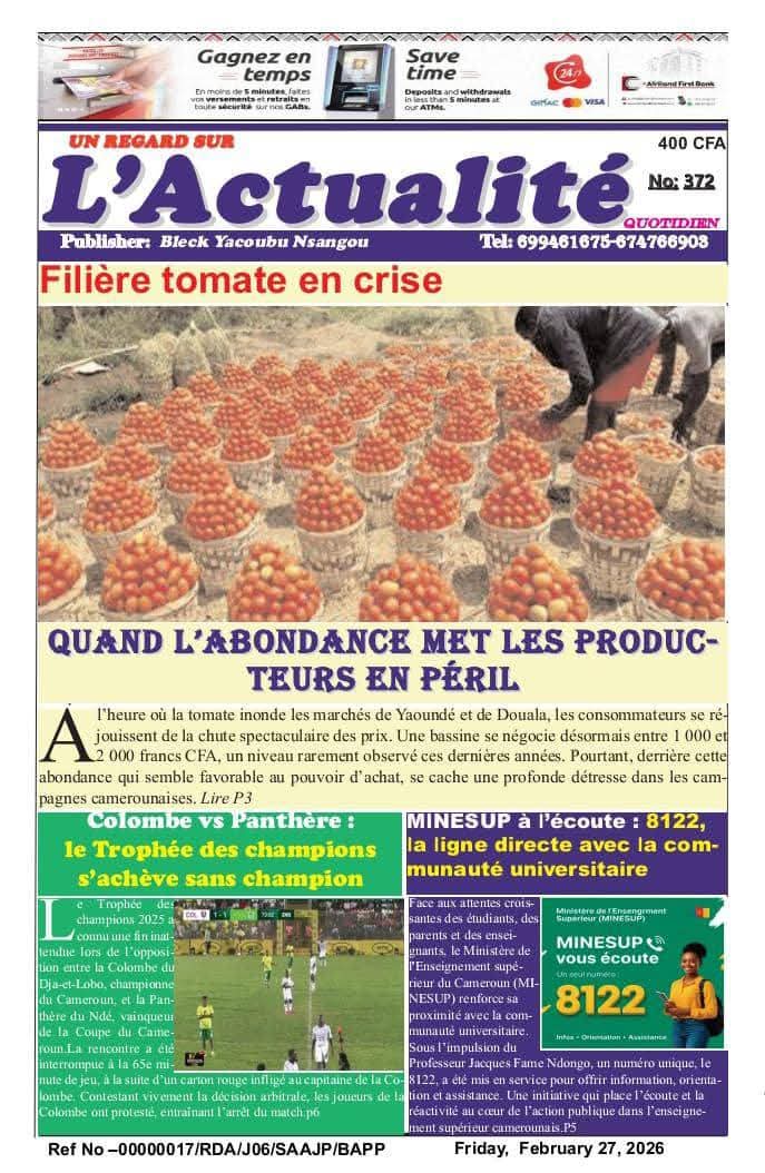 Cameroun : les journaux du vendredi 27 février 2026