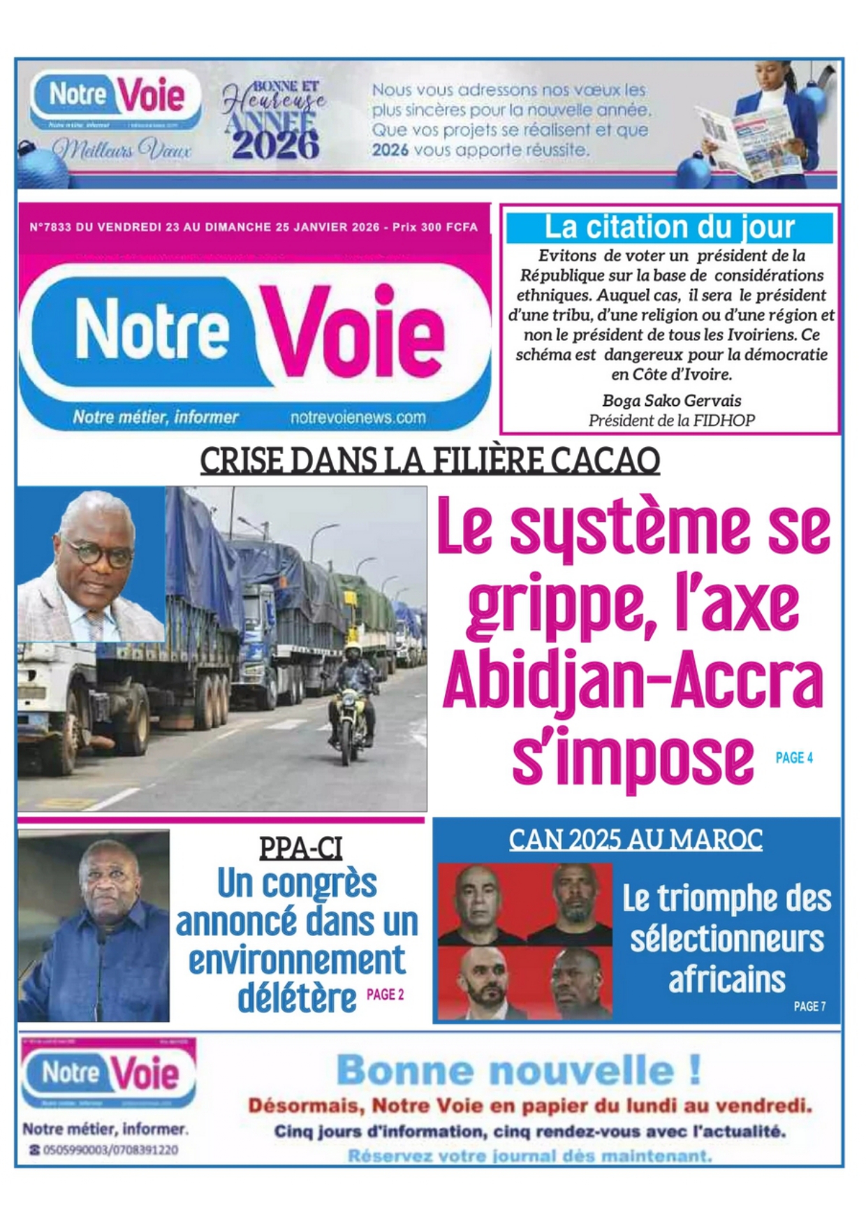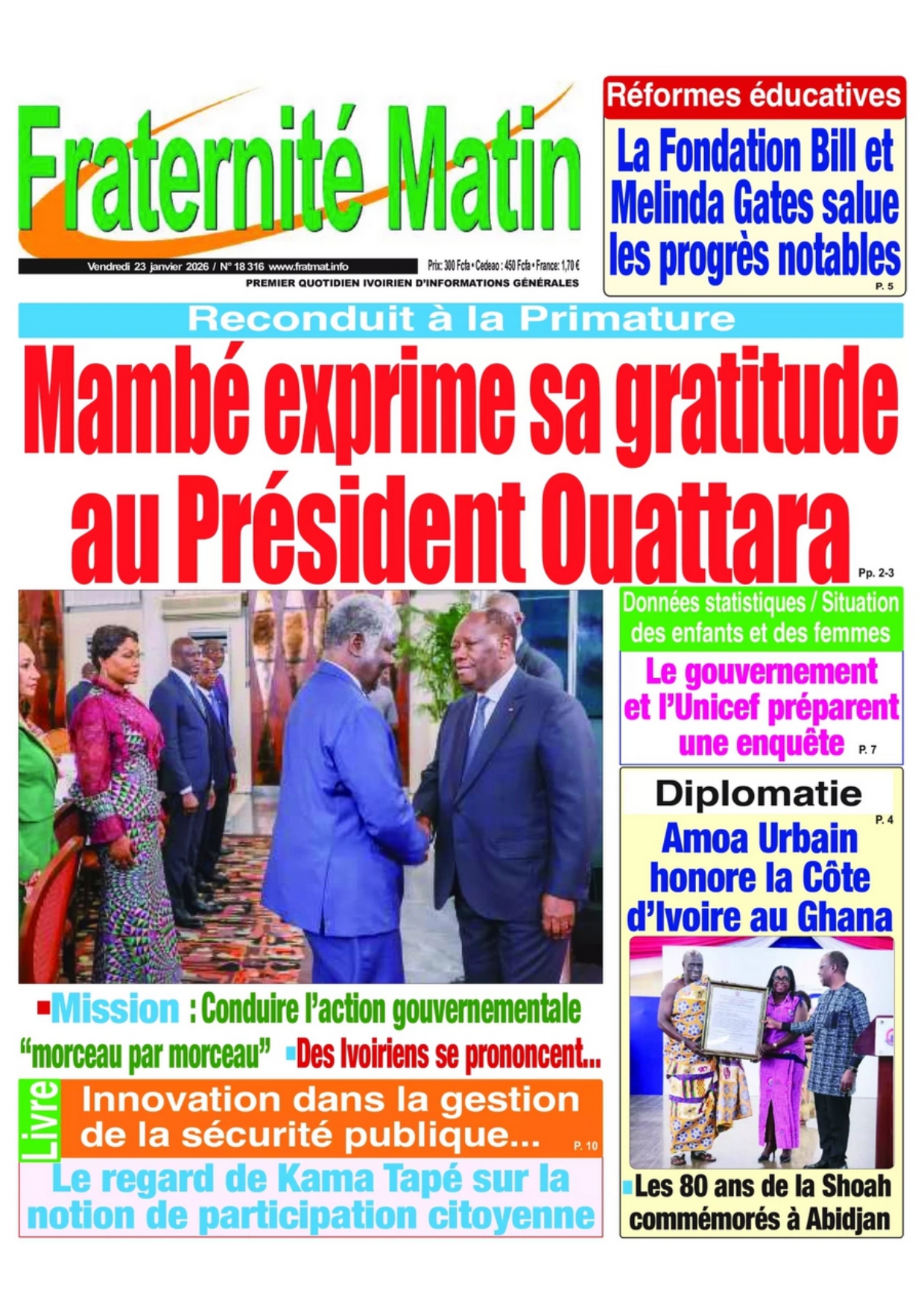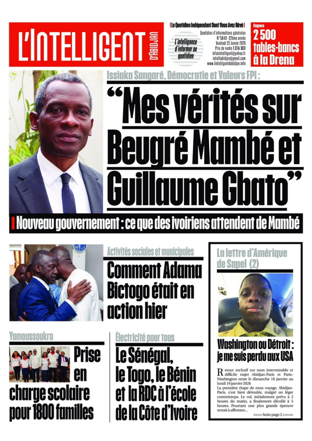 Côte d'Ivoire : les journaux du vendredi 23 janvier 2026 Lire les journaux du Côte d'Ivoire
