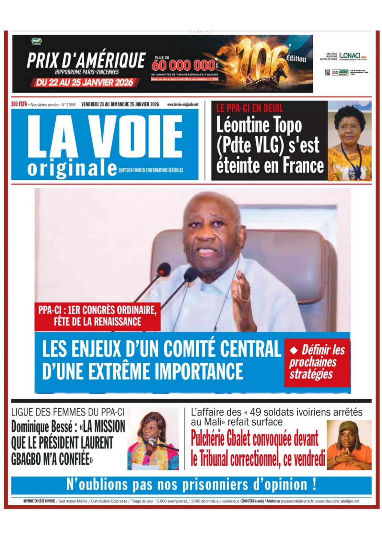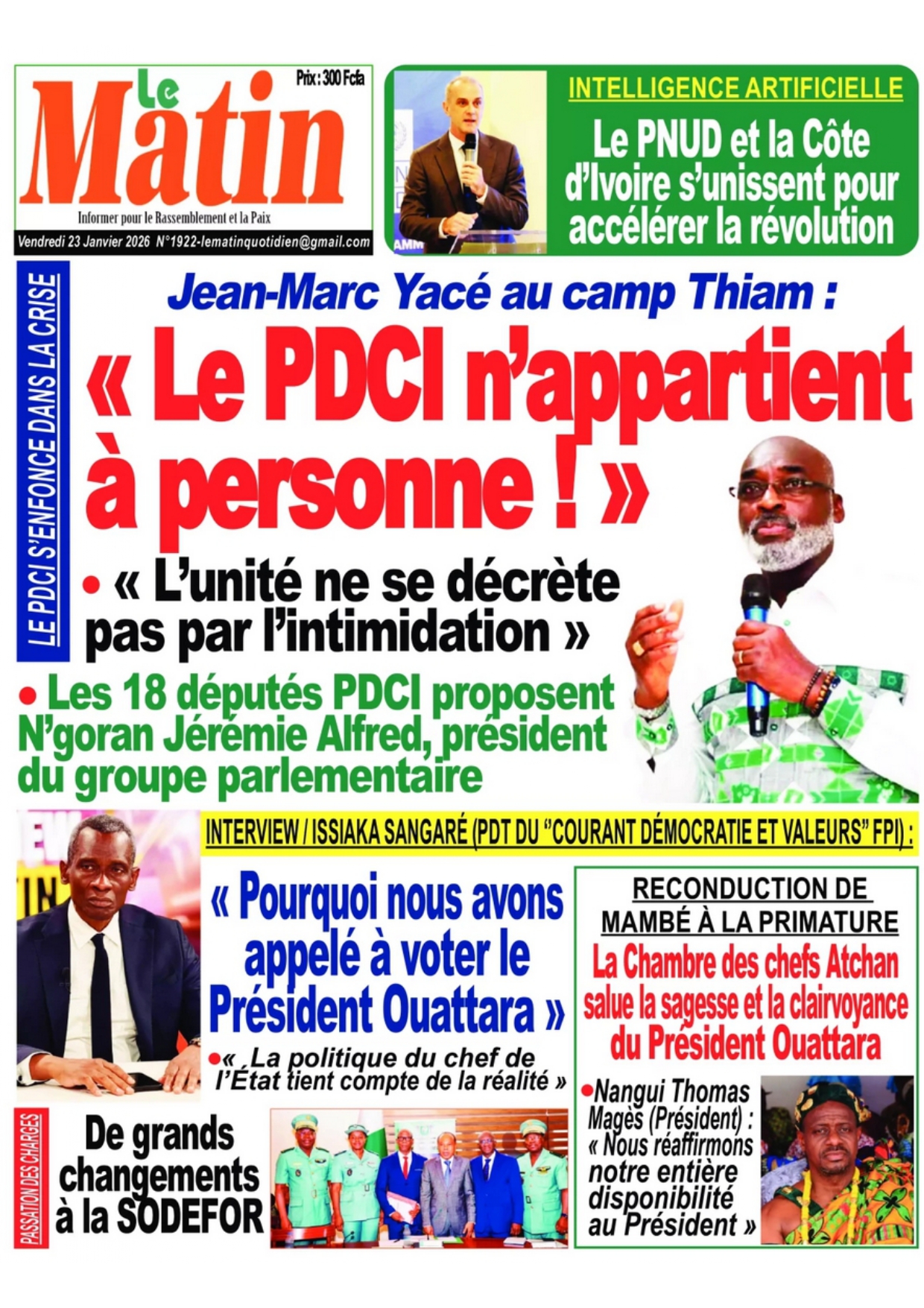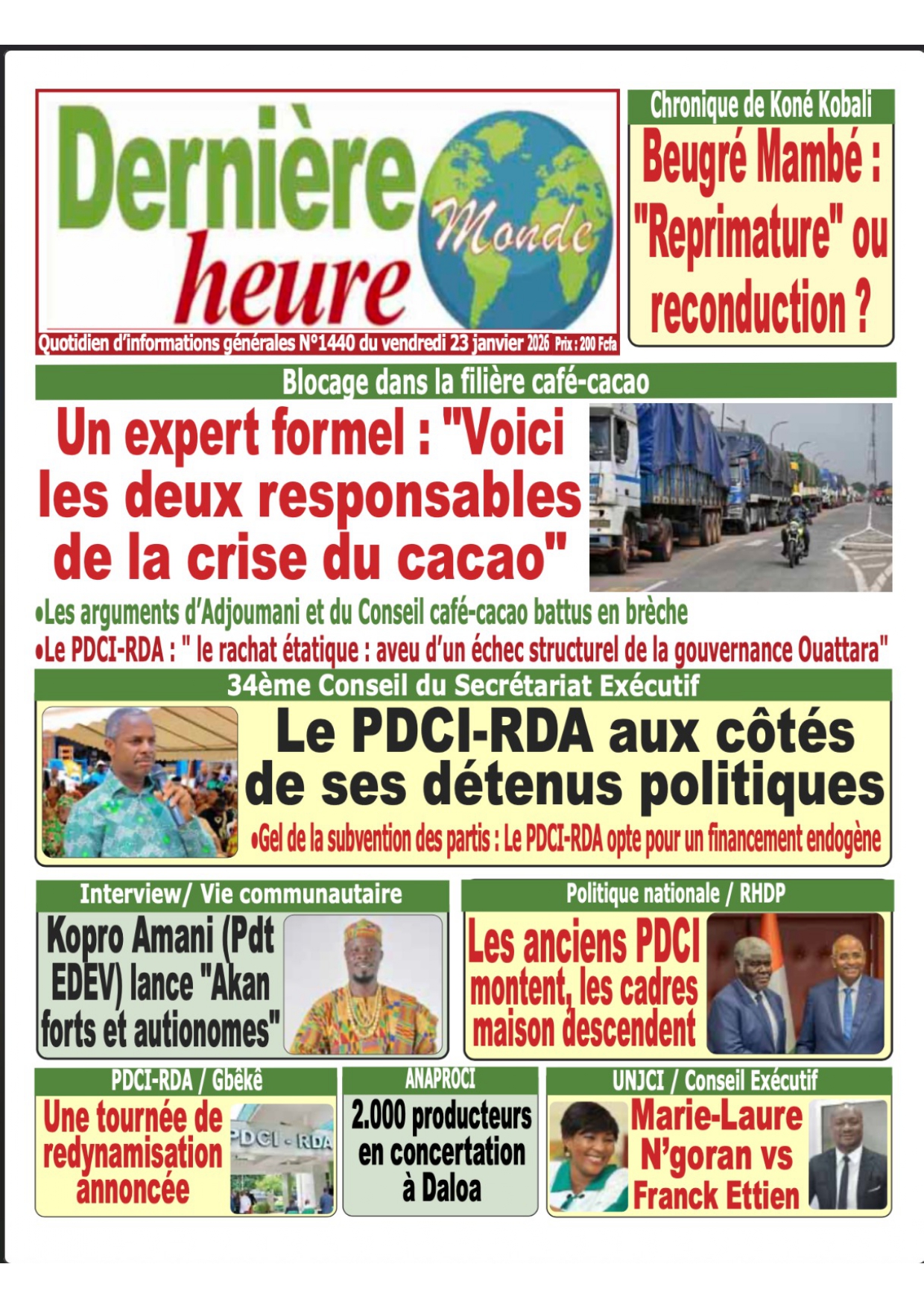 Côte d'Ivoire : les journaux du vendredi 23 janvier 2026 Lire les journaux du Côte d'Ivoire