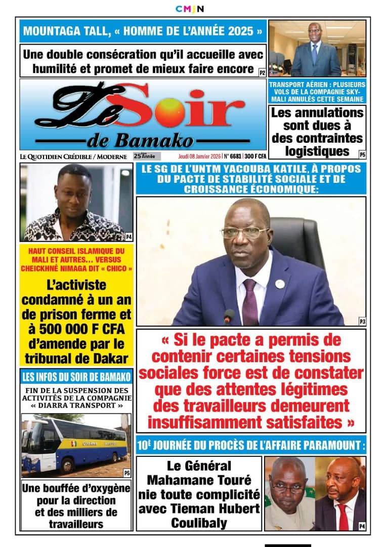 Mali : les journaux du jeudi 08 janvier 2026 Lire les journaux du Mali