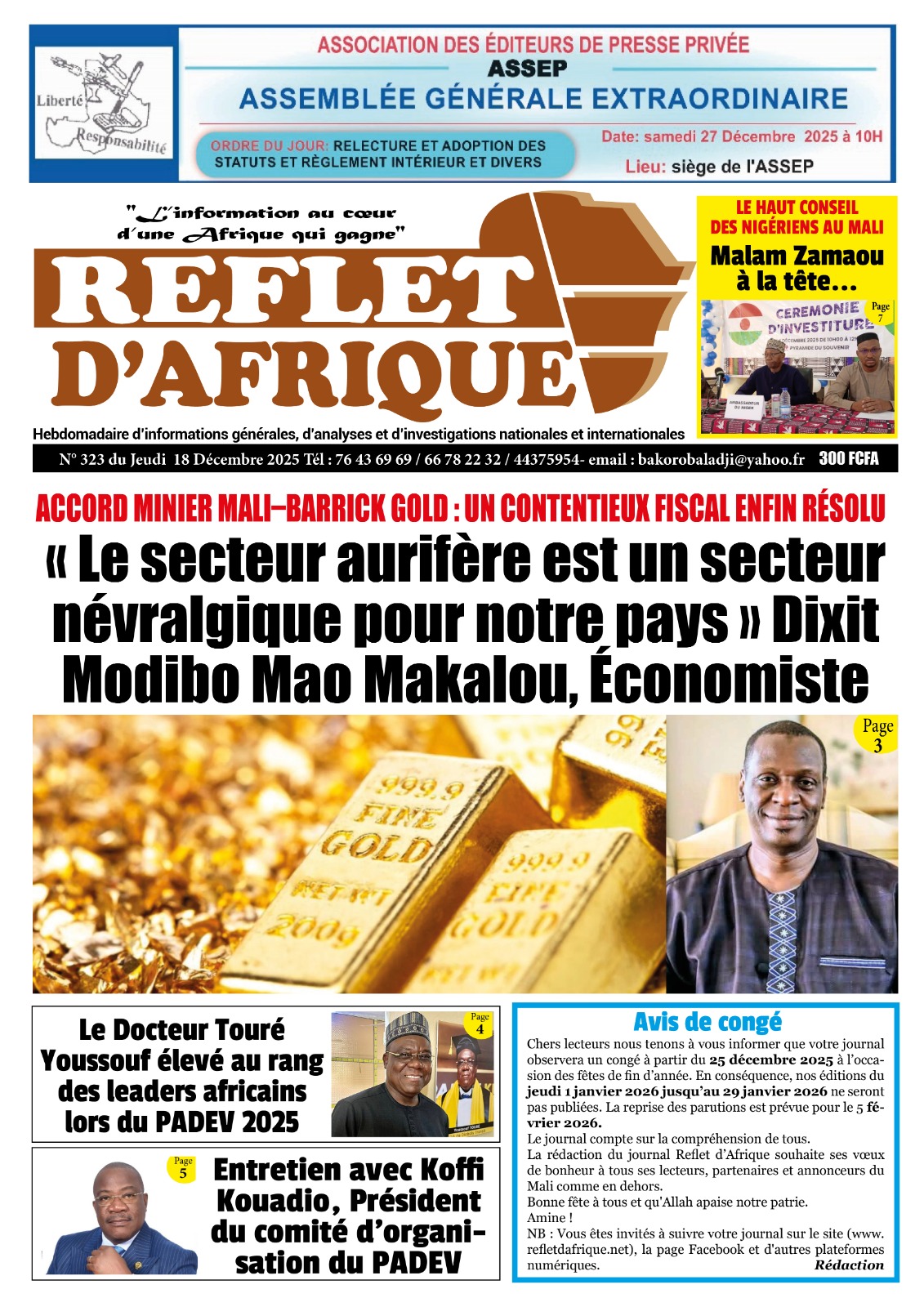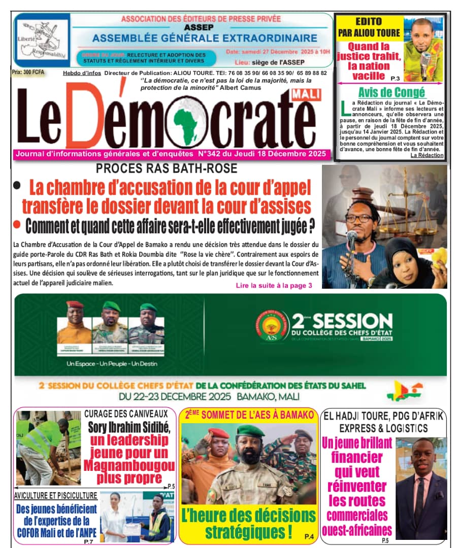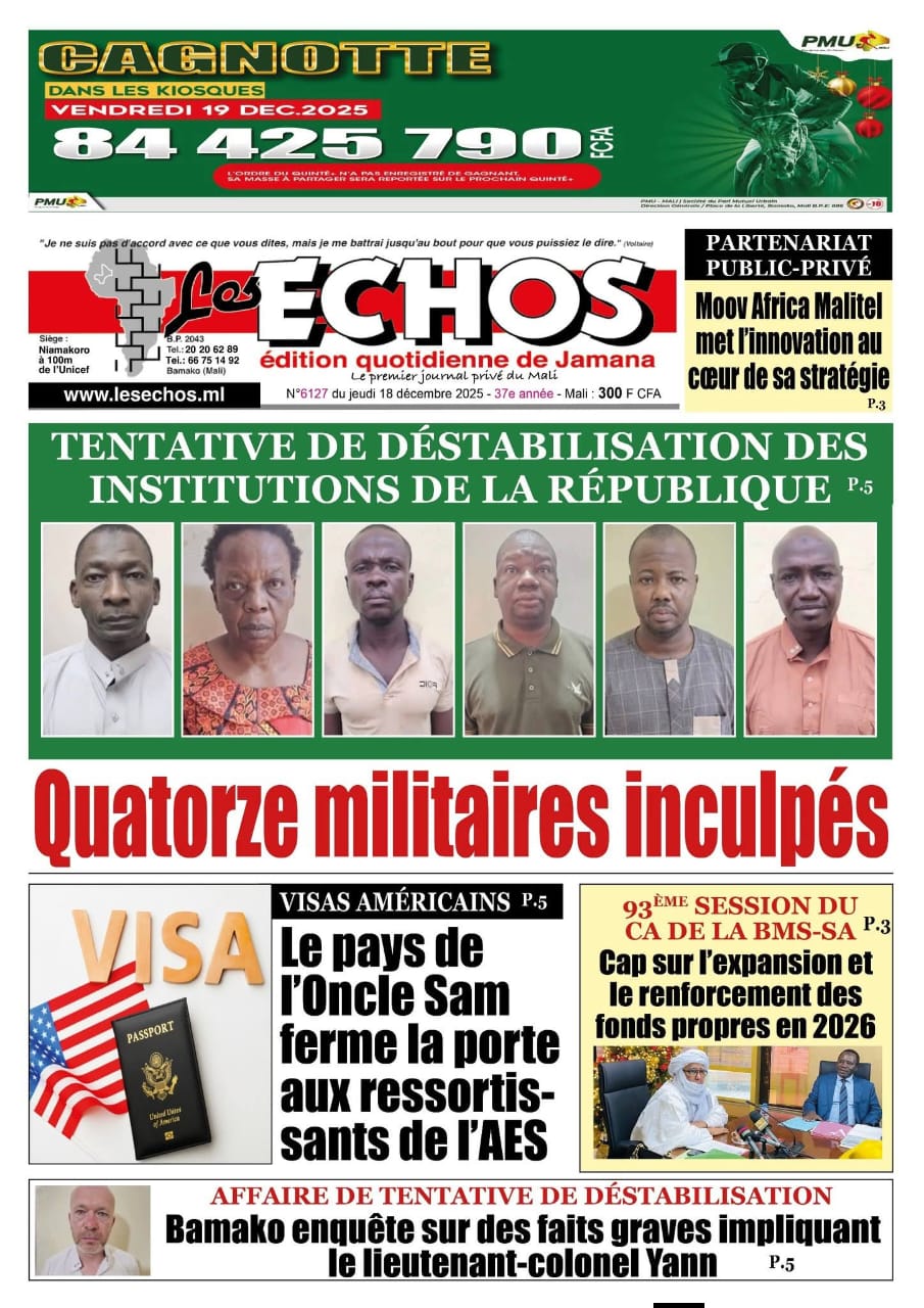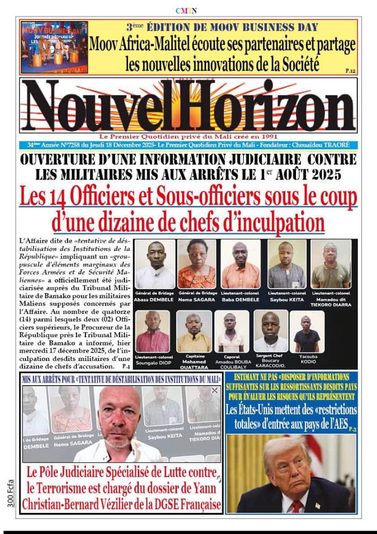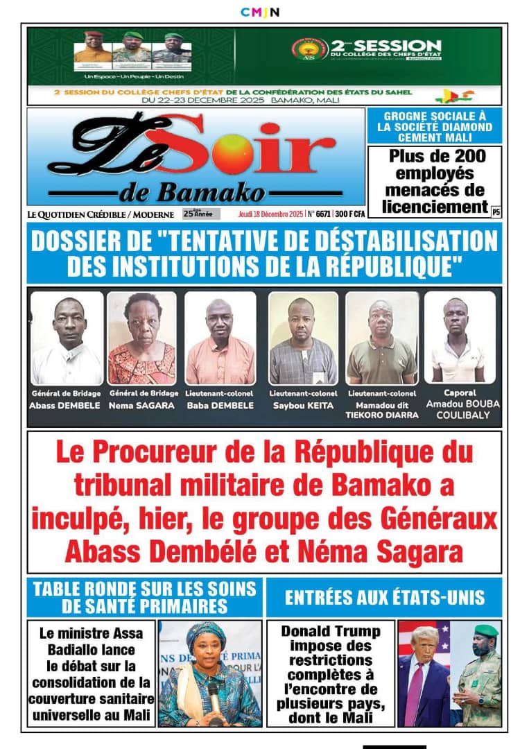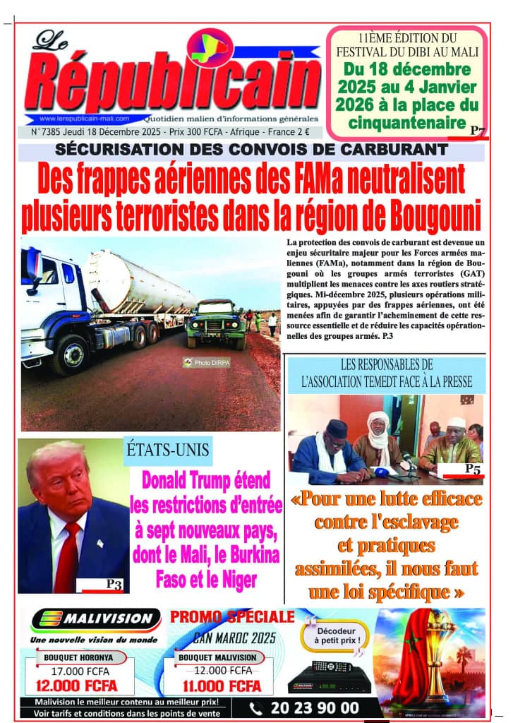 Mali : Les journaux du Mali du jeudi 18 décembre 2025