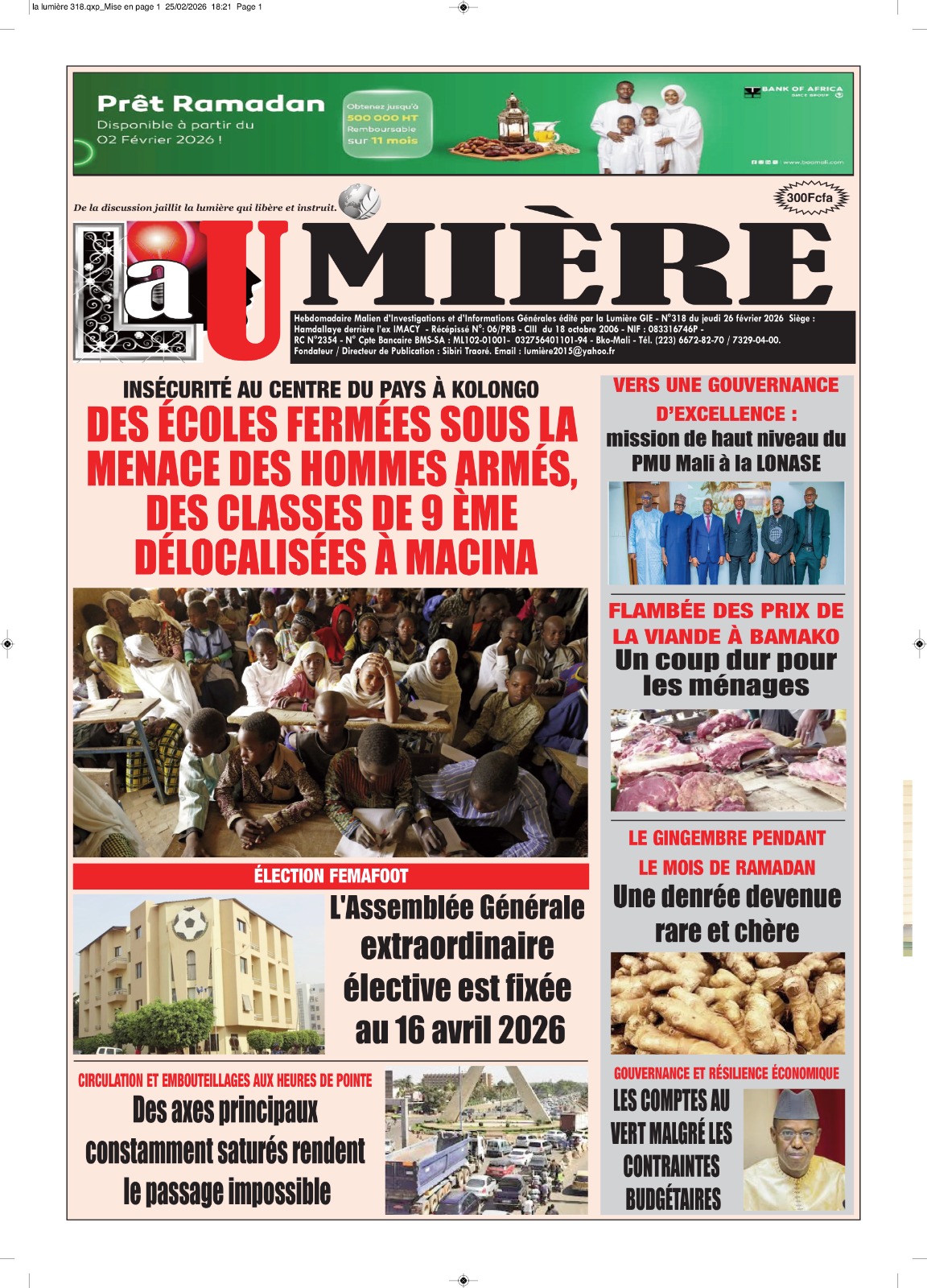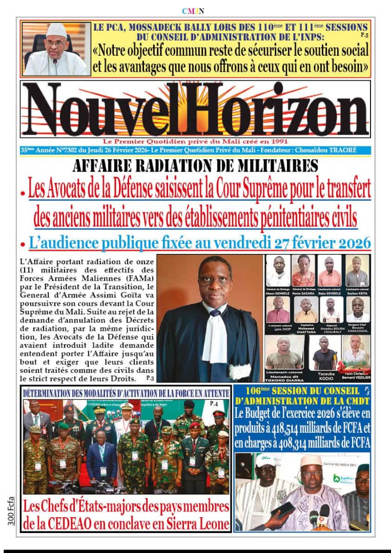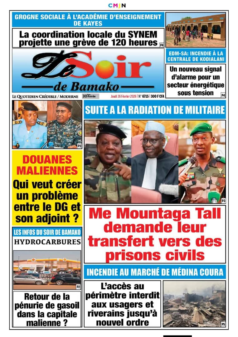 Mali : les journaux du jeudi 26 février 2026 Lire les UNES du Mali