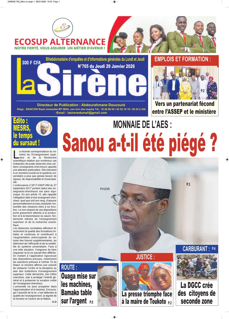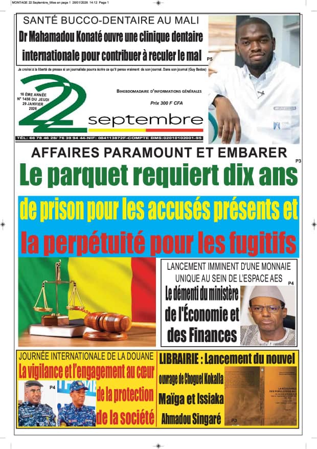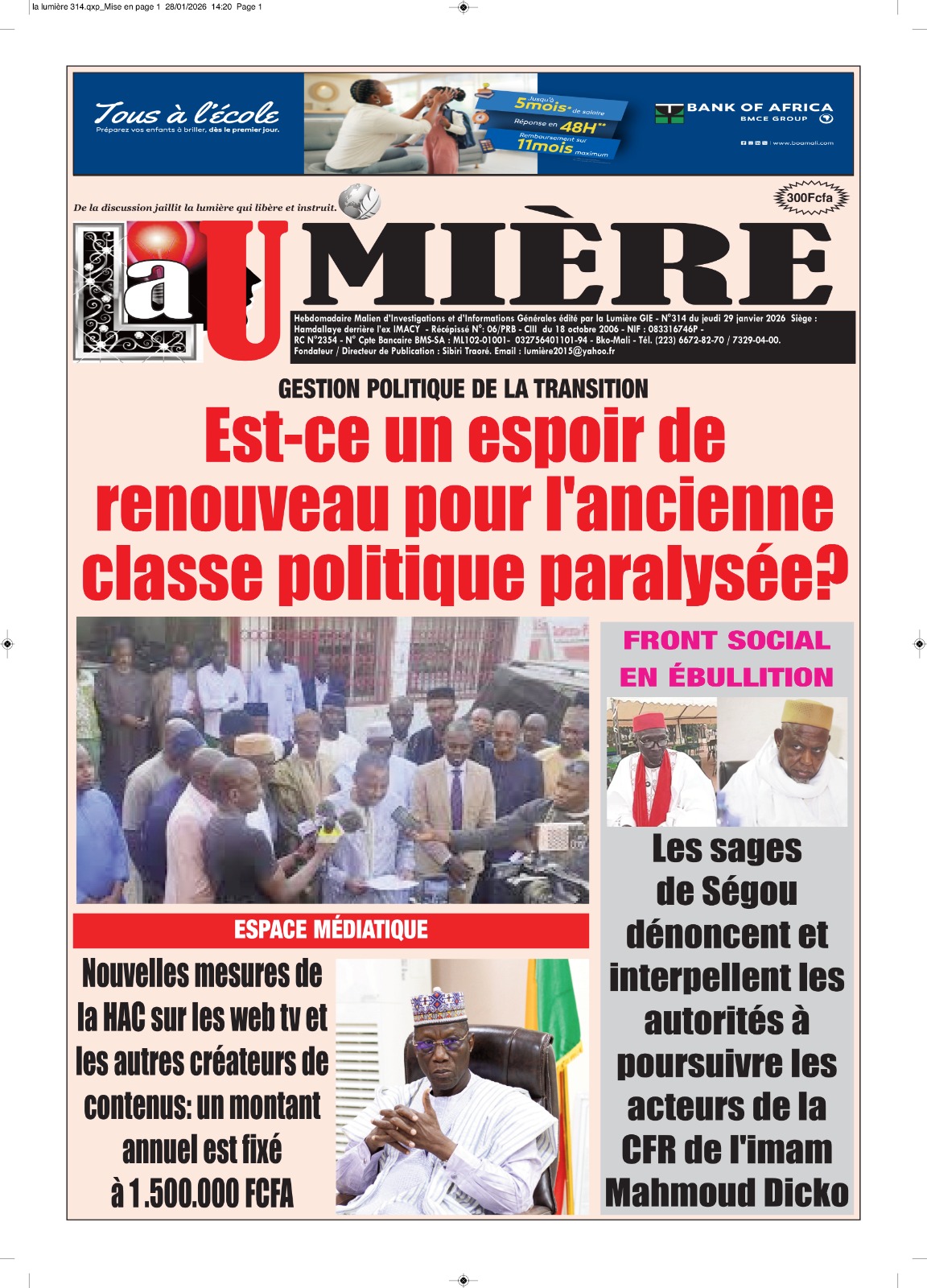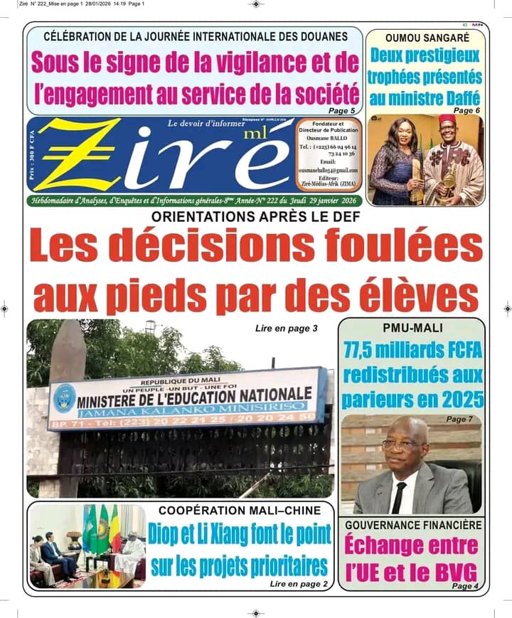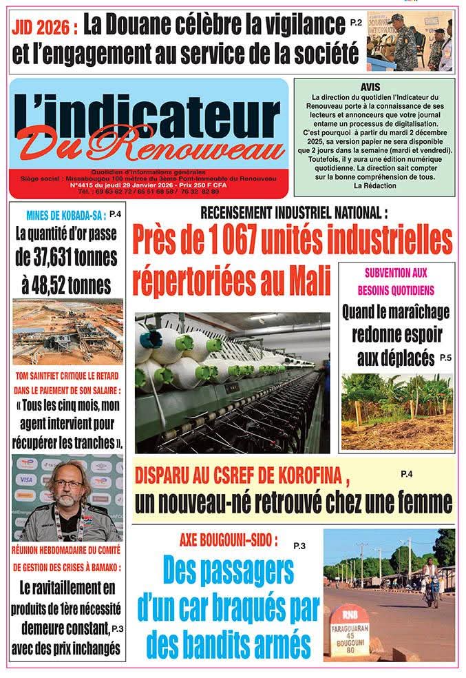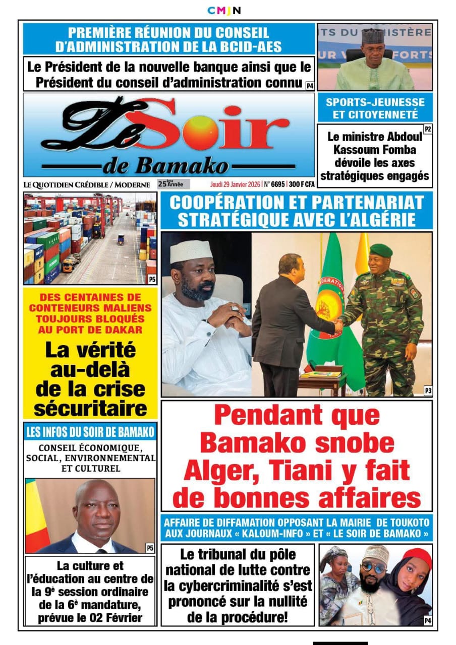 Mali : les journaux du jeudi 29 janvier 2026 Lire les journaux du Mali