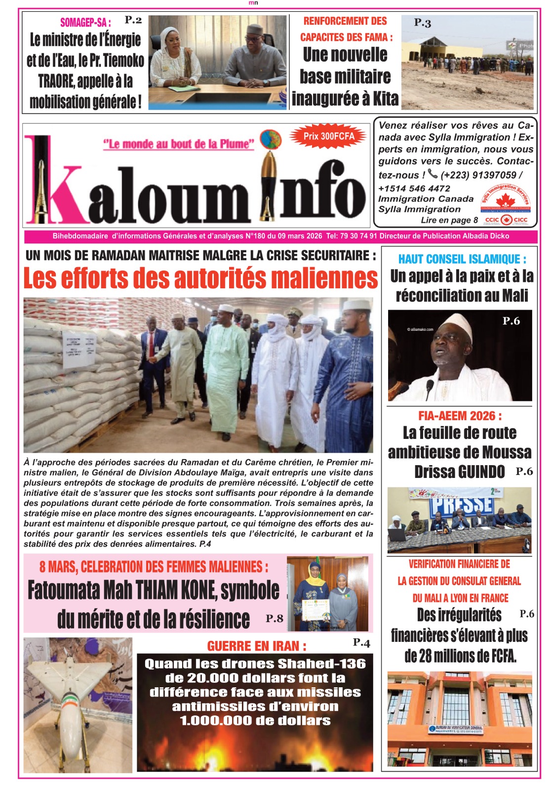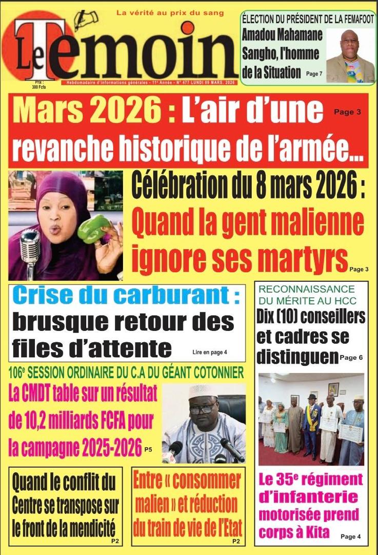 Mali : les journaux du lundi 09 mars 2026 Lire les journaux du Mali