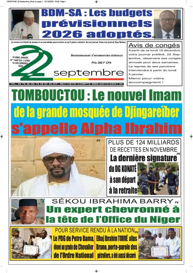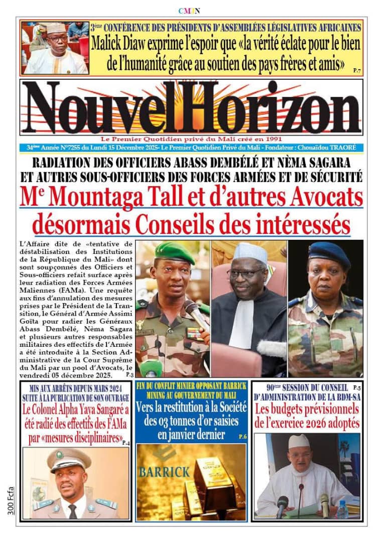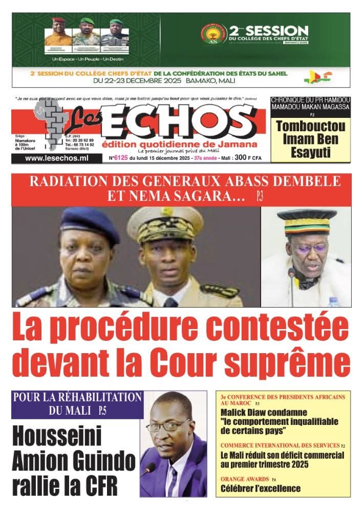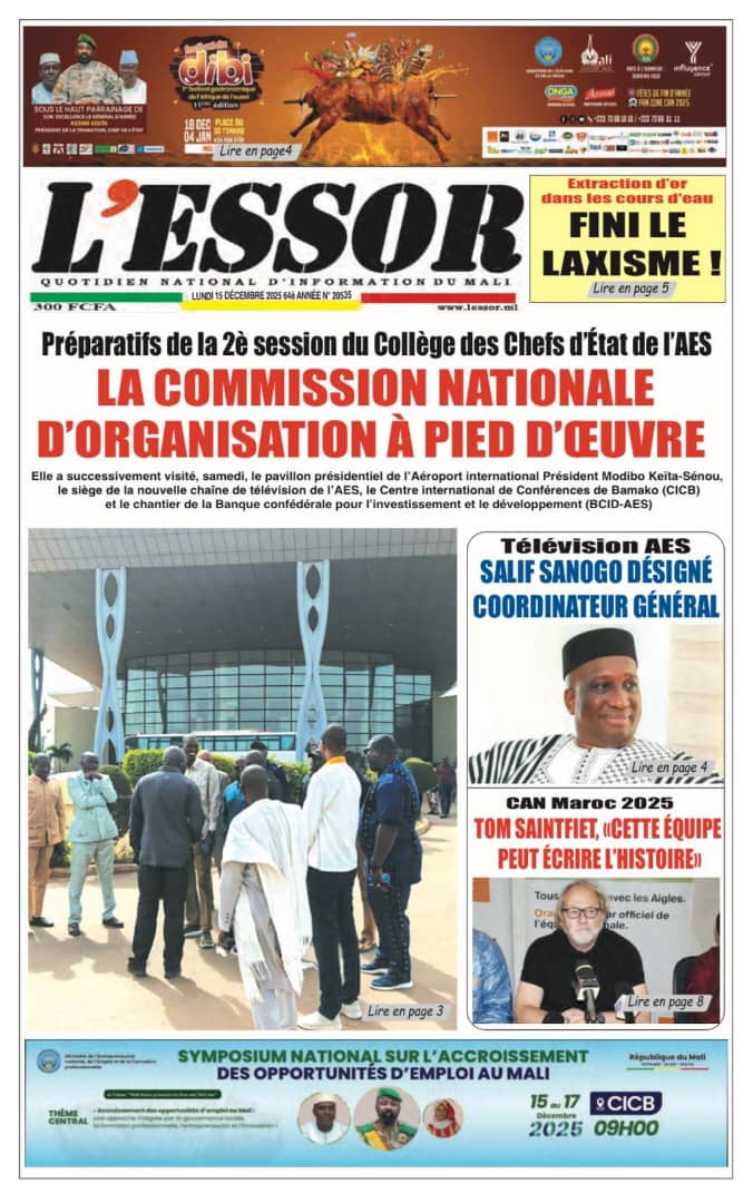 Mali : les journaux du lundi 15 décembre 2025 Lire les journaux du Mali