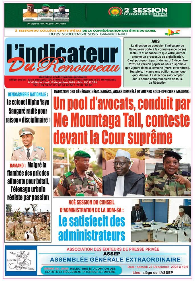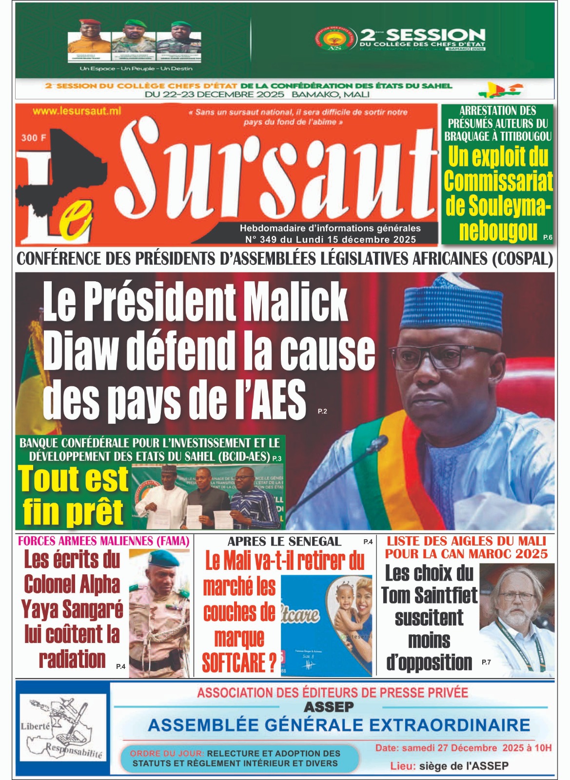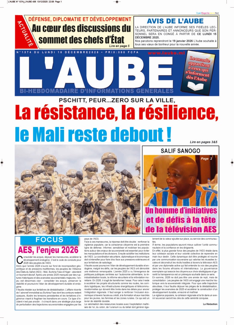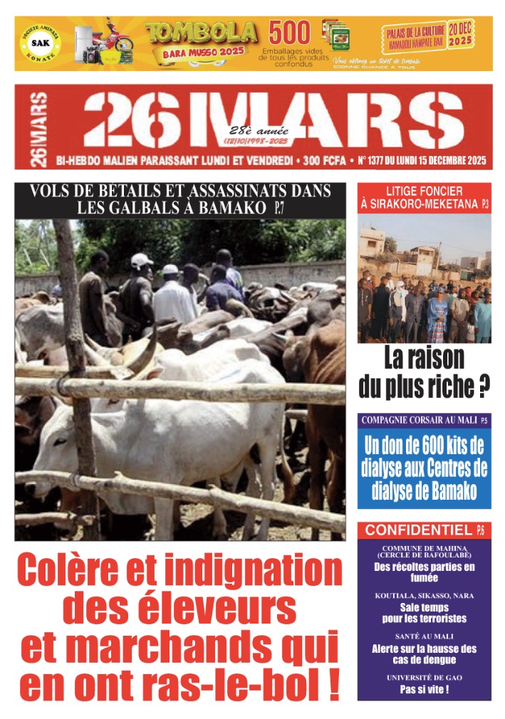 Mali : les journaux du lundi 15 décembre 2025 Lire les journaux du Mali