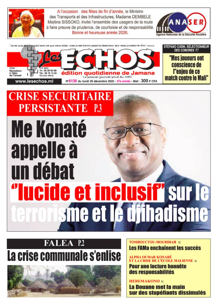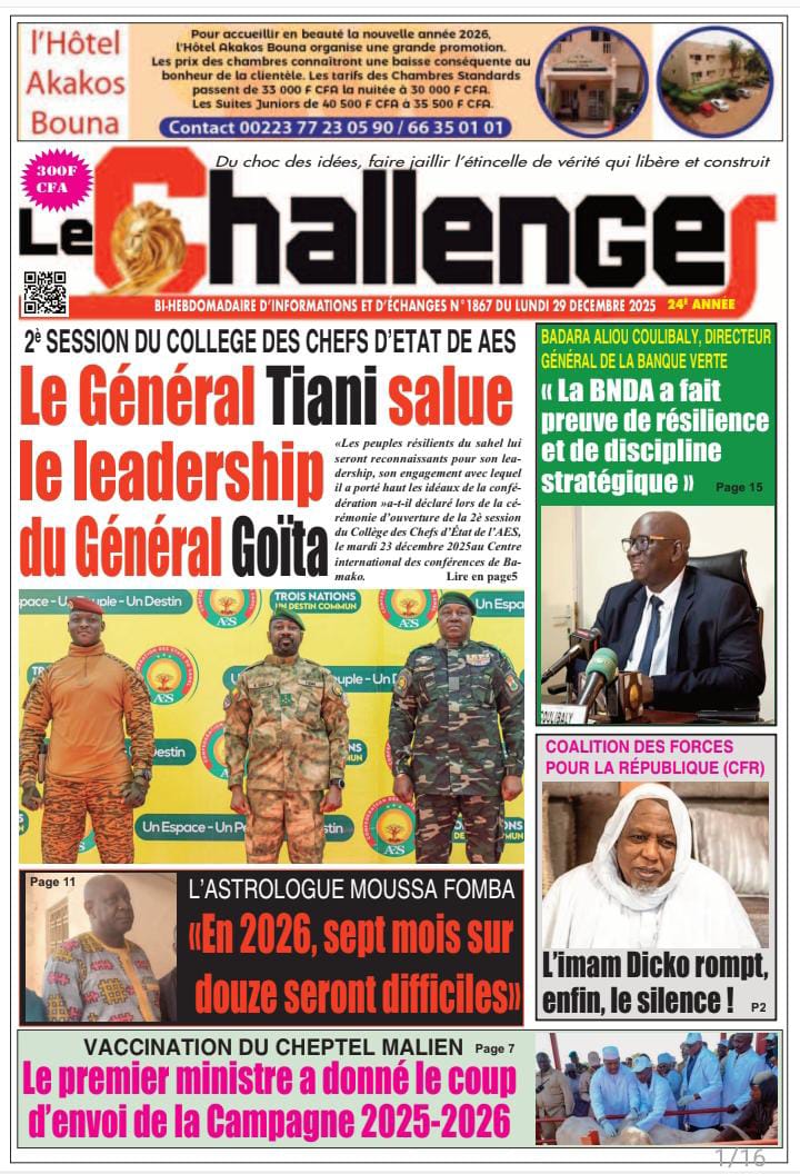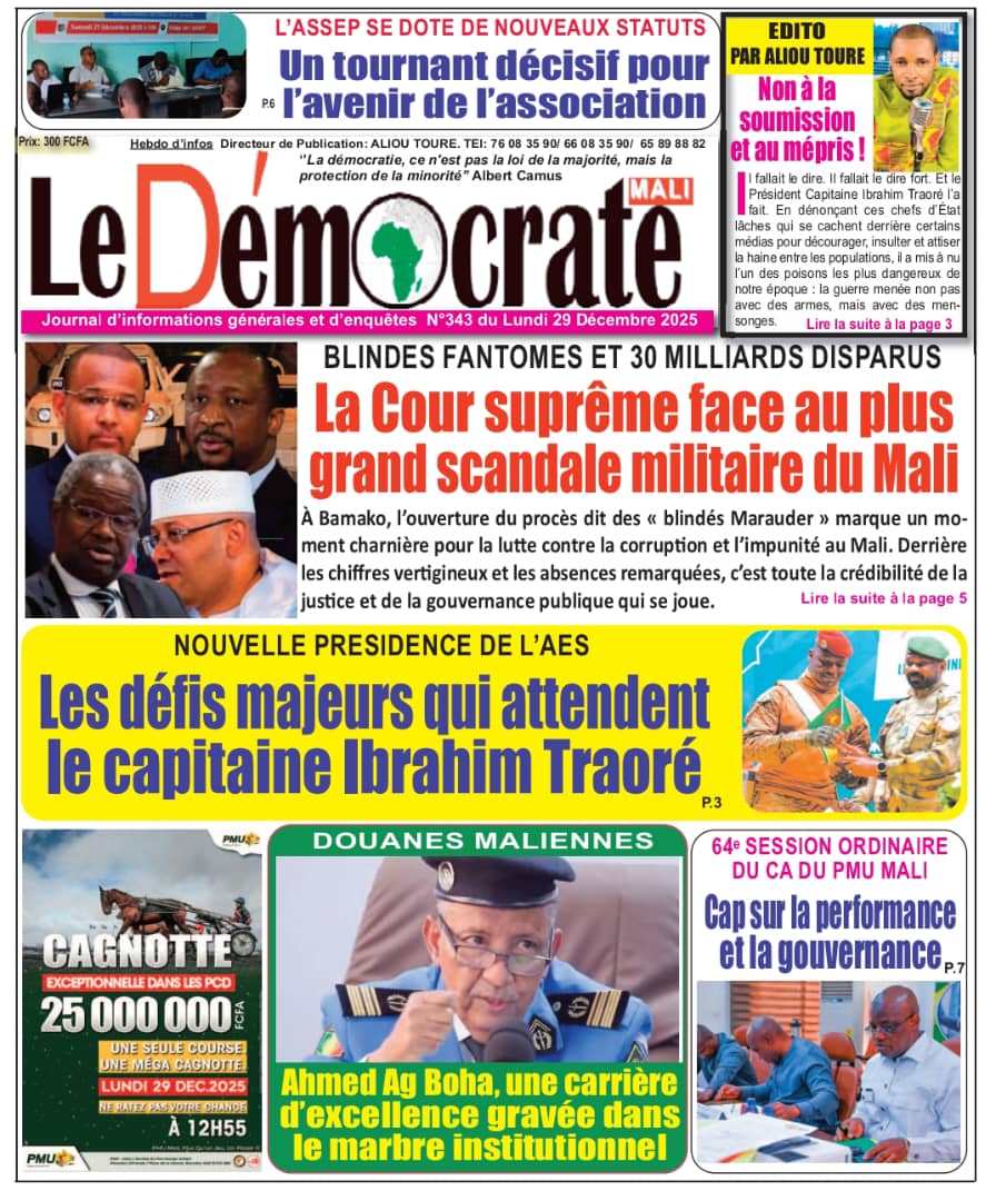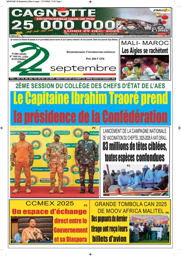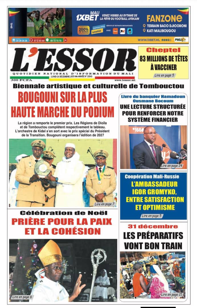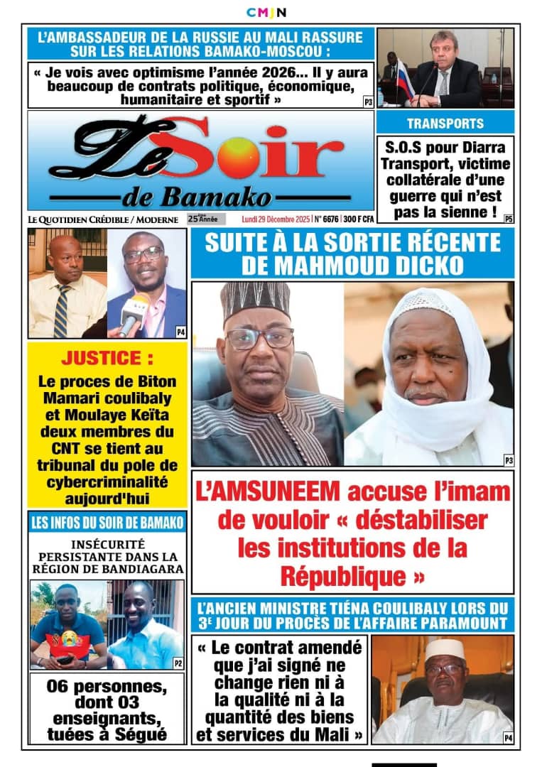 Les journaux du Mali du lundi 29 décembre 2025 Lire les journaux du Mali