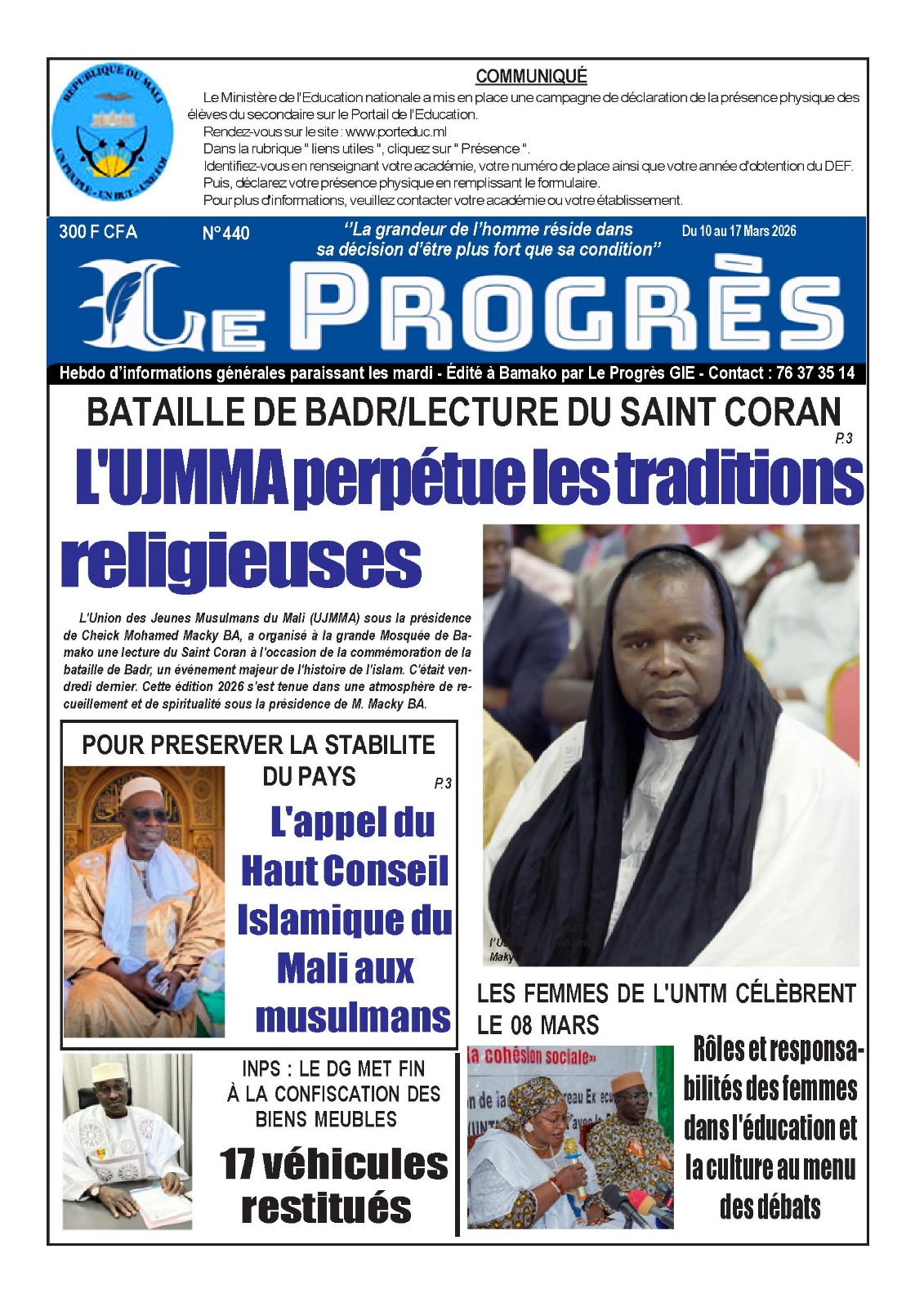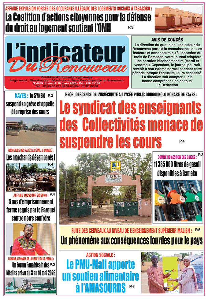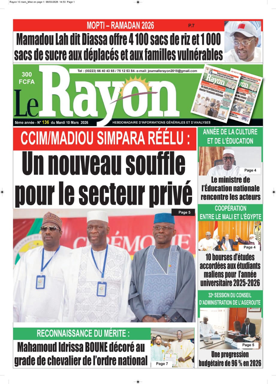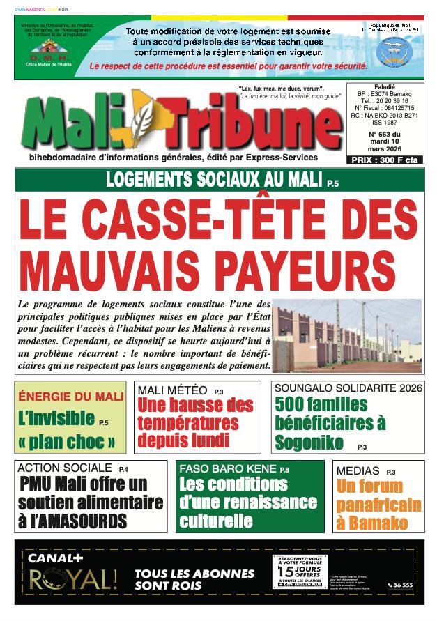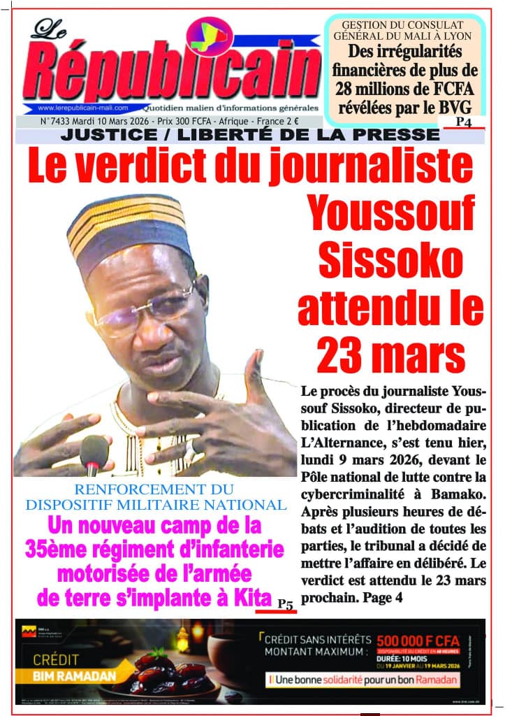 Mali : les journaux du mardi 10 mars 2026 Lire les UNES du Mali