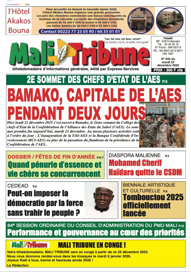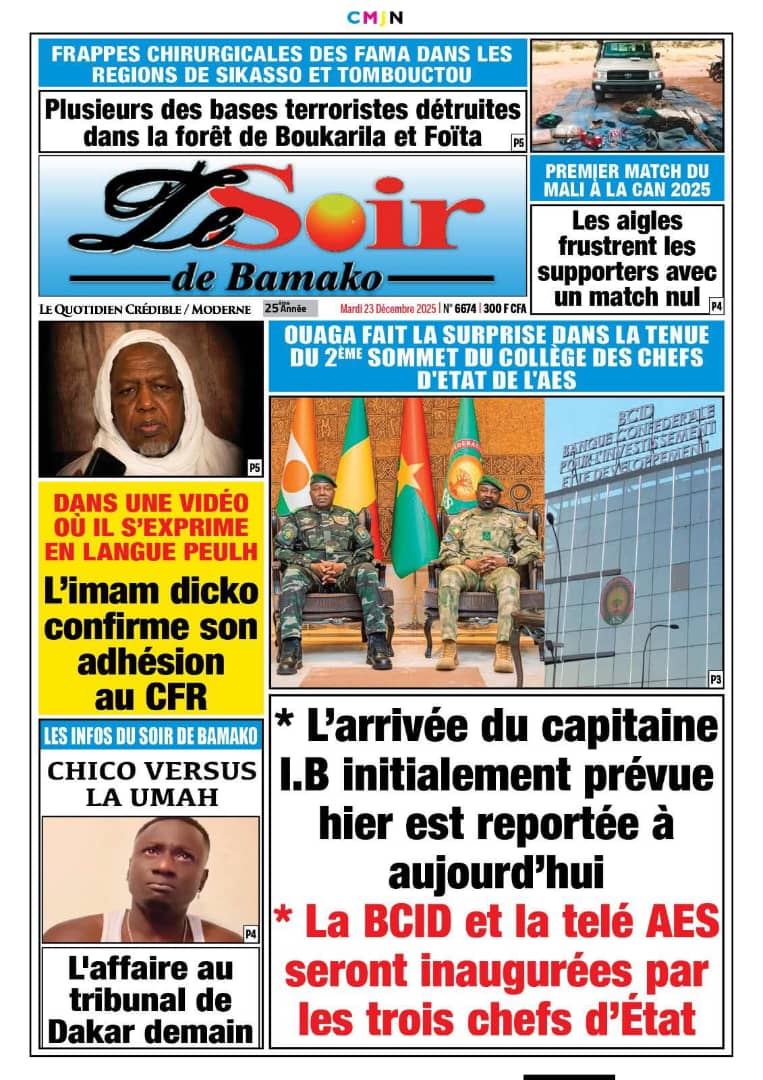 Mali : les journaux du mardi 23 décembre 2025 Lire les journaux du Mali