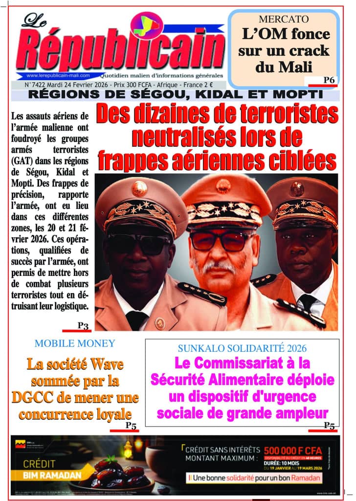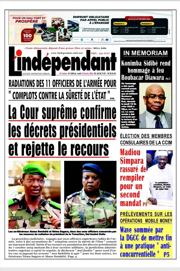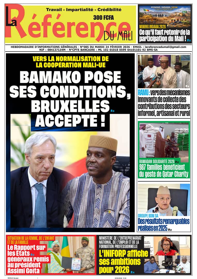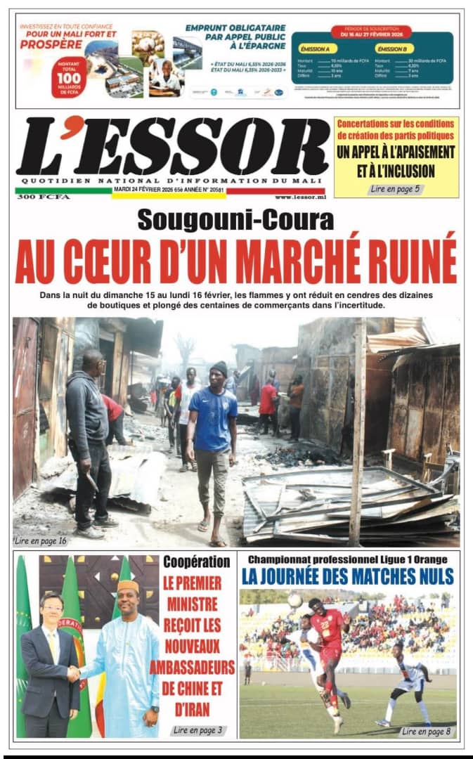 Mali : les journaux du mardi 24 février 2026 Lire les UNES du Mali