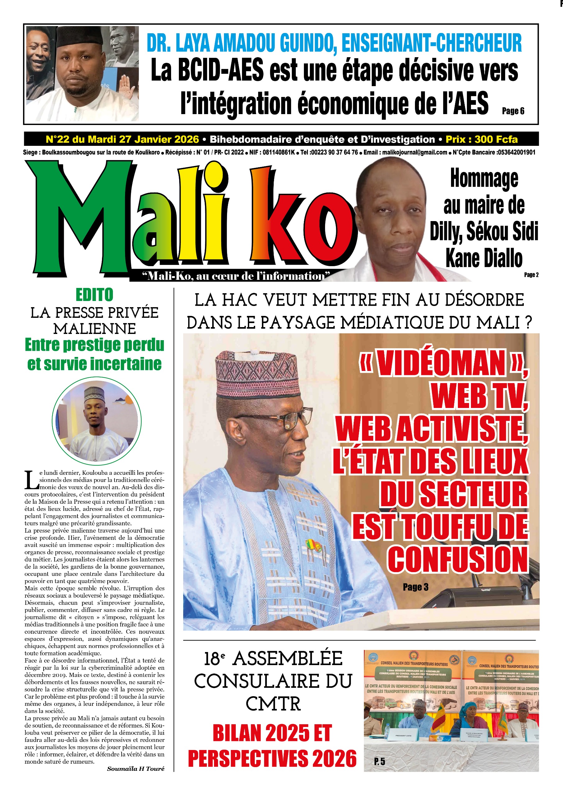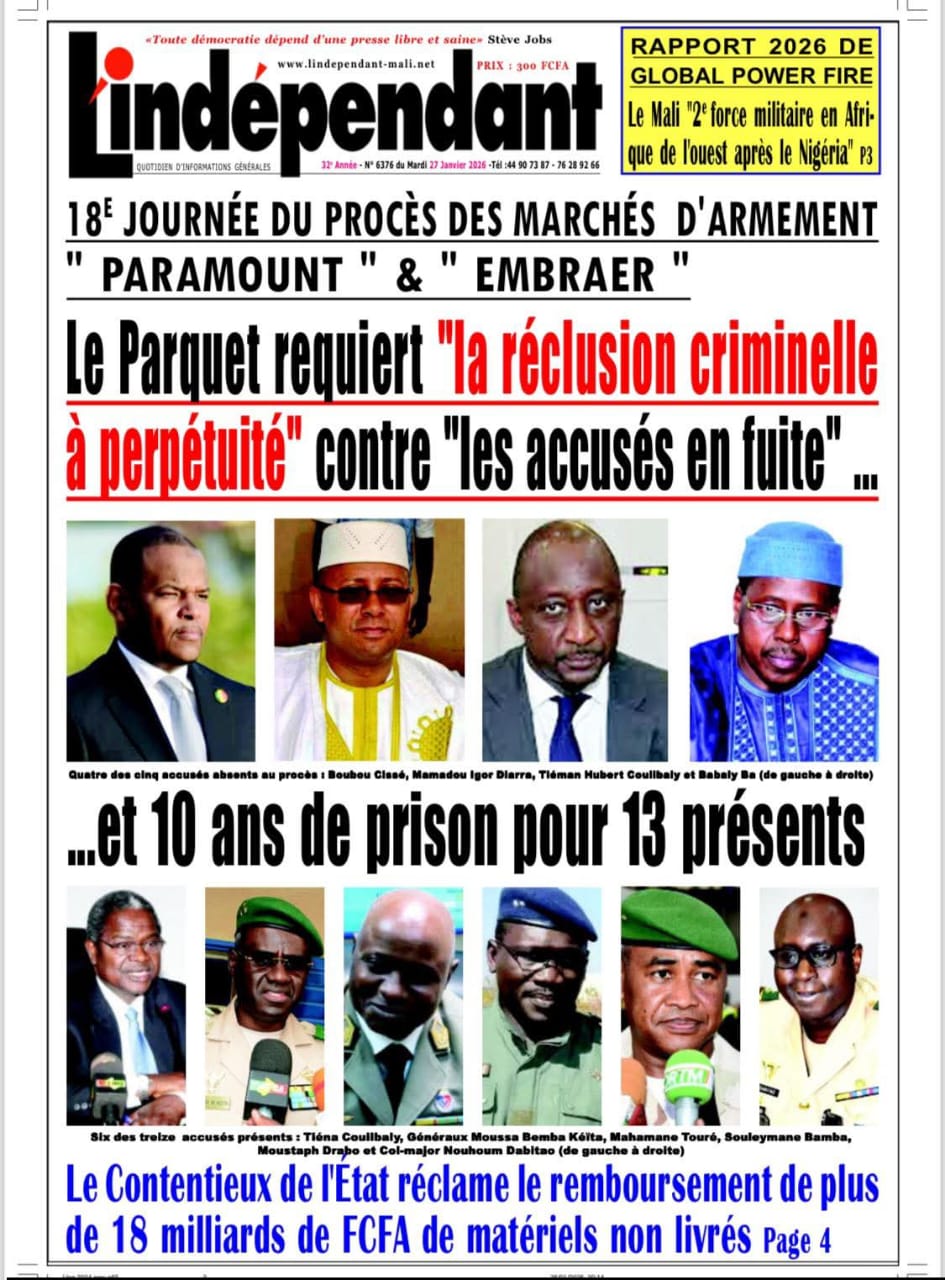 Mali : les journaux du mardi 27 janvier 2026 Lire les journaux du Mali