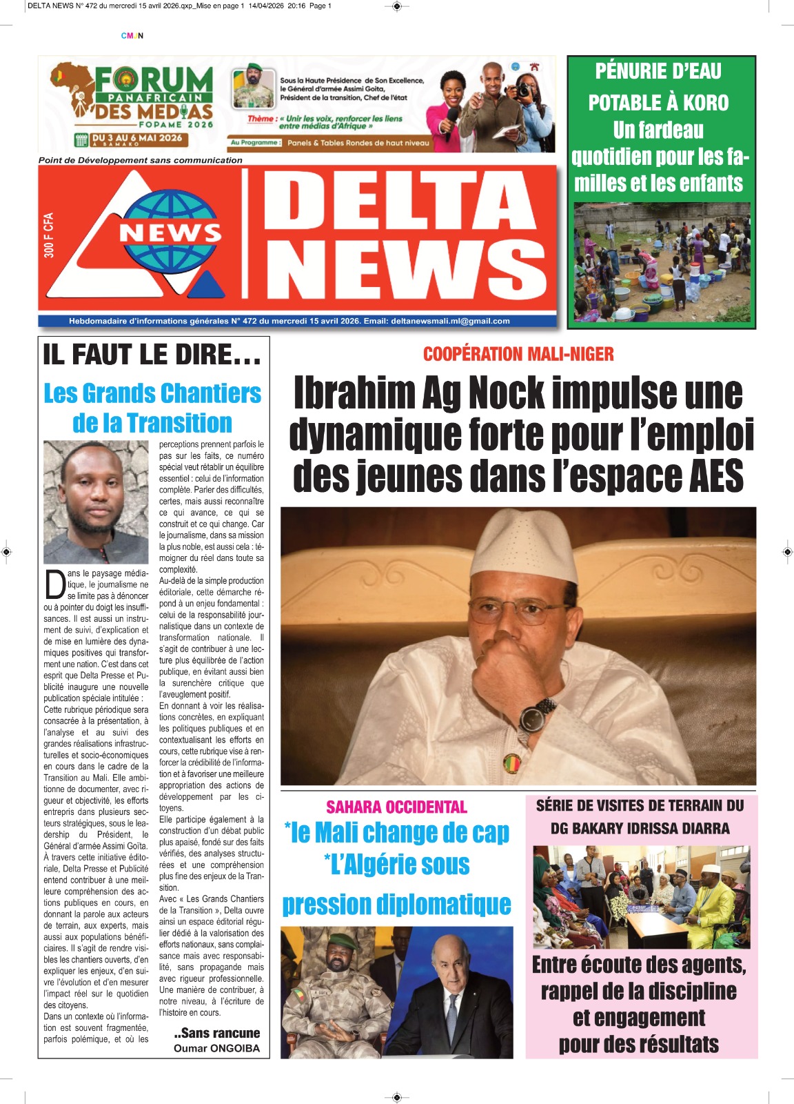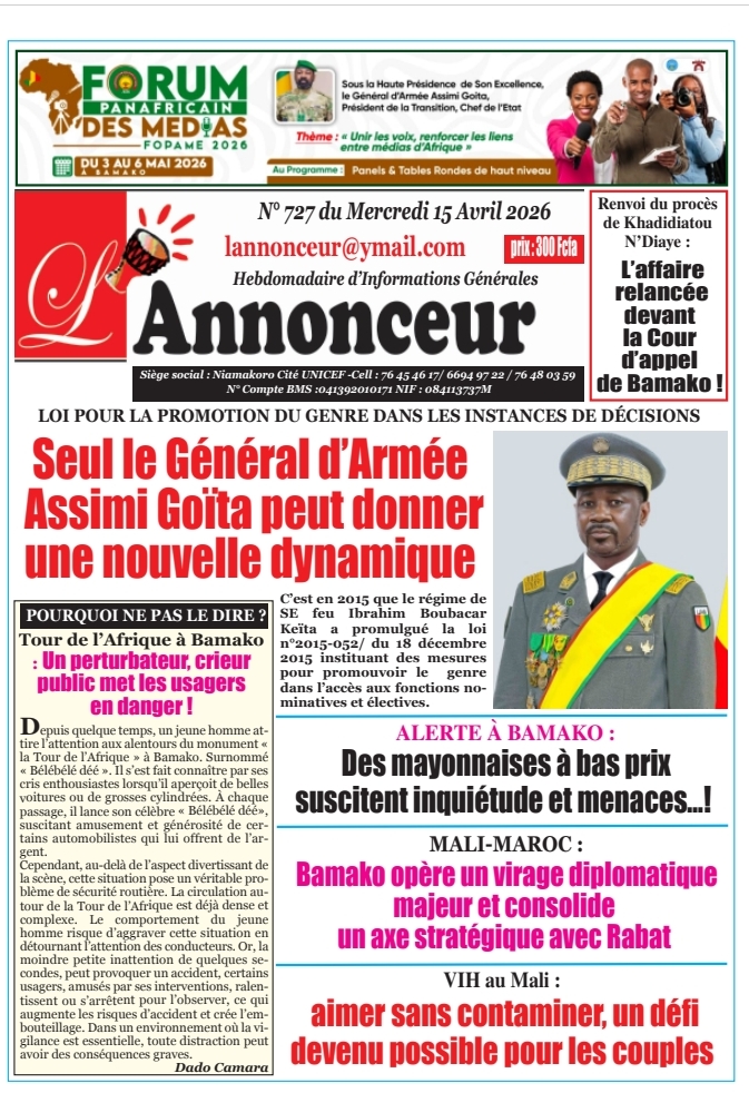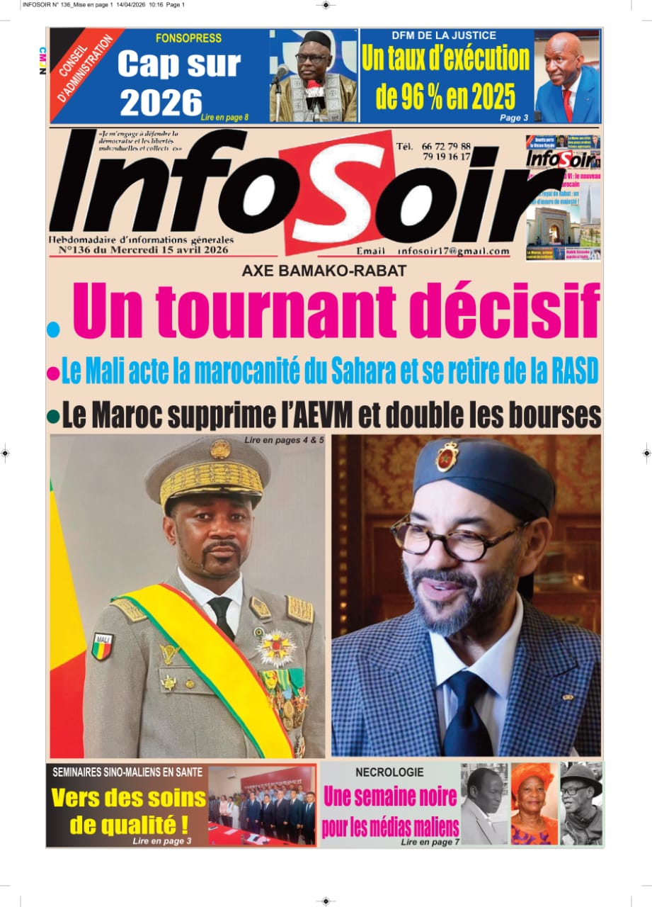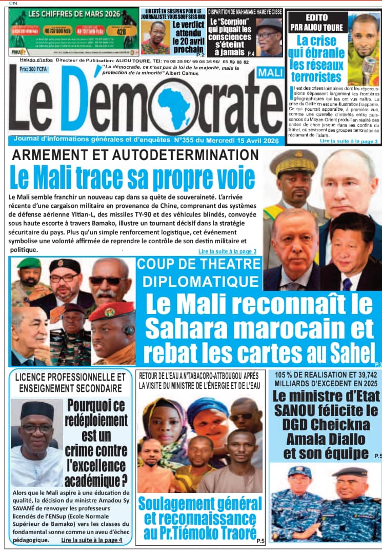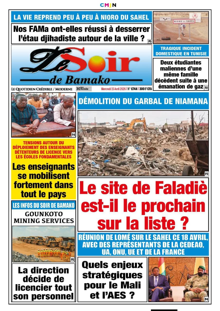 Mali : les journaux du mercredi 15 avril 2026 Lire les UNES maliennes