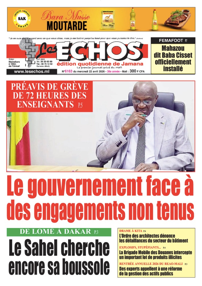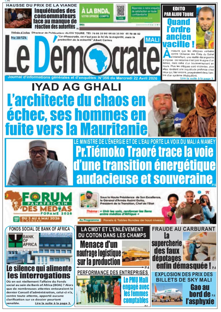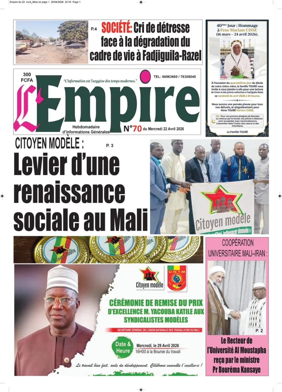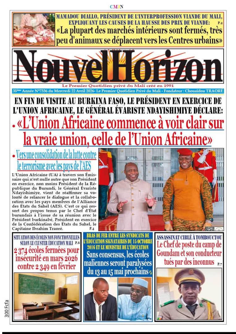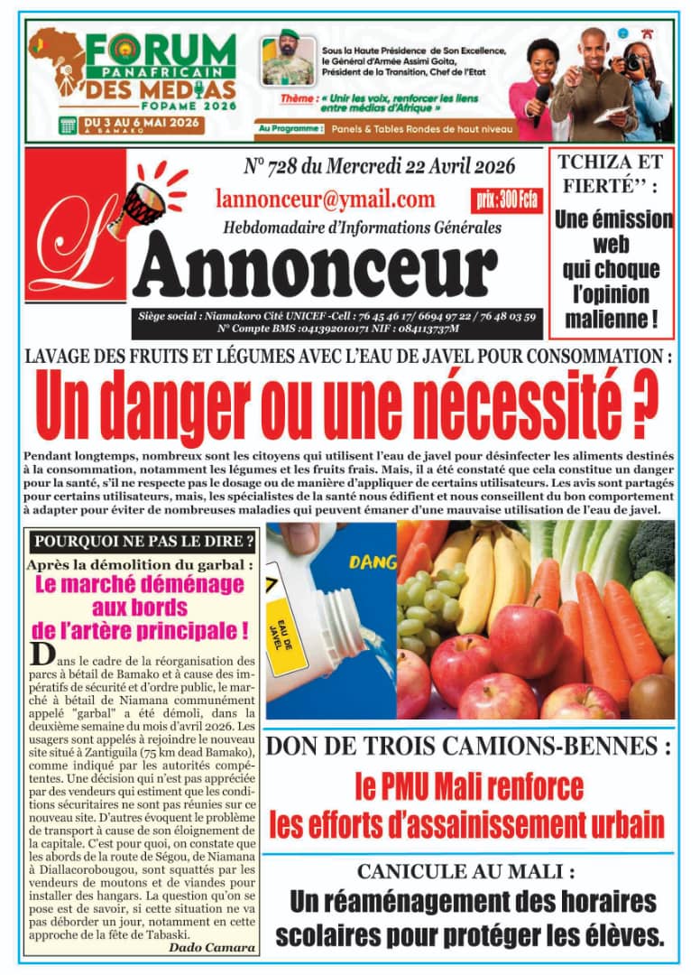 Mali : les journaux du mercredi 22 avril 2026 Lire les UNES maliennes