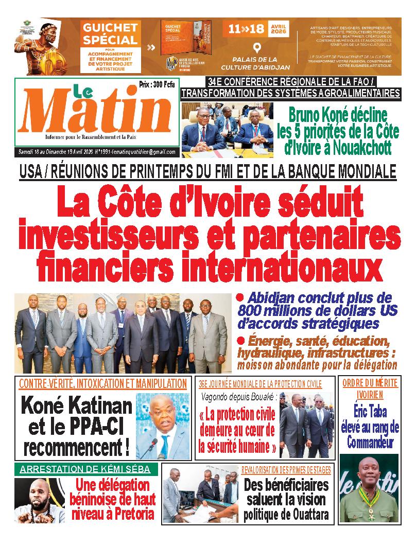 Les journaux ivoiriens du samedi 18 avril 2026 Lire les UNES ivoiriennes