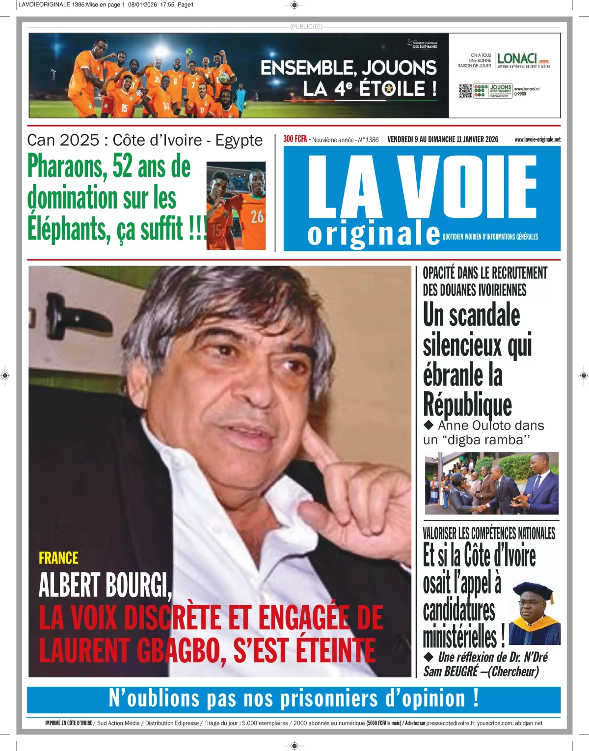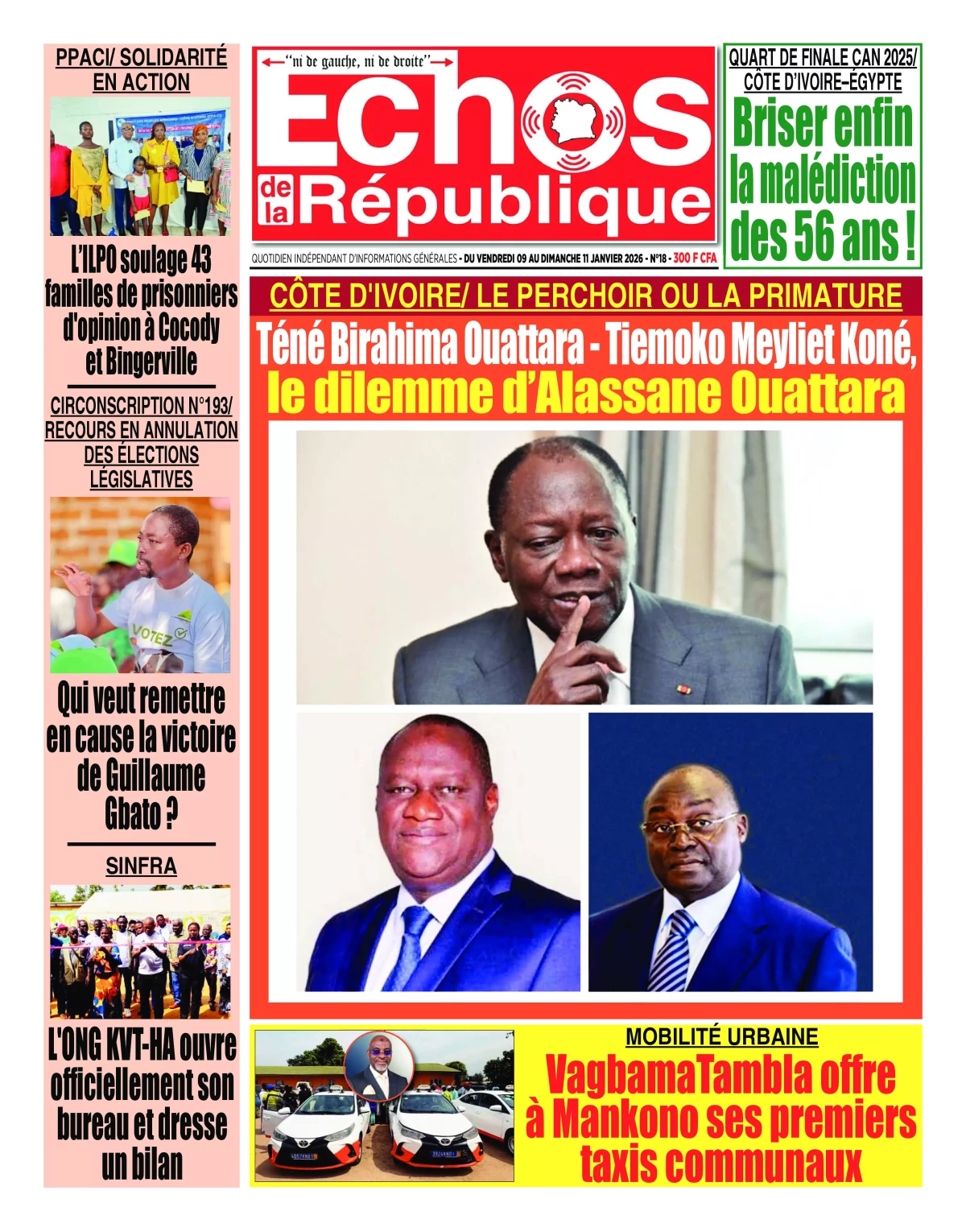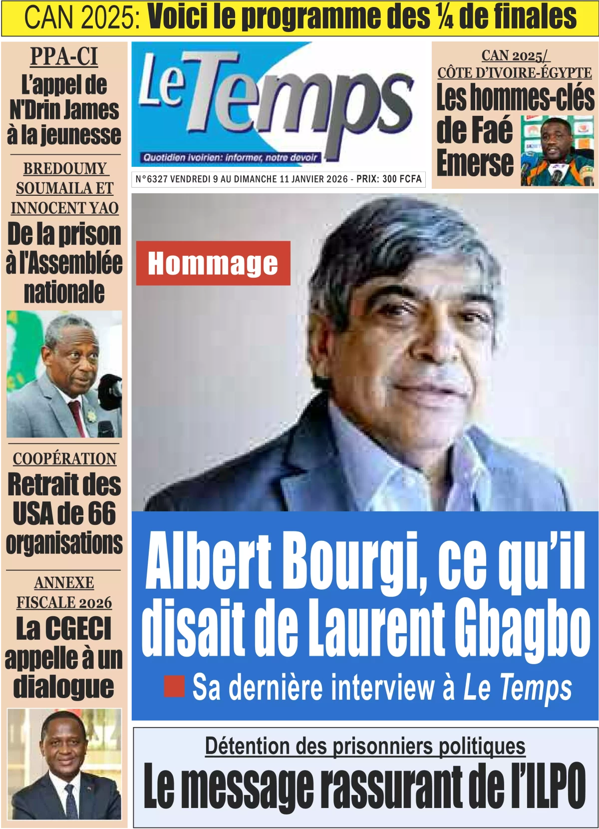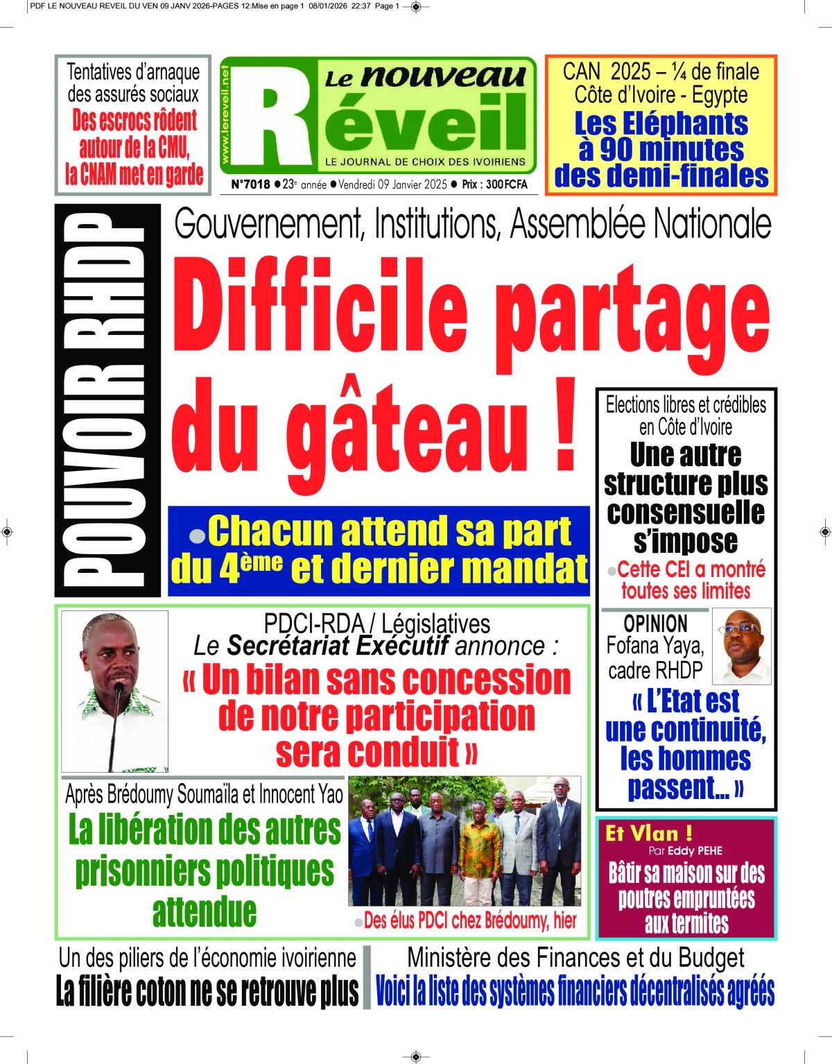 Les journaux ivoiriens du vendredi 09 janvier 2026 restent marqués par les perspectives liés au nouveau gouvernement à mettre en place par le Président Alassane Ouattara. La CAN 2025 est aussi présente, avec le match de 1/4 de finales à disputer par les Eléphants, champions en titre, ce samedi 10 janvier contre les Pharaons d’Egypte.