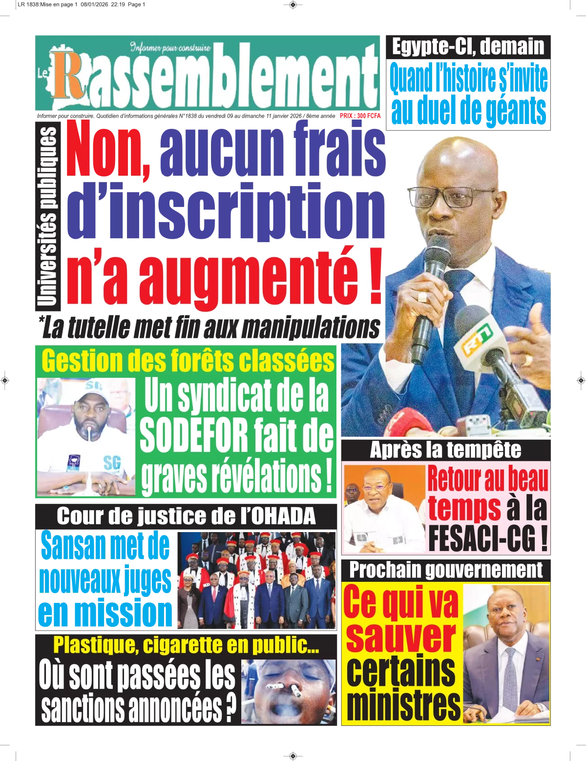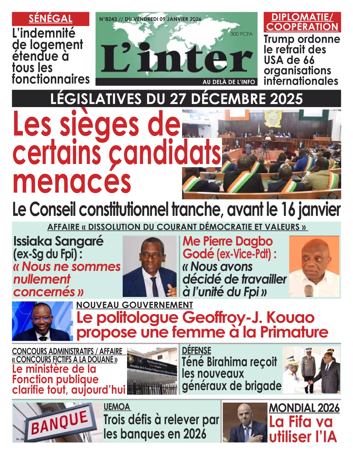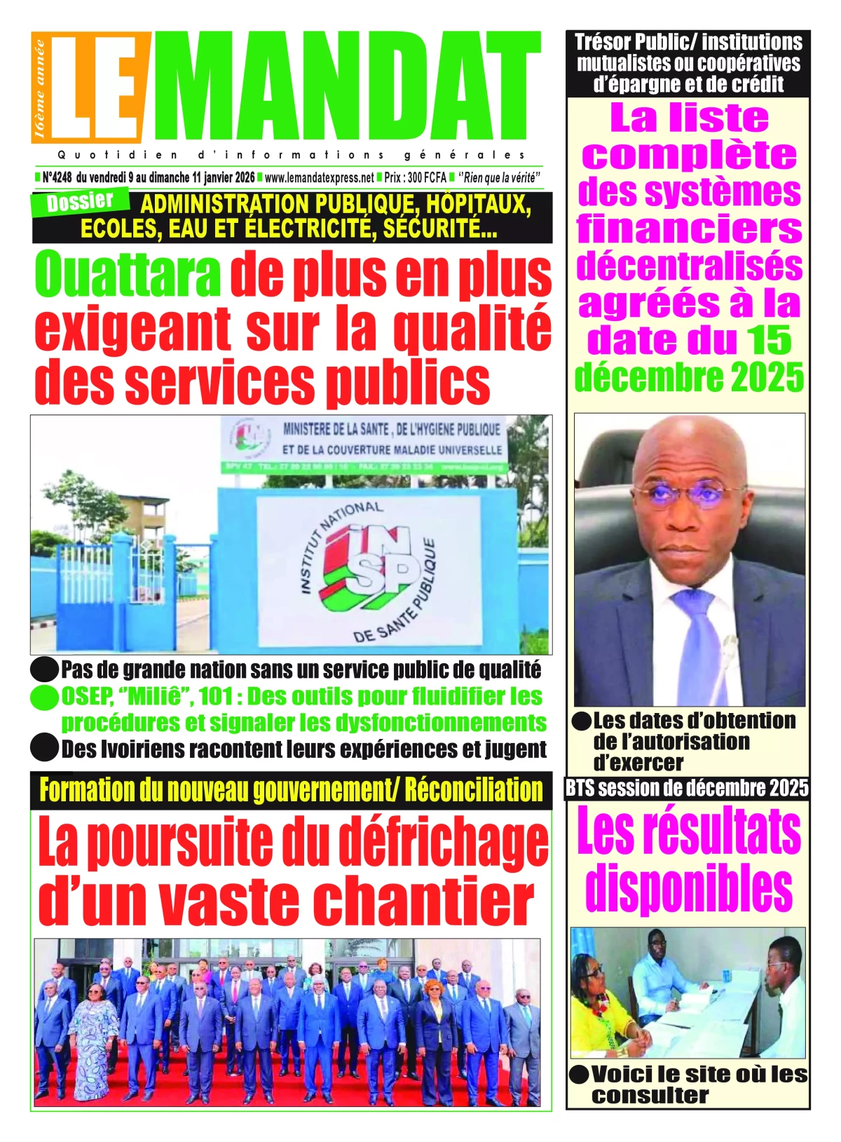 Les journaux ivoiriens du vendredi 09 janvier 2026