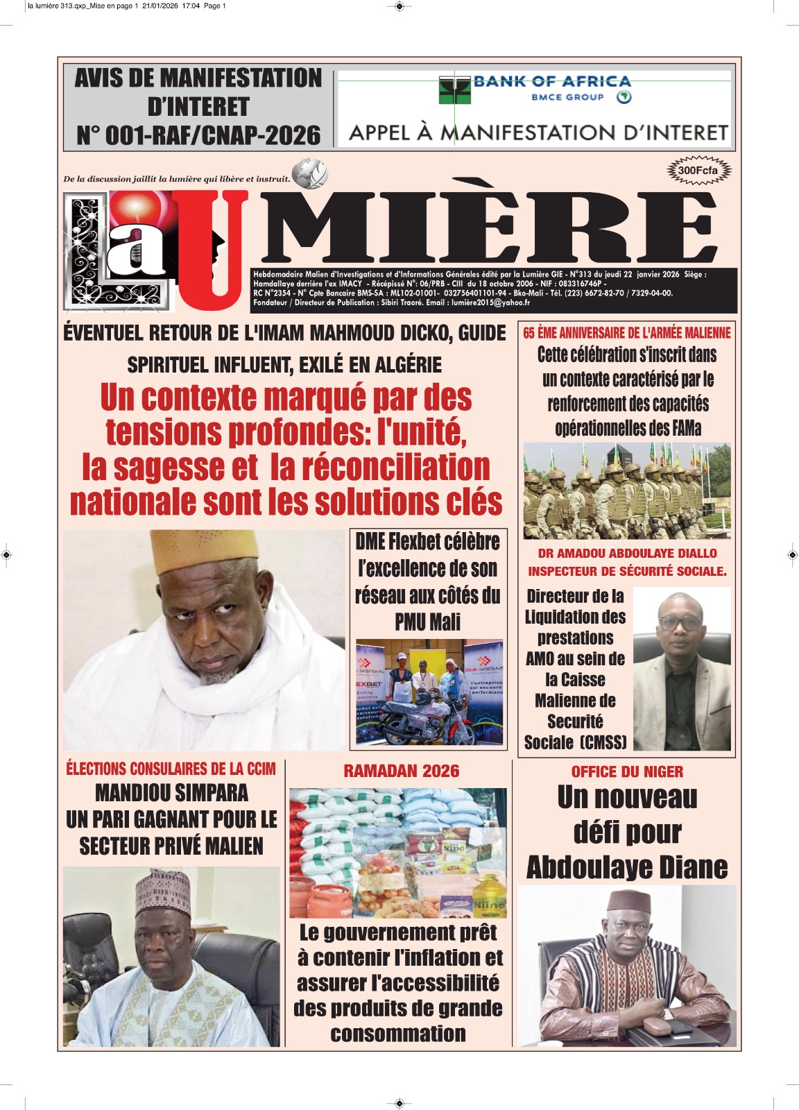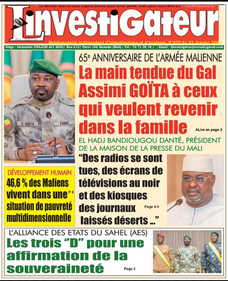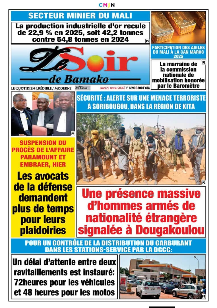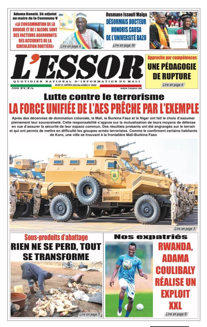 Mali : les journaux du jeudi 22 janvier 2026 Lire les journaux maliens