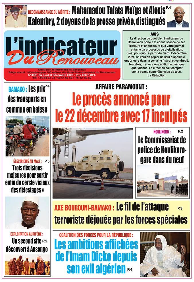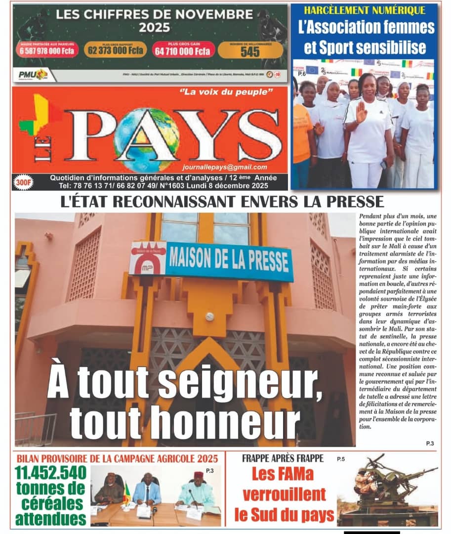 Photos. Les journaux maliens du lundi 08 décembre 2025