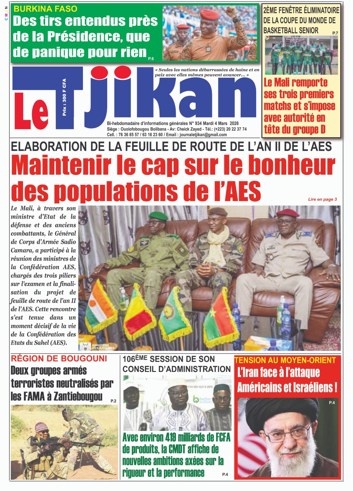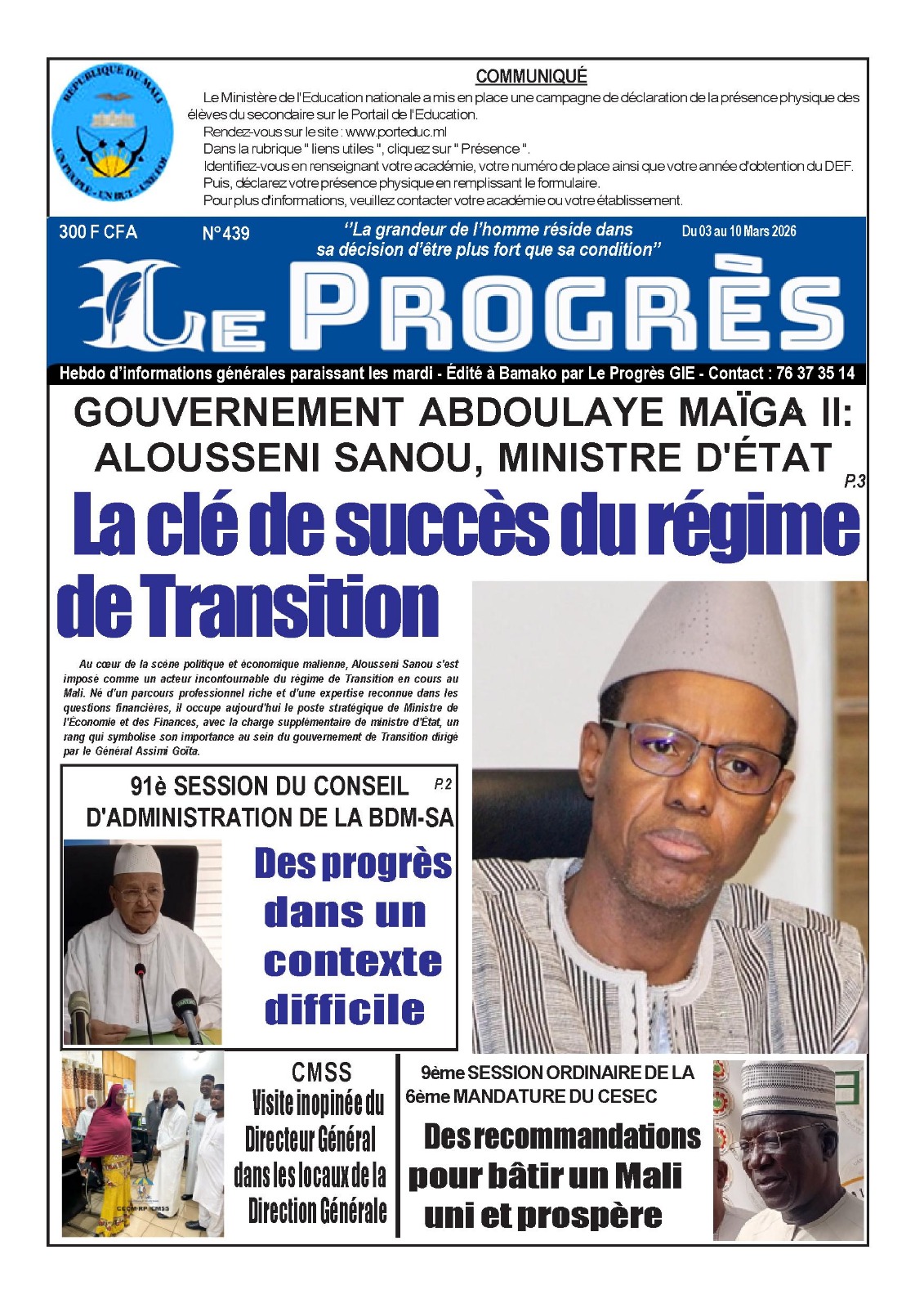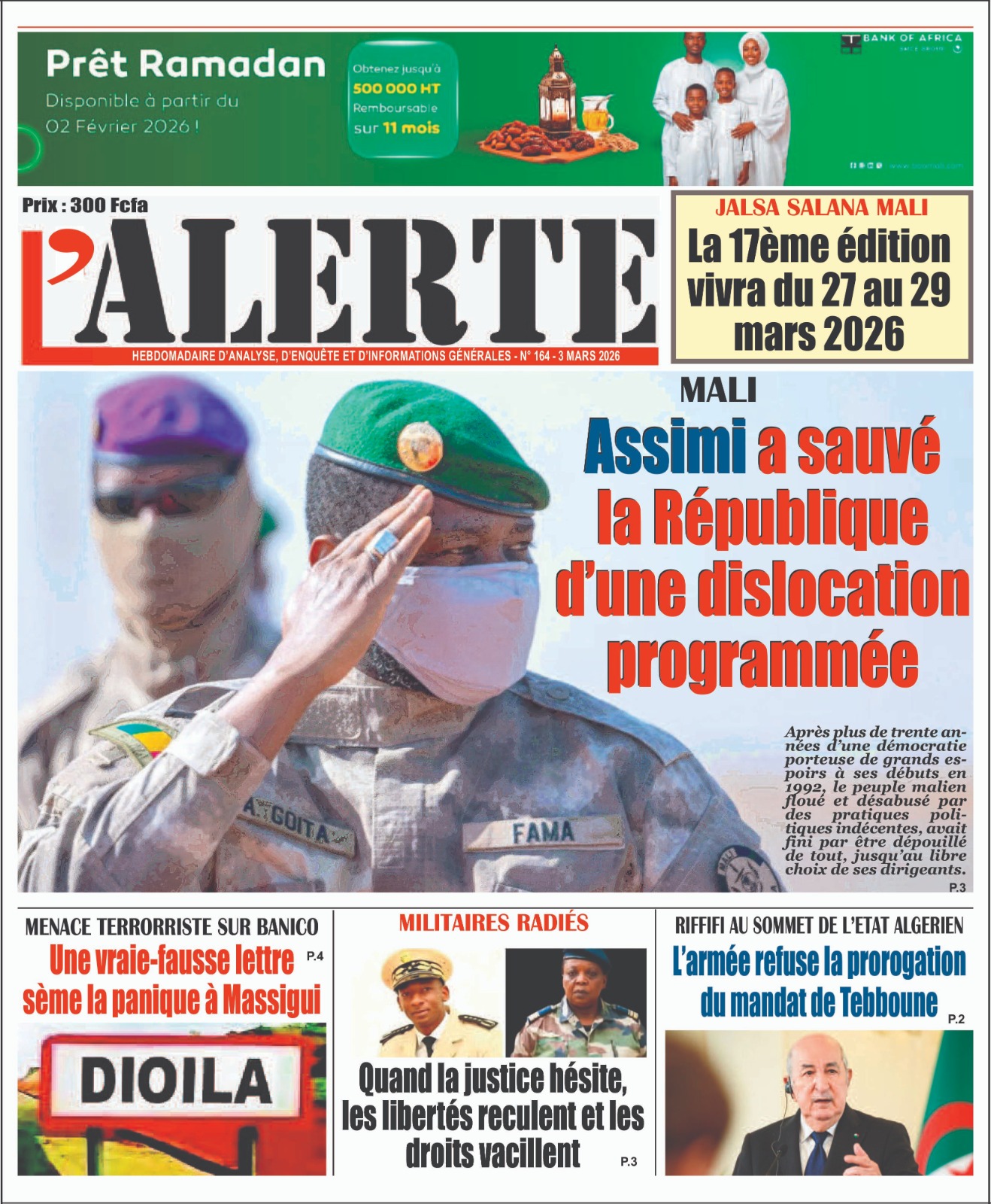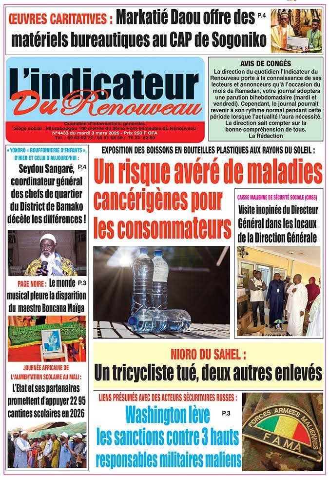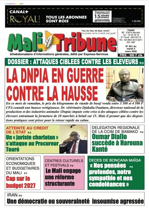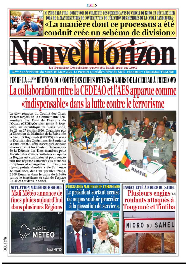 Mali : les journaux du mardi 03 mars 2026 Lire les UNES du Mali