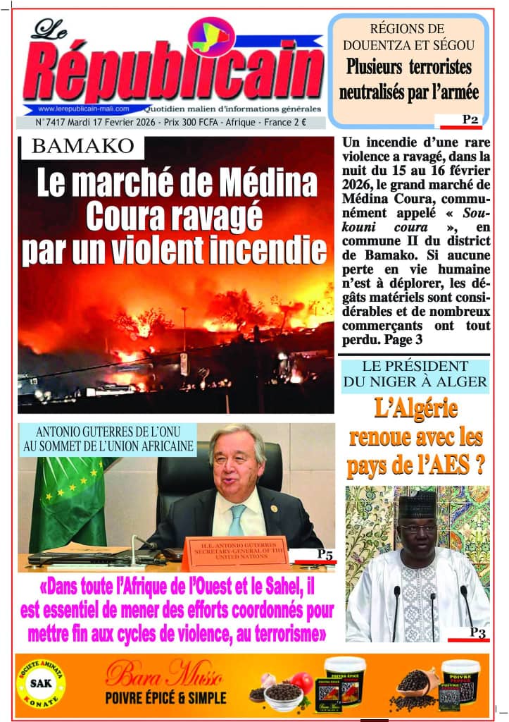Mali : les journaux du mardi 17 février 2026 Lire les UNES du Mali