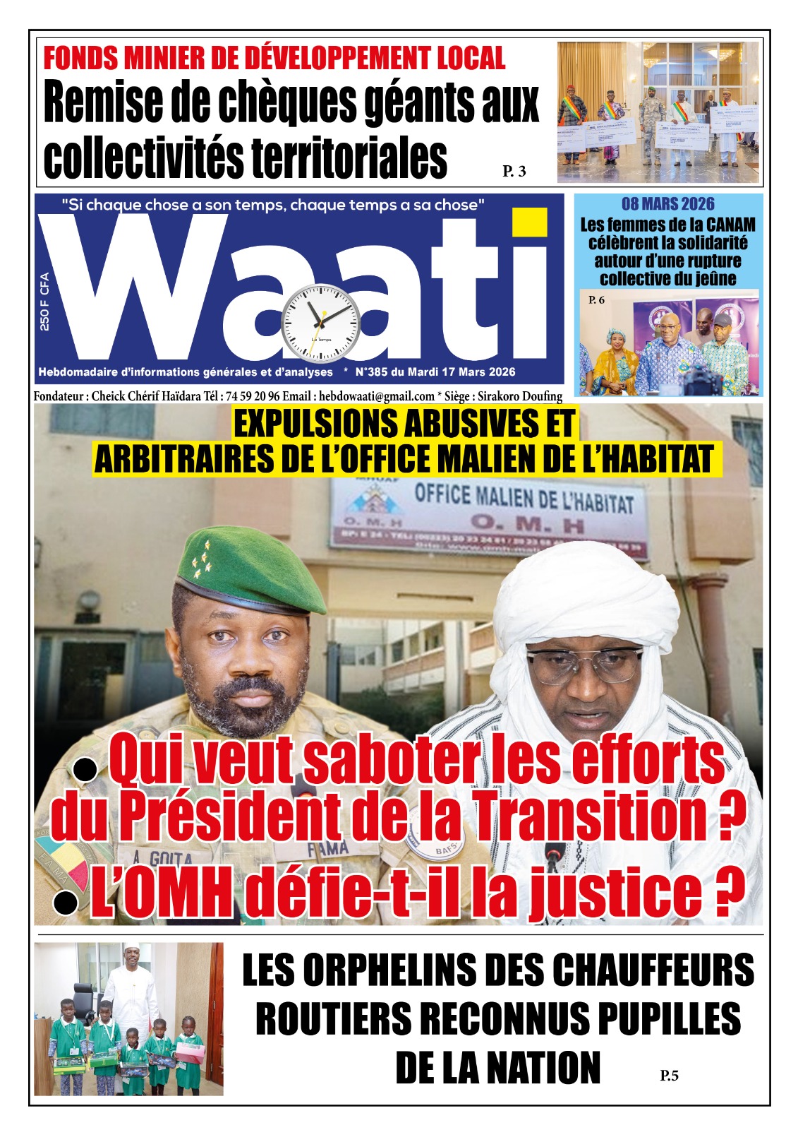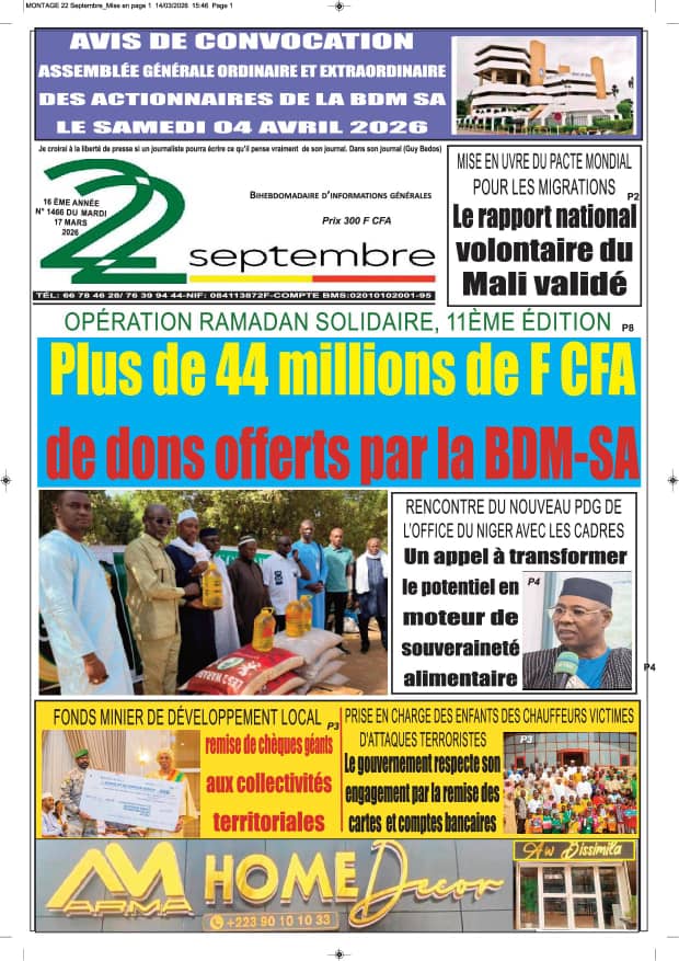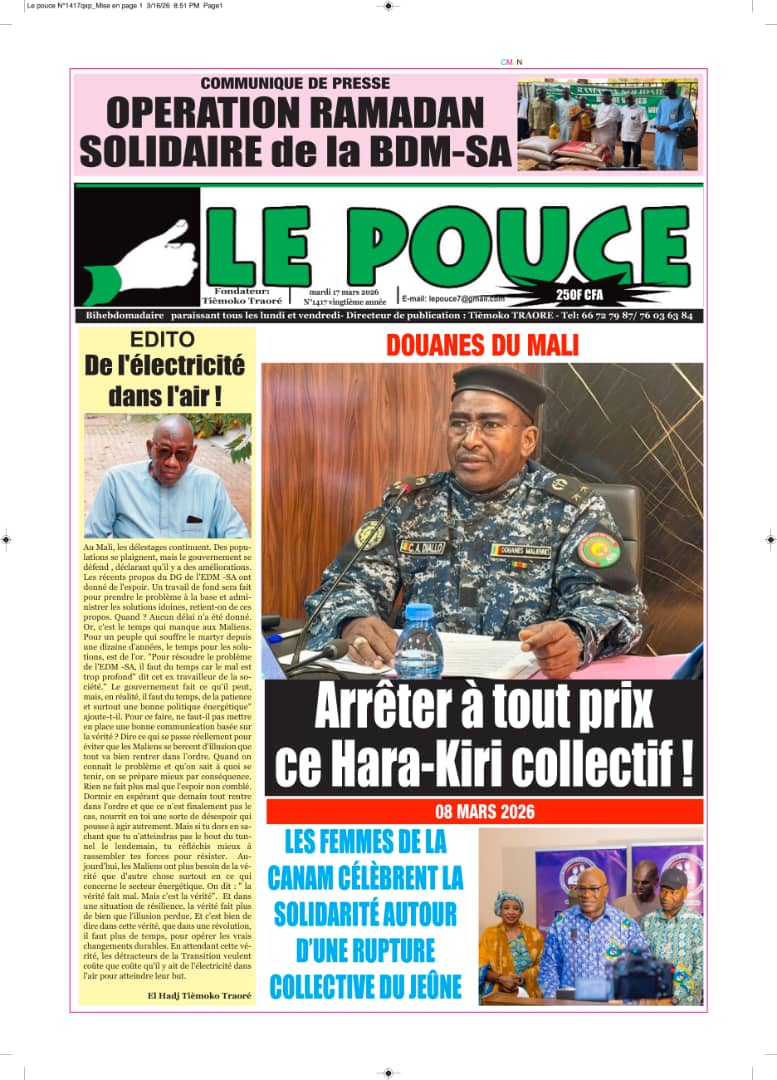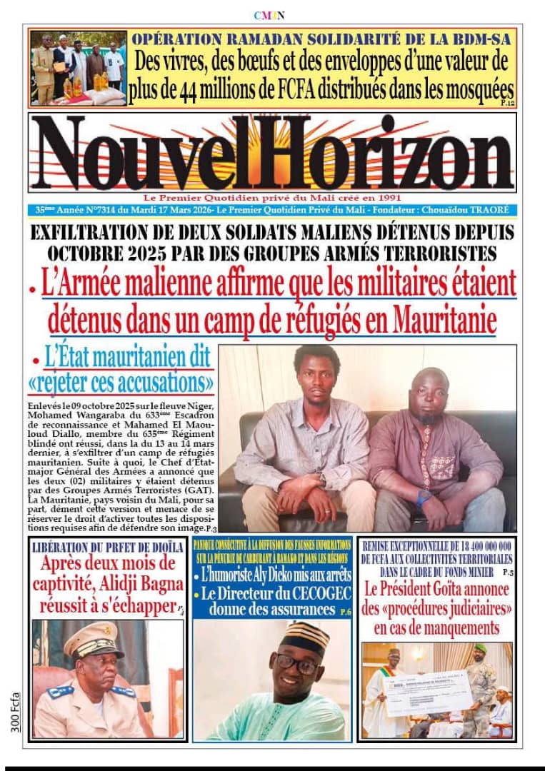 Mali : les journaux du mardi 17 mars 2026 Lire les UNES du Mali
