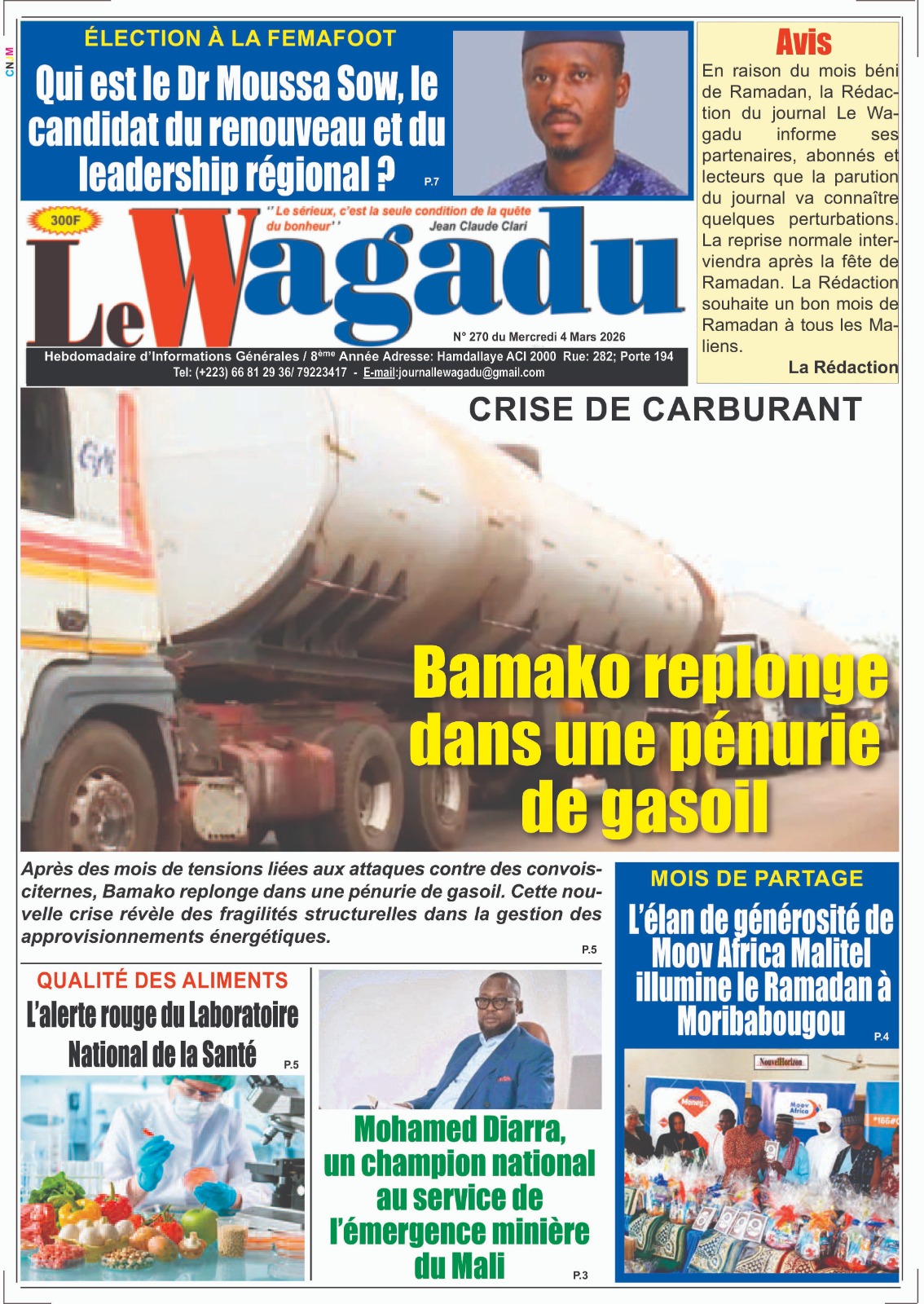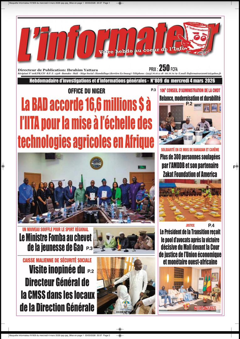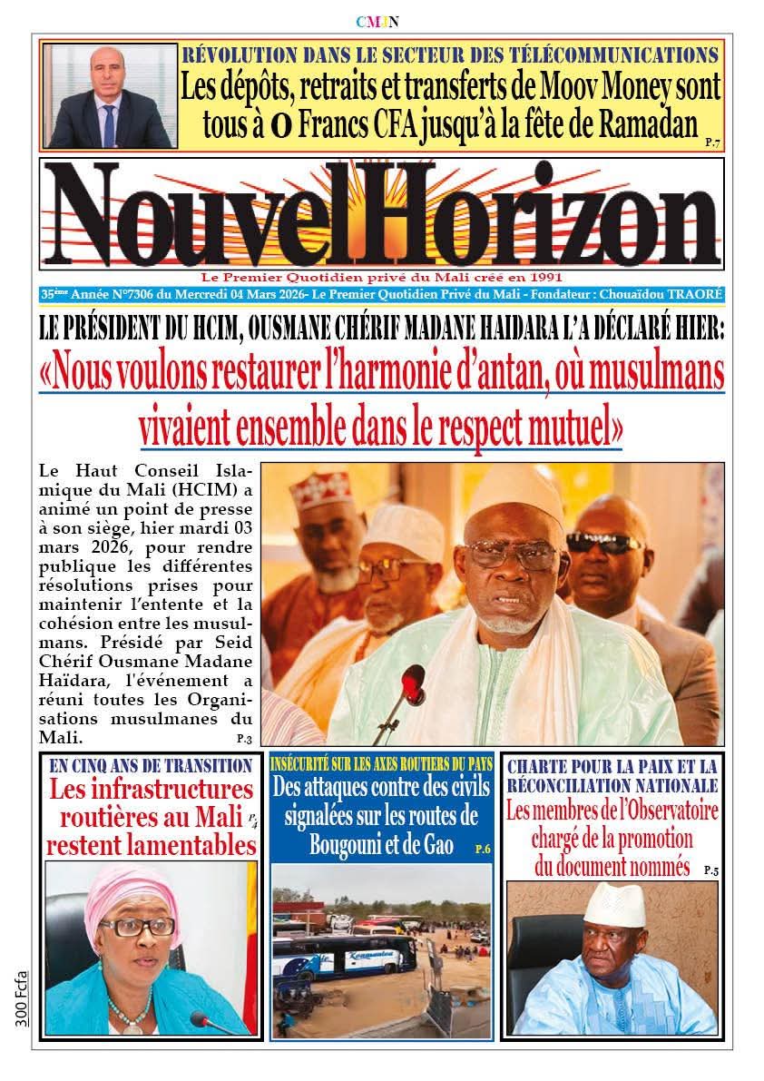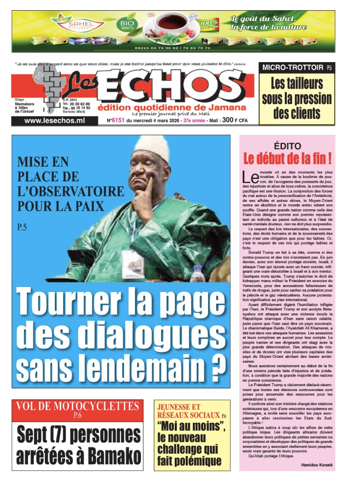 Mali : les journaux du mercredi 04 mars 2026 Lire les UNES du Mali