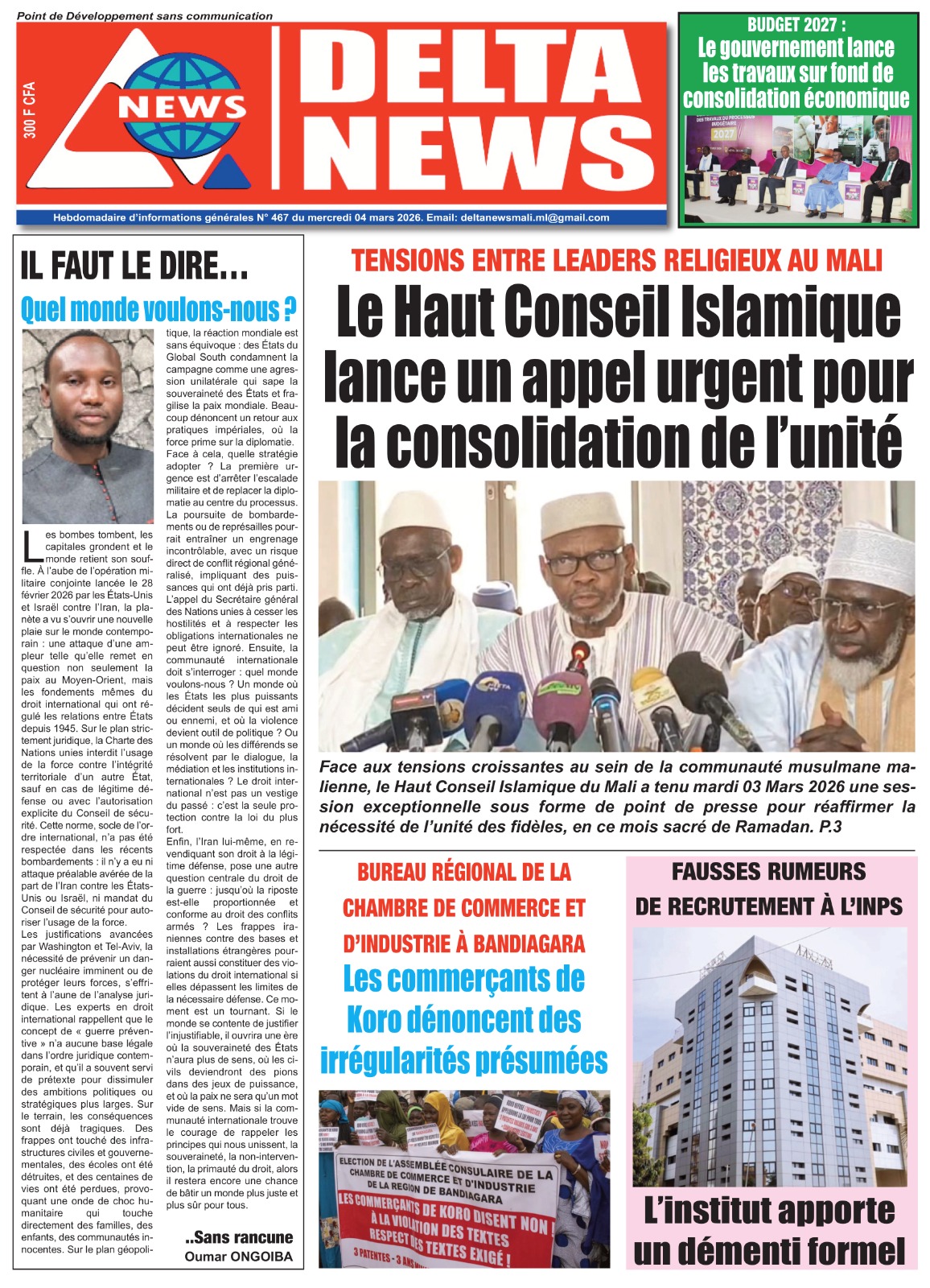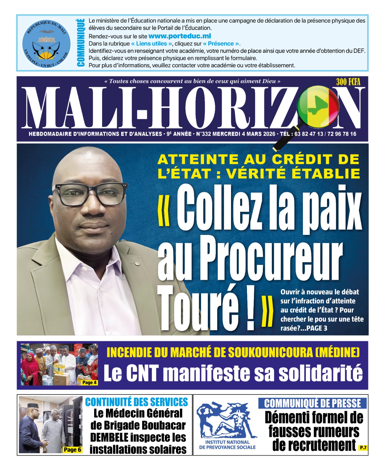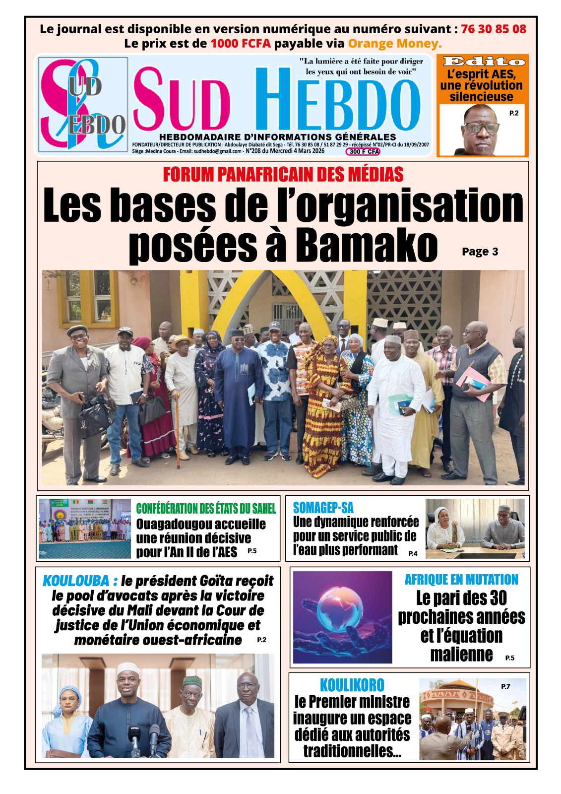 Mali : les journaux du mercredi 04 mars 2026 Lire les UNES du Mali