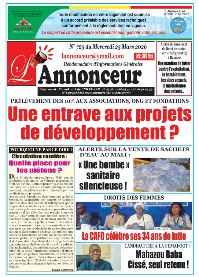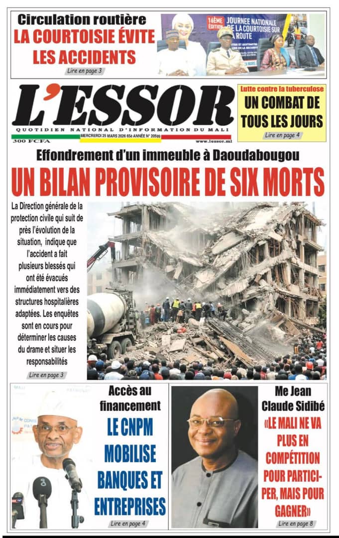 Mali : les journaux du mercredi 25 mars 2026 Lire les UNES maliennes