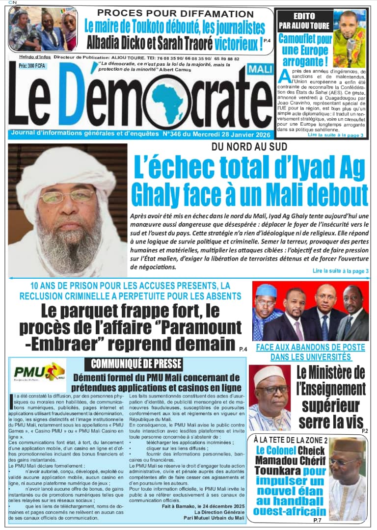 Mali : les journaux du mercredi 28 janvier 2026