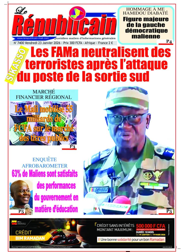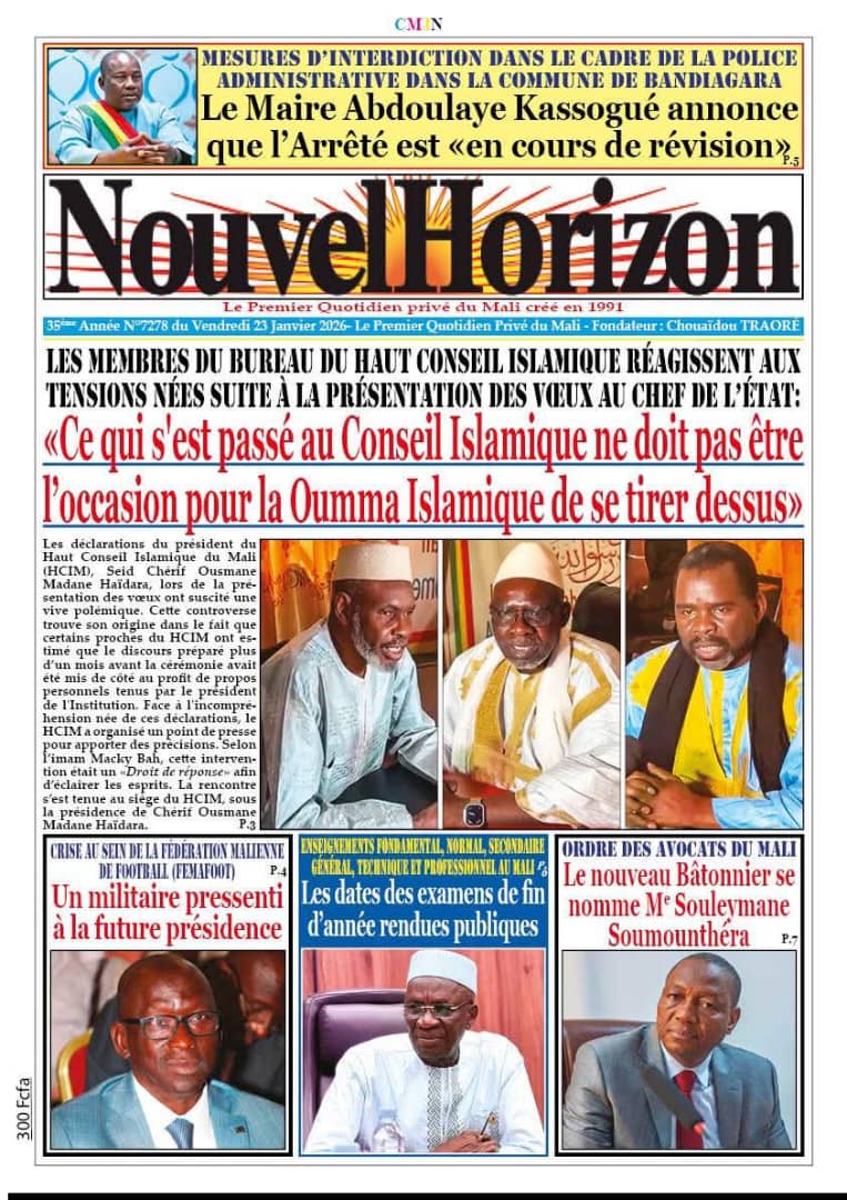 Photos. Les journaux maliens du vendredi 23 janvier 2026