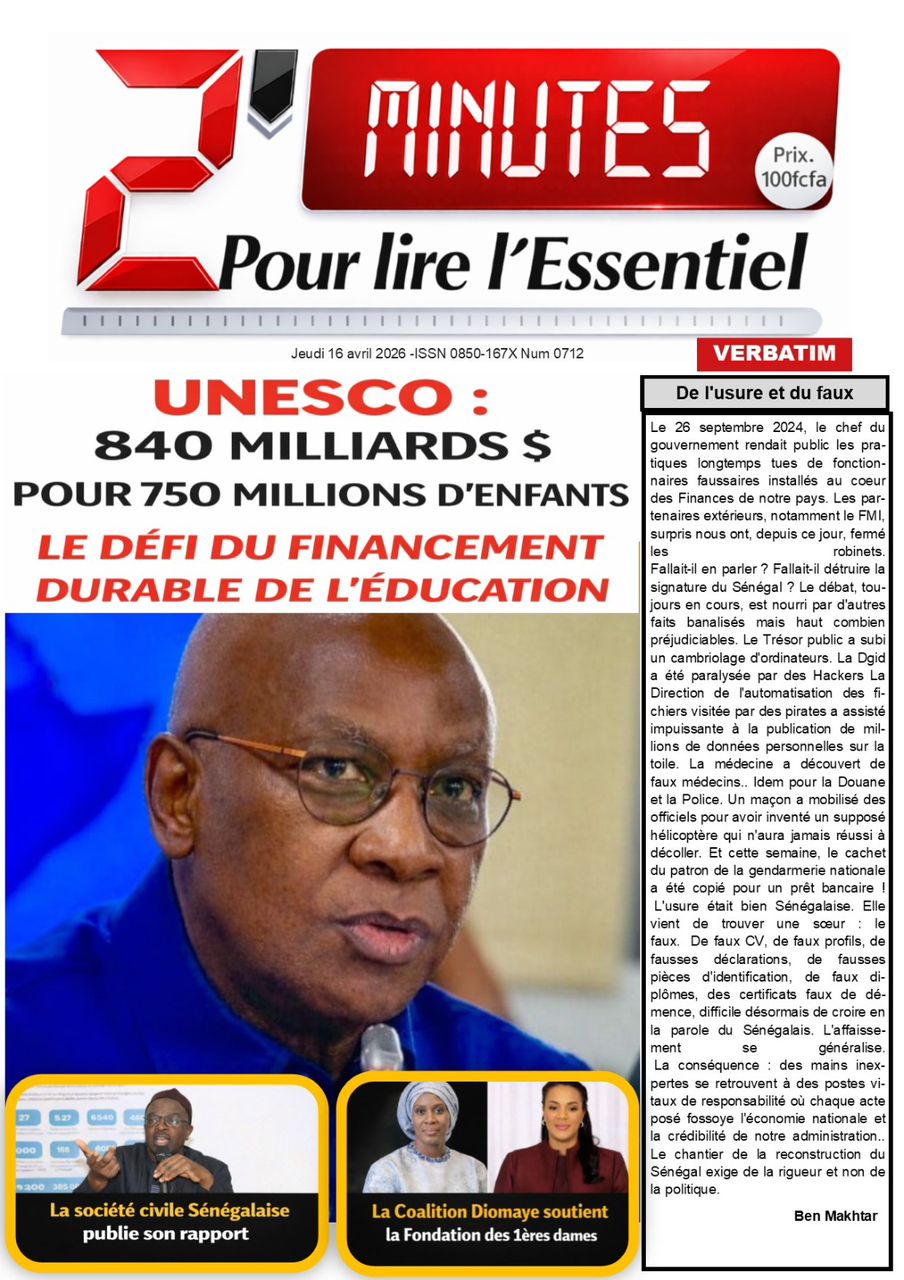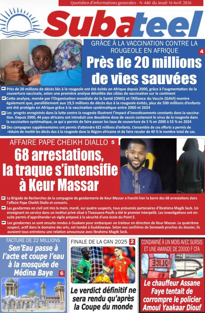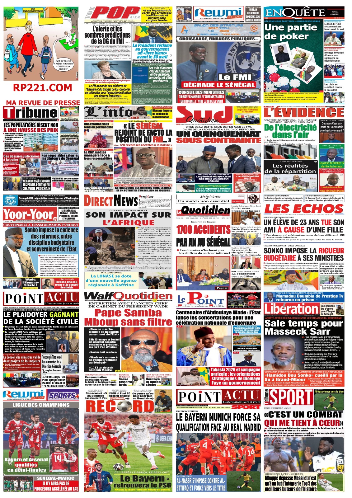 Les UNES de la presse sénégalaise sont également à retrouver sur l’ensemble de nos réseaux sociaux : Facebook, Linkedin, Tik Tok, Twitter, WhatsApp et Youtube.