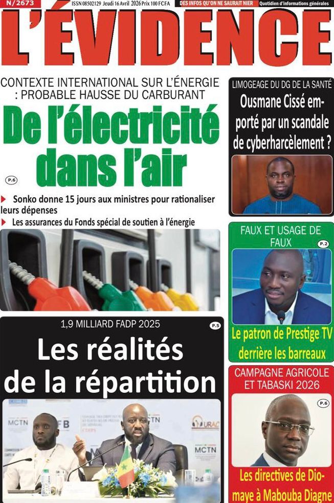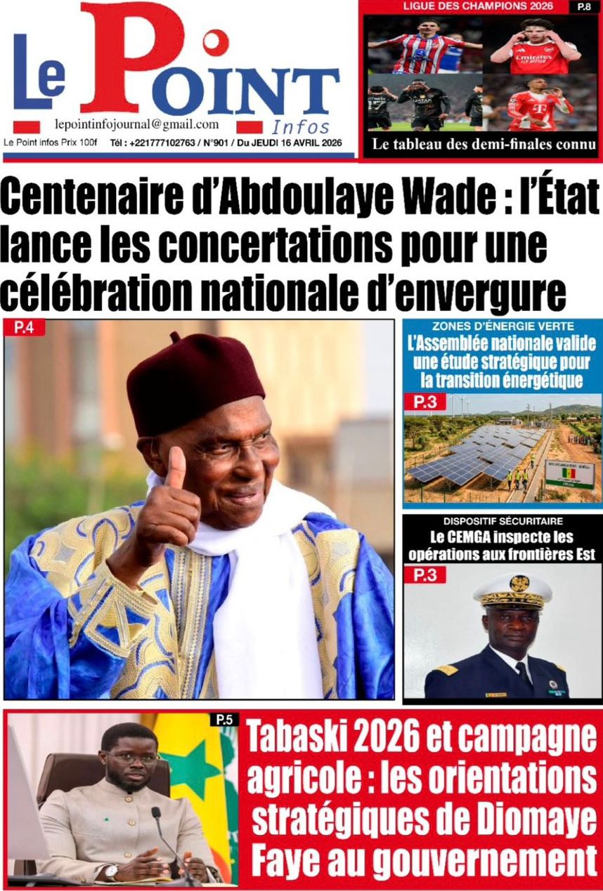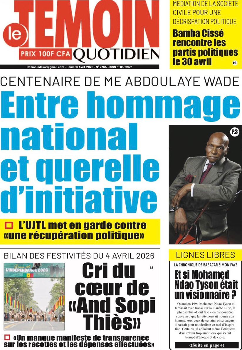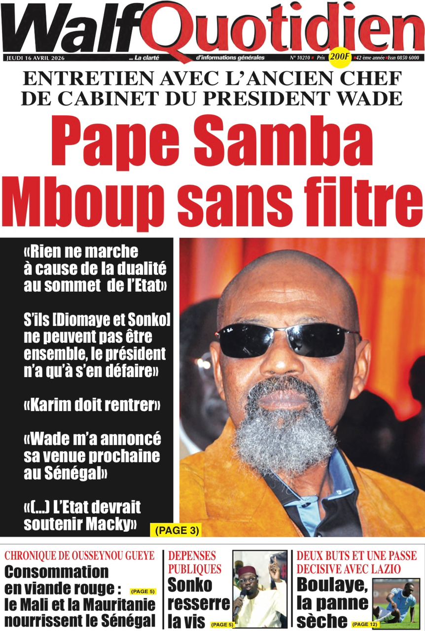 Photos. Les journaux sénégalais du jeudi 16 avril 2026