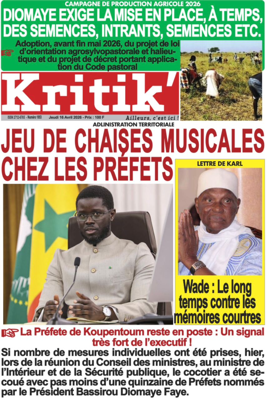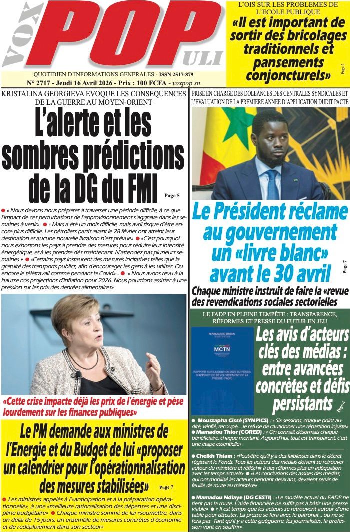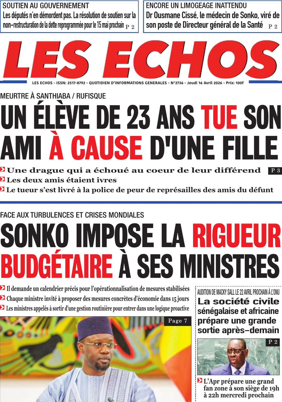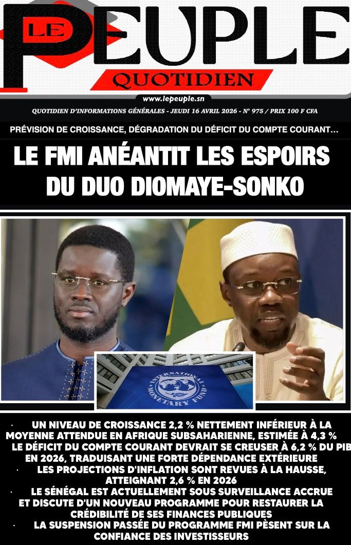 Photos. Les journaux sénégalais du jeudi 16 avril 2026