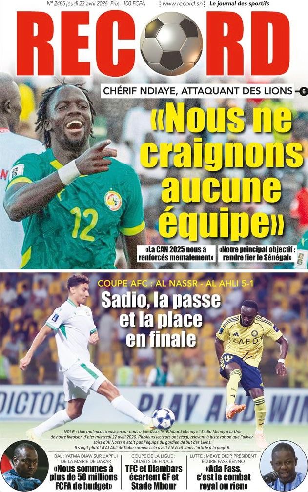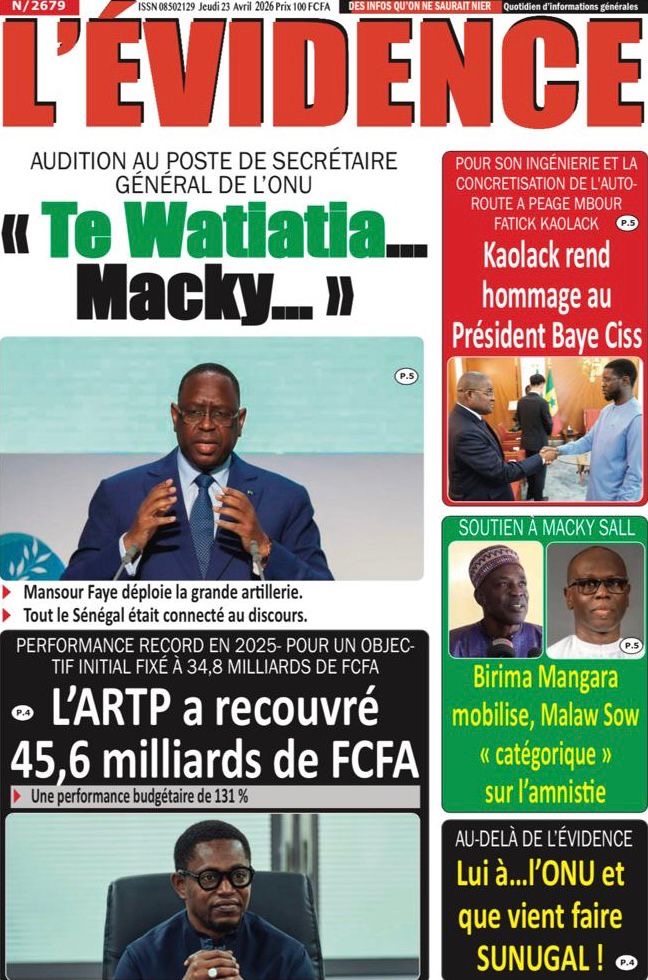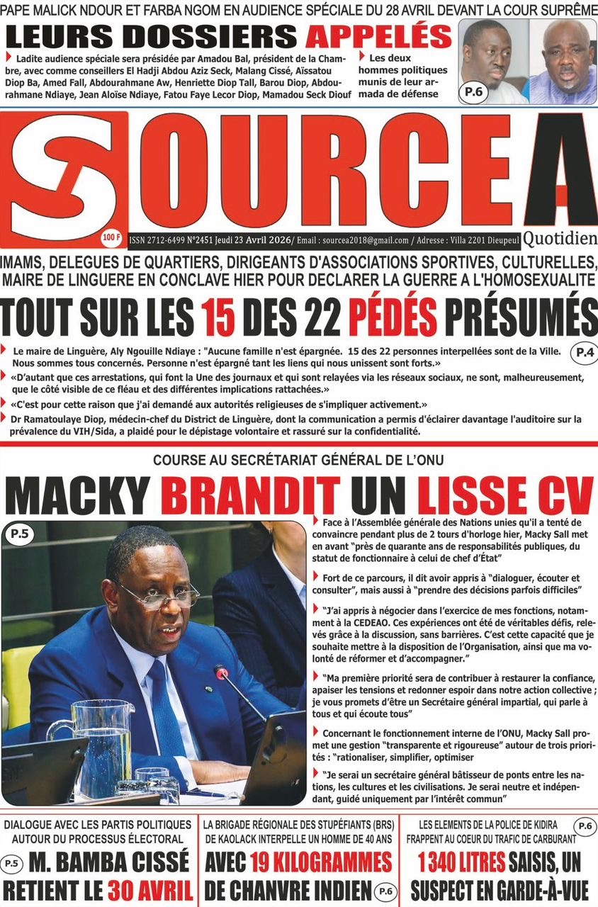 Les journaux sénégalais du jeudi 23 avril 2026