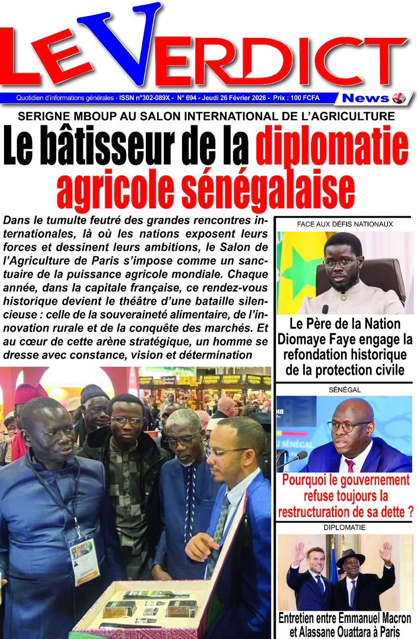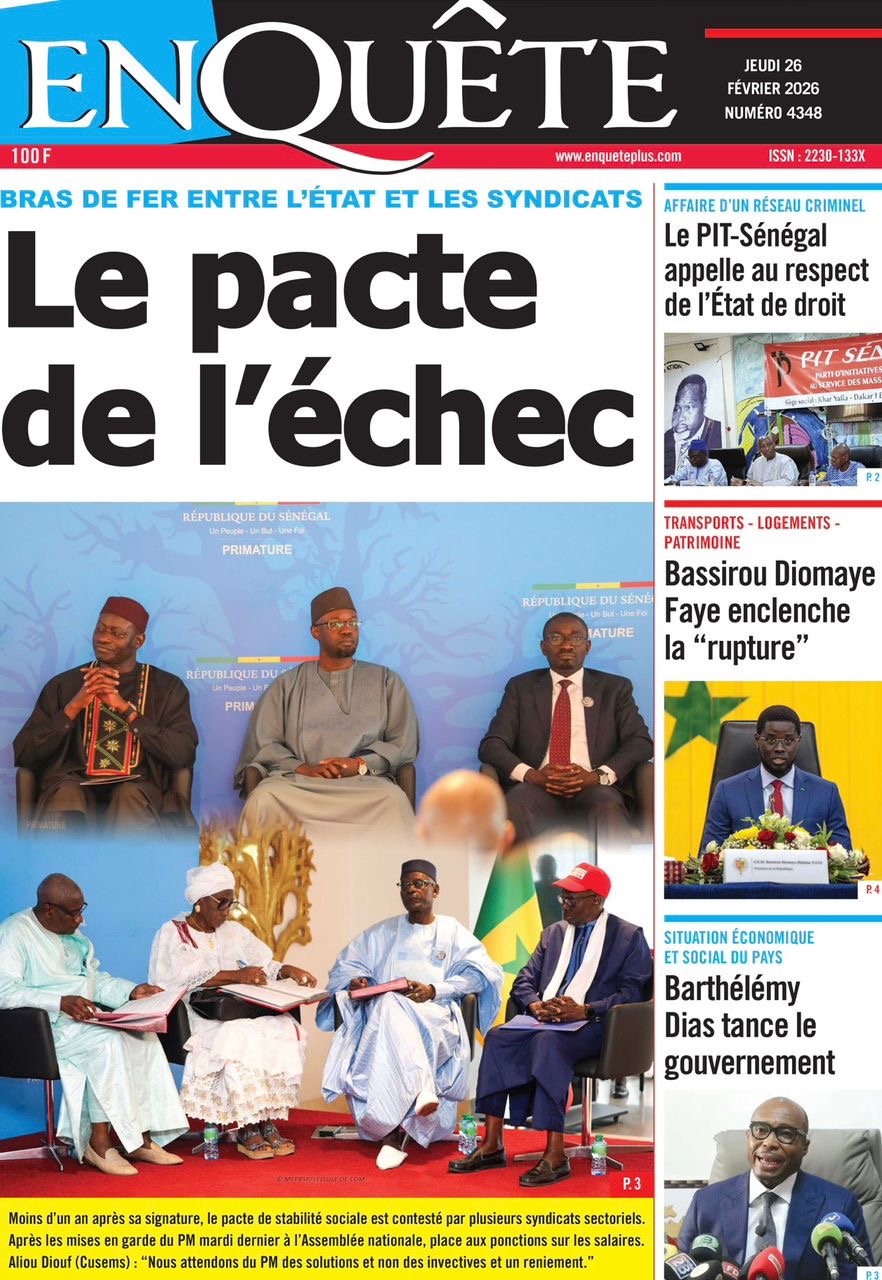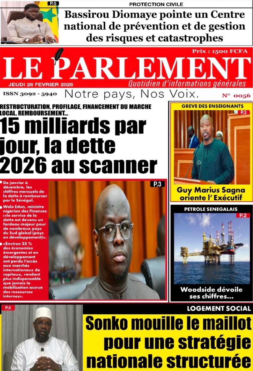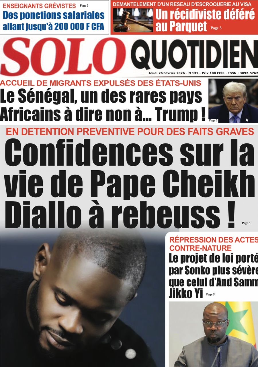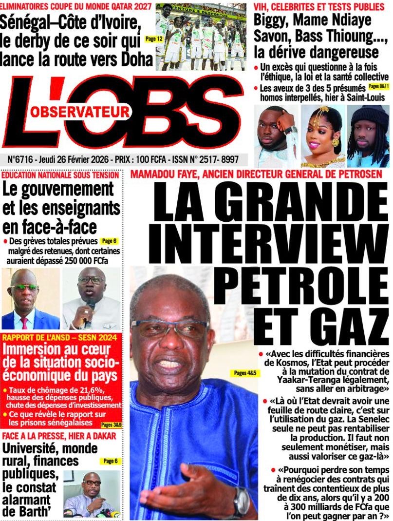 Jeudi 26 février 2026 : les journaux sénégalais mettent en avant les directives du Président de la République lors du dernier conseil des ministres, les ponctions opérées sur les salaires des enseignants grévistes et la sortie de Barthélémy Dias sur la situation nationale.