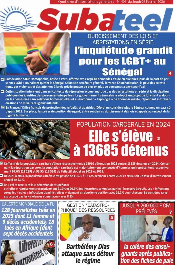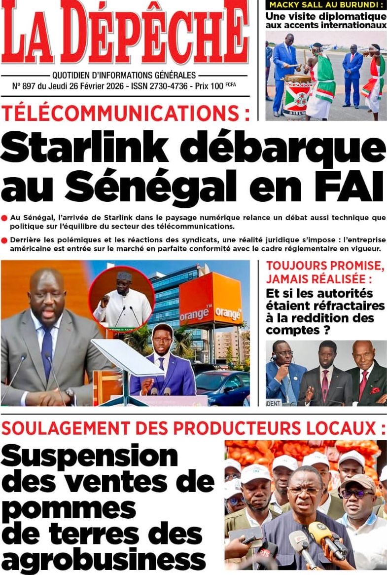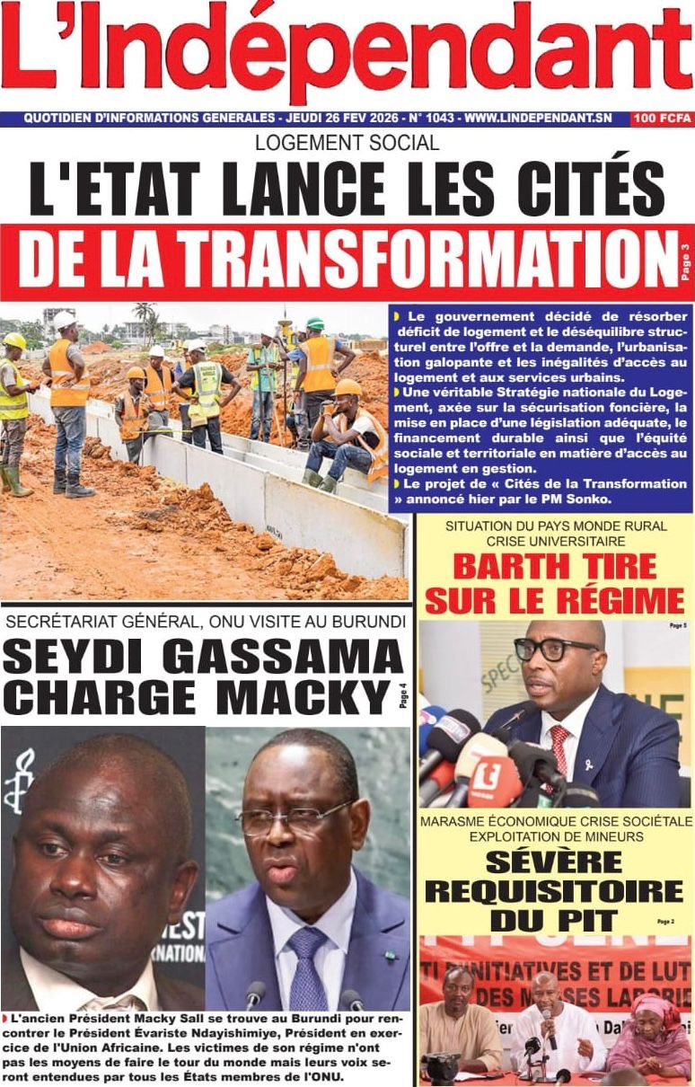 Photos. Les journaux sénégalais du Jeudi 26 février 2026