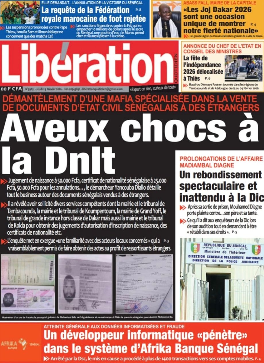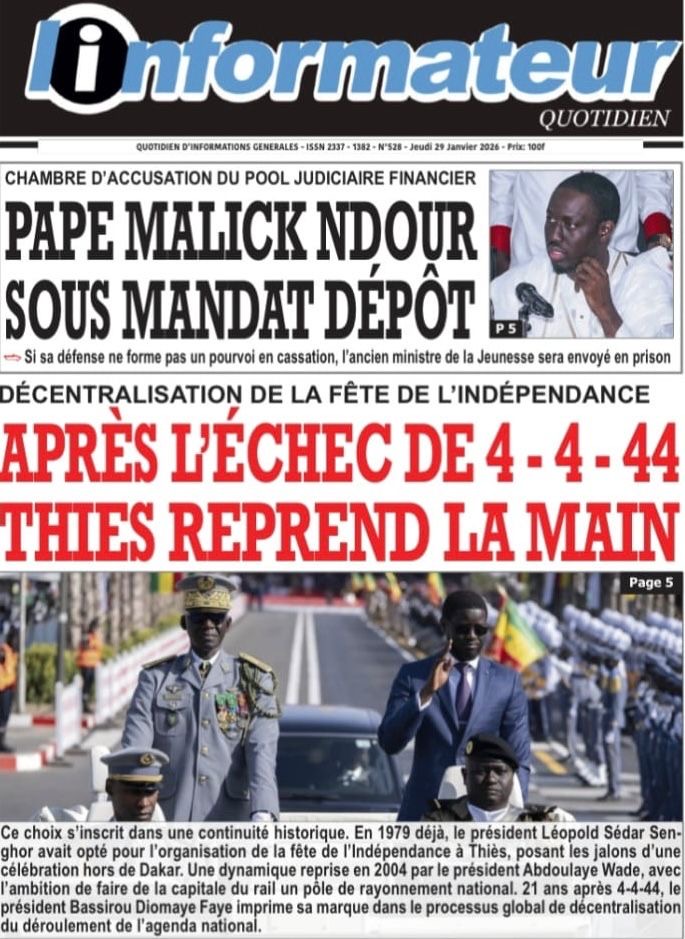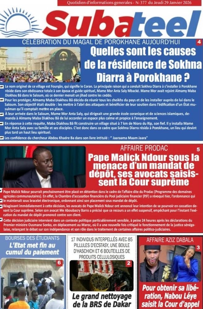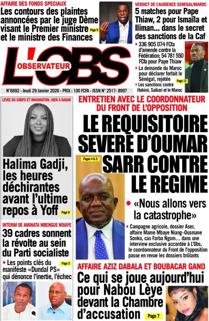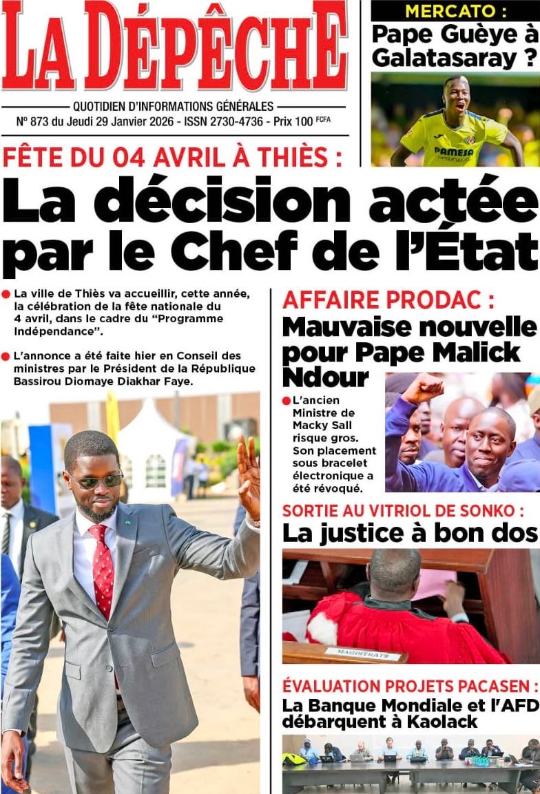 Les journaux sénégalais du jeudi 29 janvier 2026