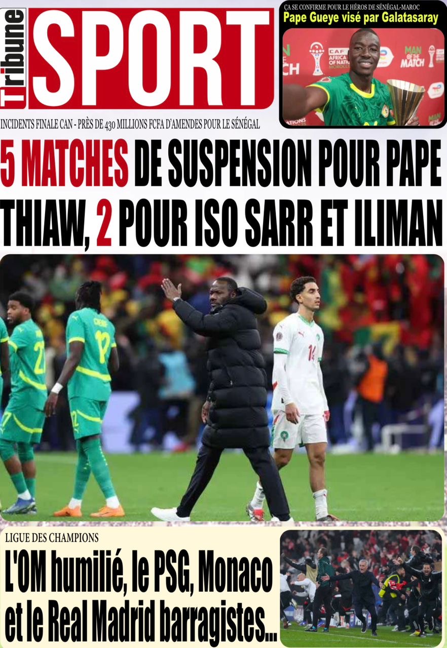 Lire sur les sanctions de la CAF contre le Sénégal : https://aps.sn/incidents-finale-can-2025-pape-thiaw-suspendu-5-matchs-ismael-sarr-et-iliman-2-plus-de-400-millions-fcfa-damende/