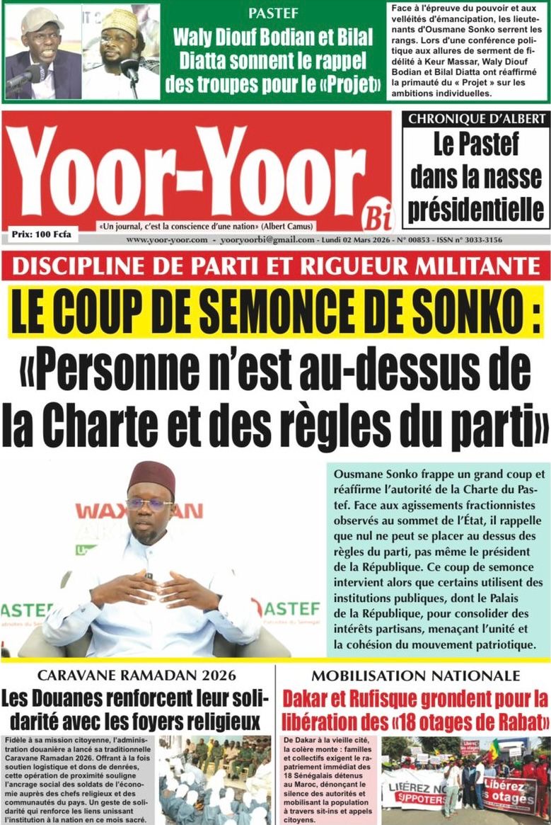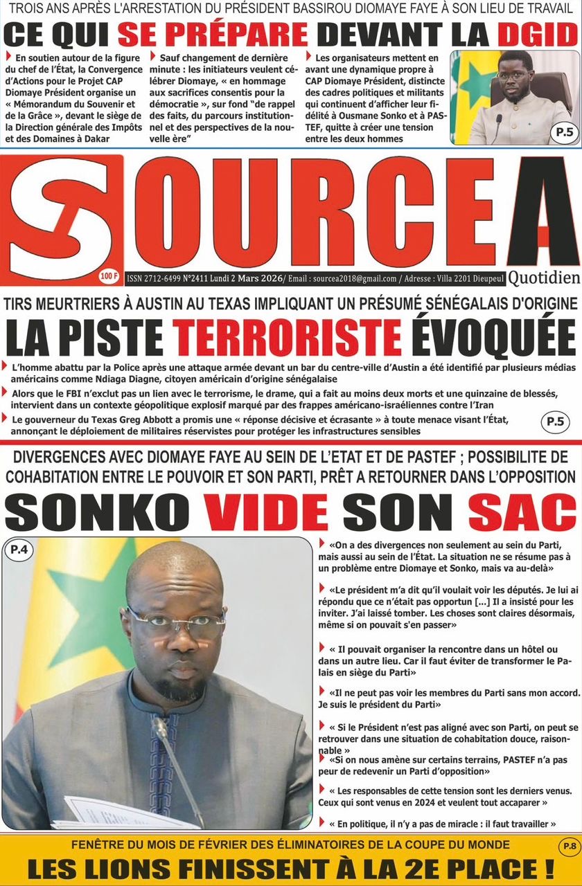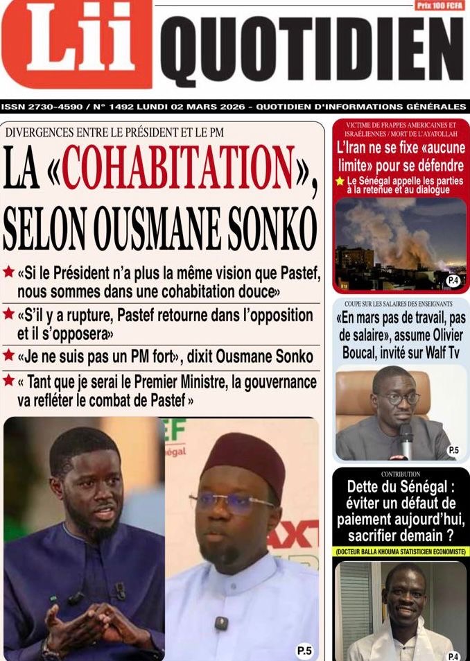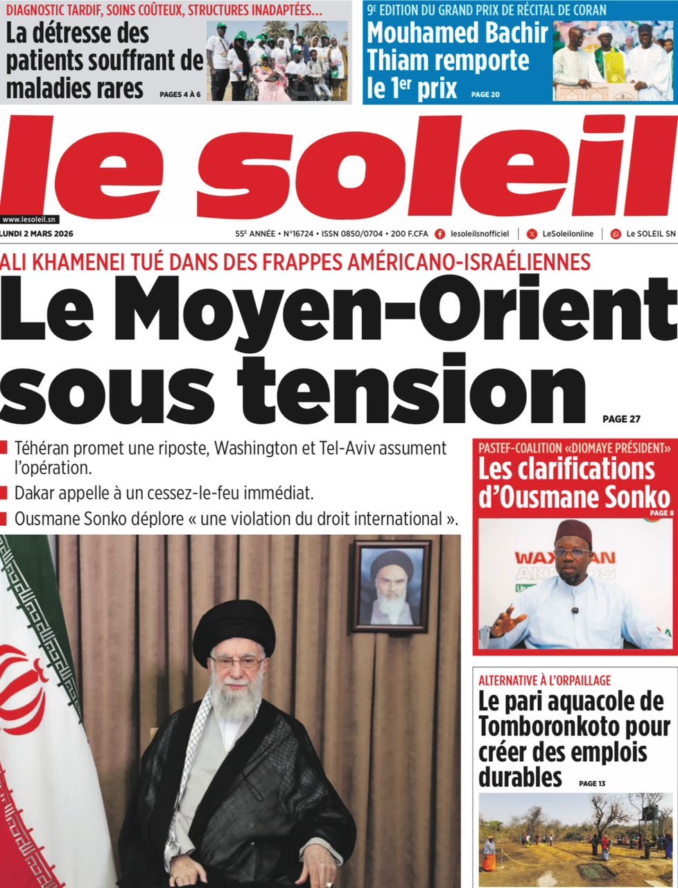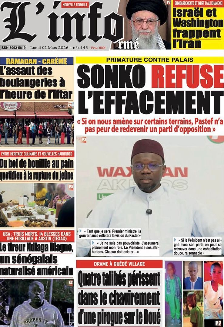 Les journaux sénégalais du lundi 02 mars 2026 Lire les journaux sénégalais