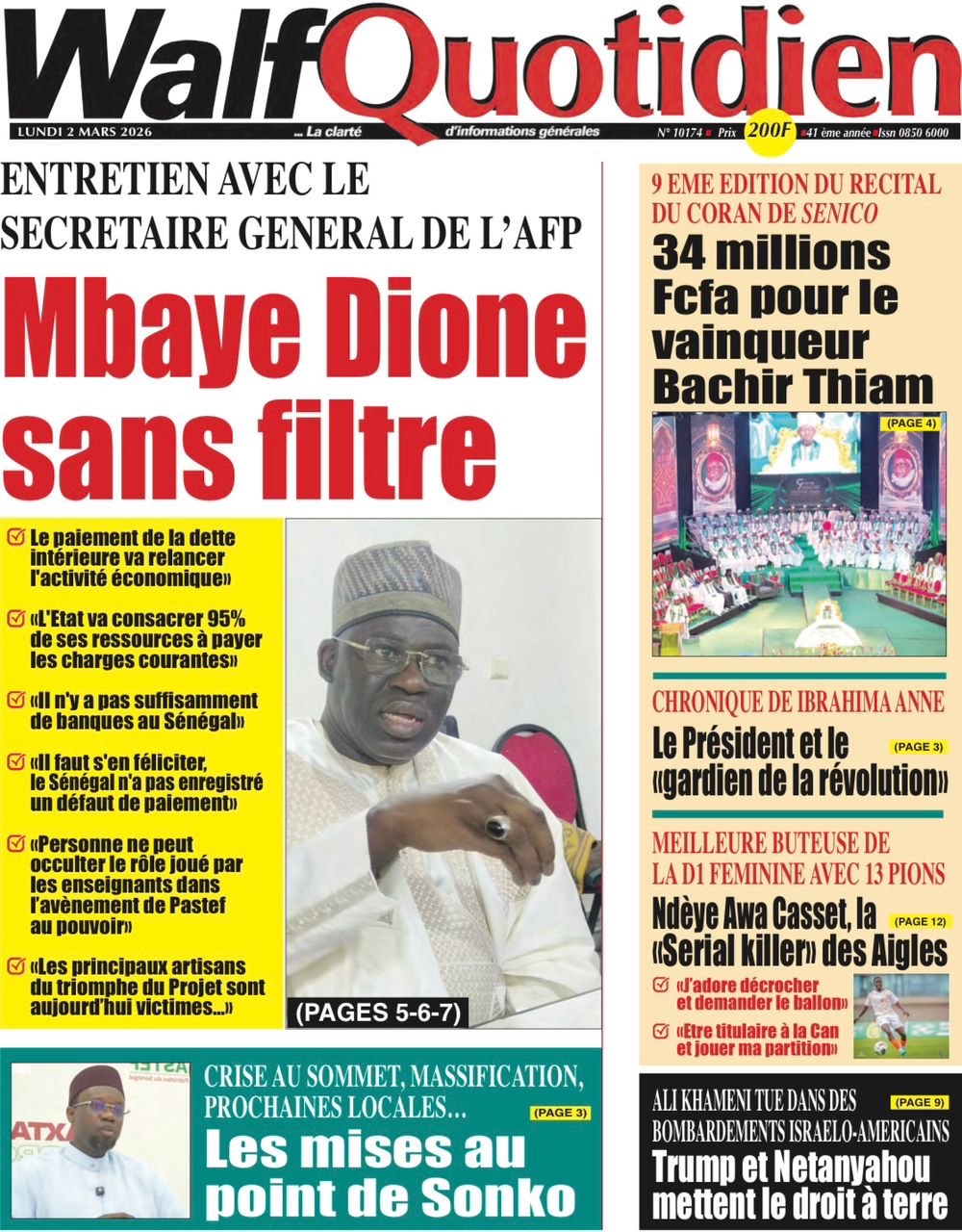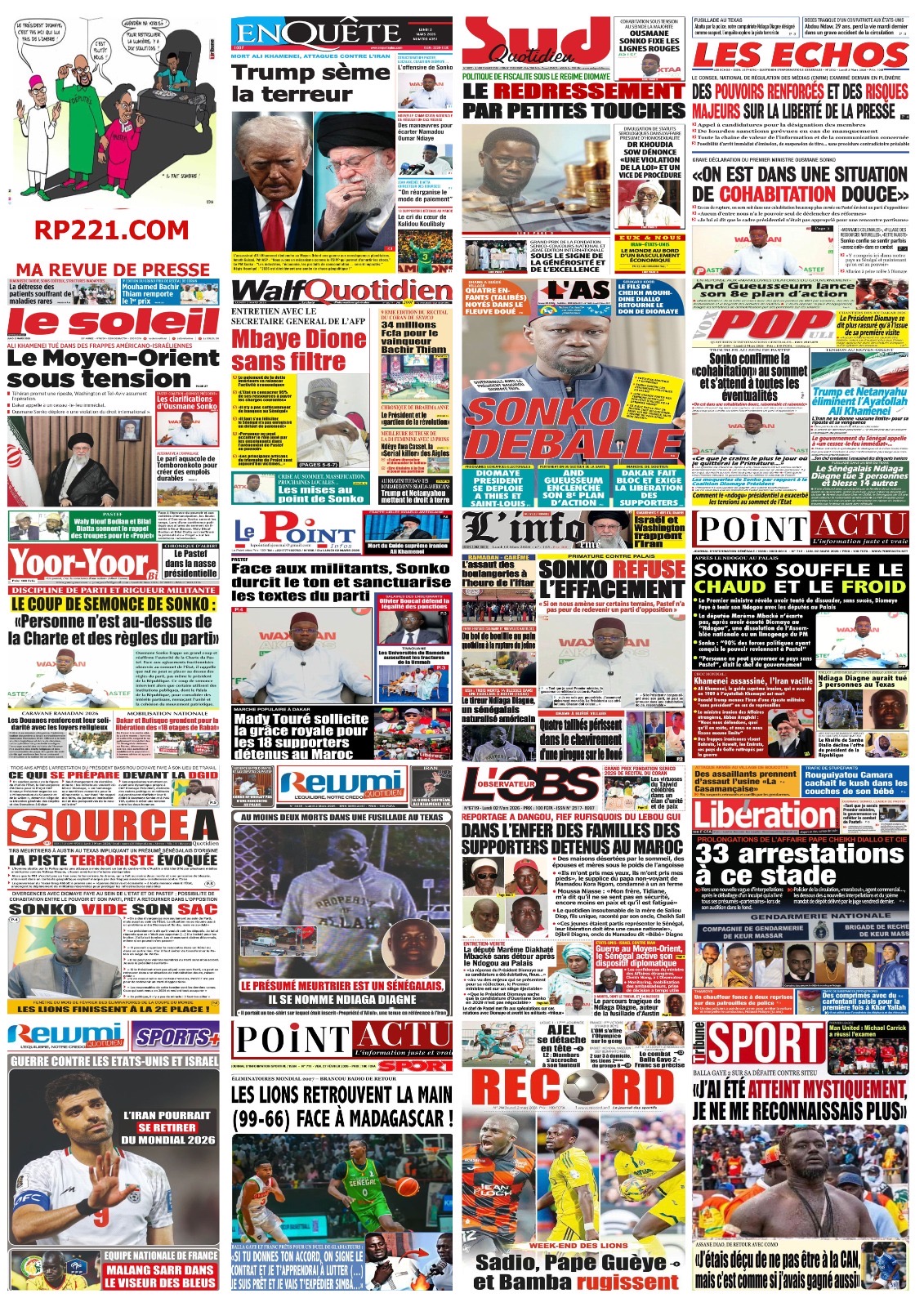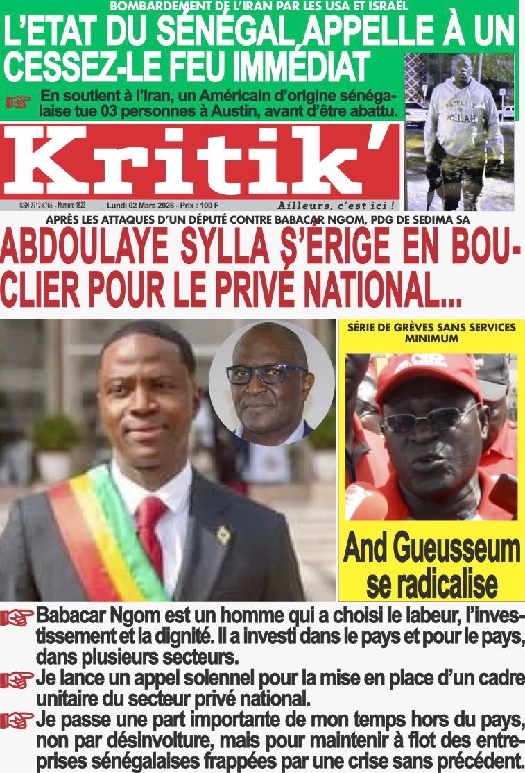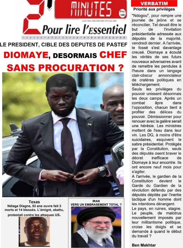 Les journaux sénégalais du lundi 02 mars 2026 Lire les journaux sénégalais