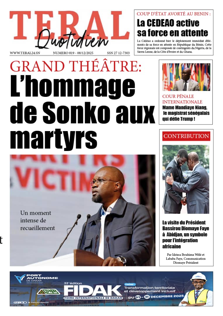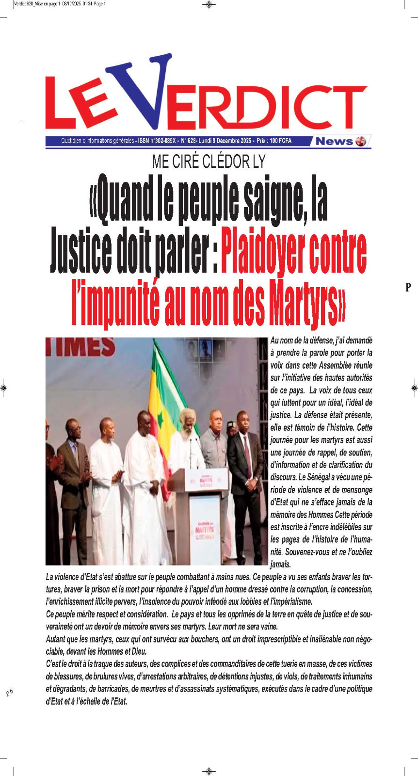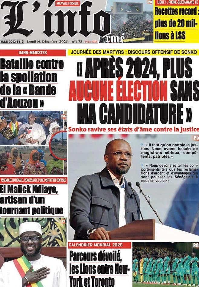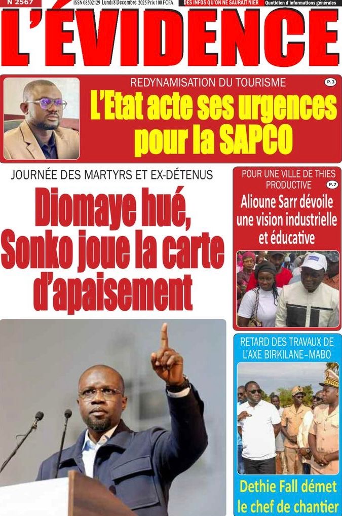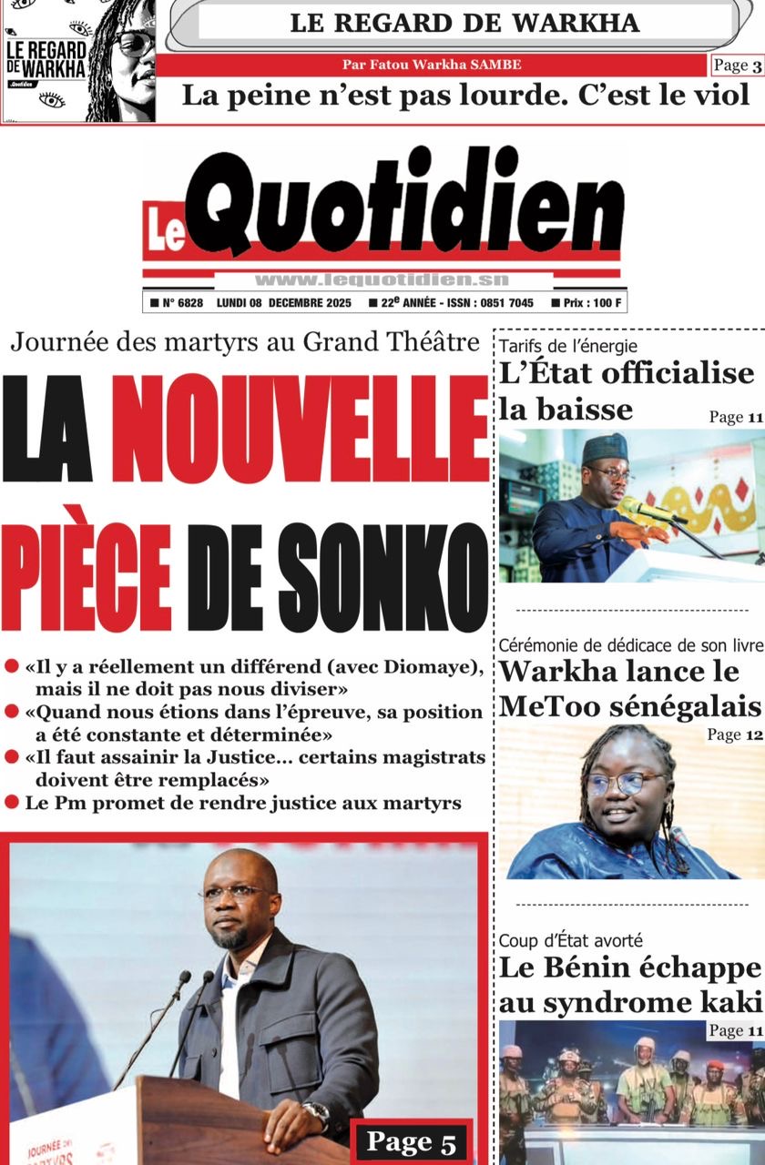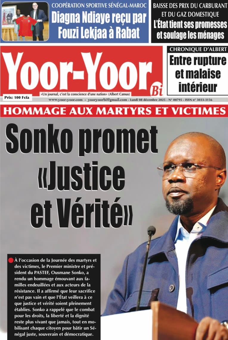 Les journaux sénégalais du lundi 07 décembre 2025 sont nombreux à revenir sur la journée des martyrs et victimes des violences politiques présidée par le Premier ministre Ousmane Sonko et sa déclaration sur son éligibilité.