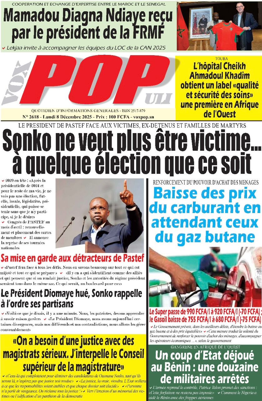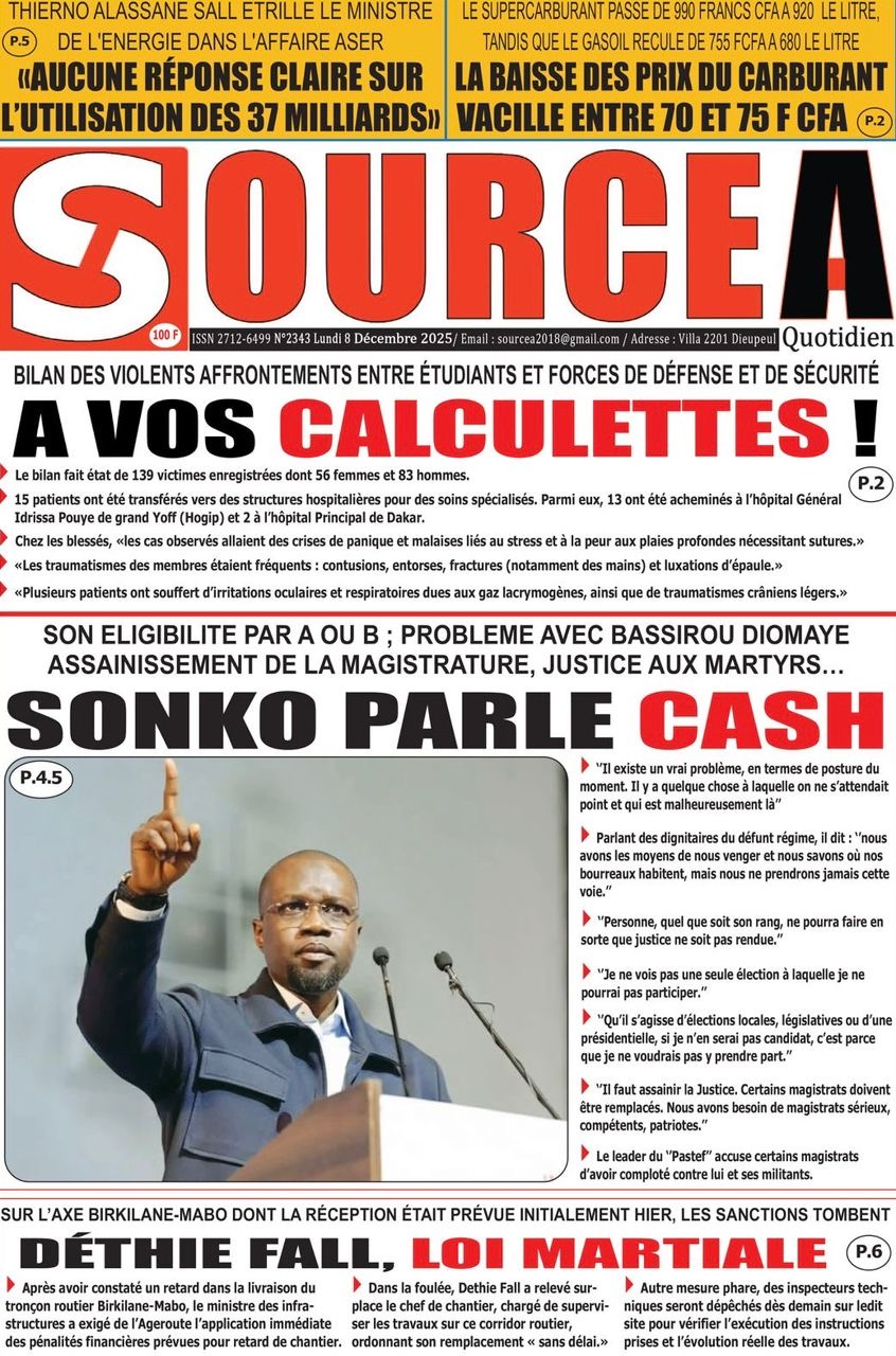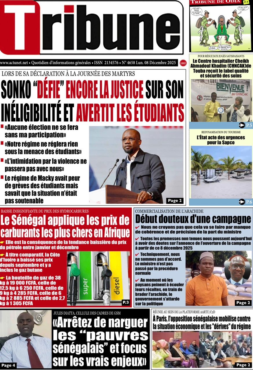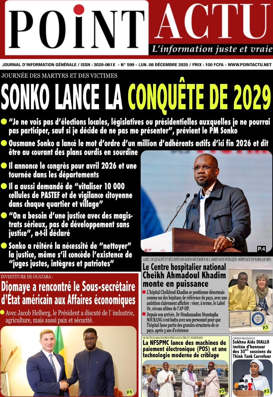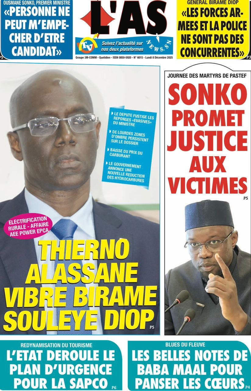 Les journaux sénégalais du lundi 07 décembre 2025 sont nombreux à revenir sur la journée des martyrs et victimes des violences politiques présidée par le Premier ministre Ousmane Sonko et sa déclaration sur son éligibilité.