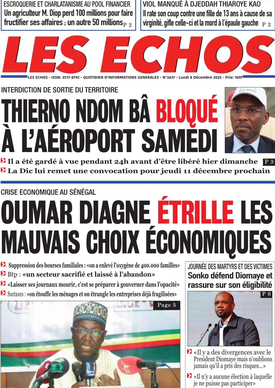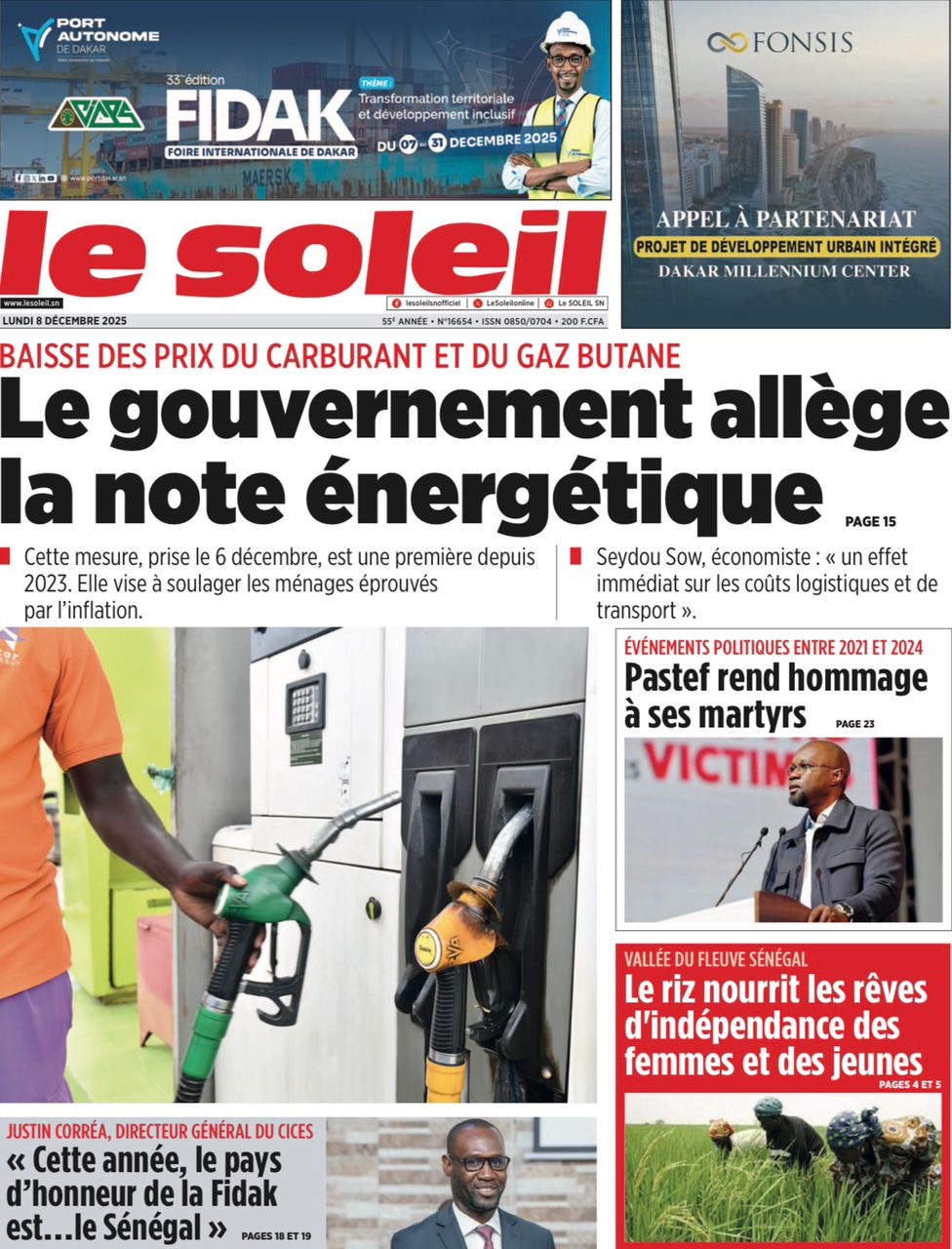 Photos. Les journaux sénégalais du lundi 07 décembre 2025