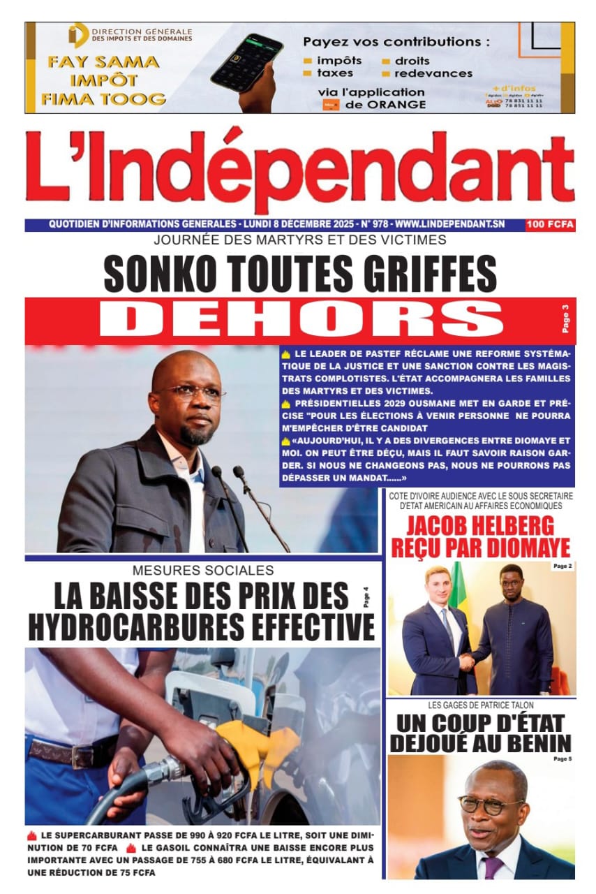 Les journaux sénégalais du lundi 07 décembre 2025 sont nombreux à revenir sur la journée des martyrs et victimes des violences politiques présidée par le Premier ministre Ousmane Sonko et sa déclaration sur son éligibilité.