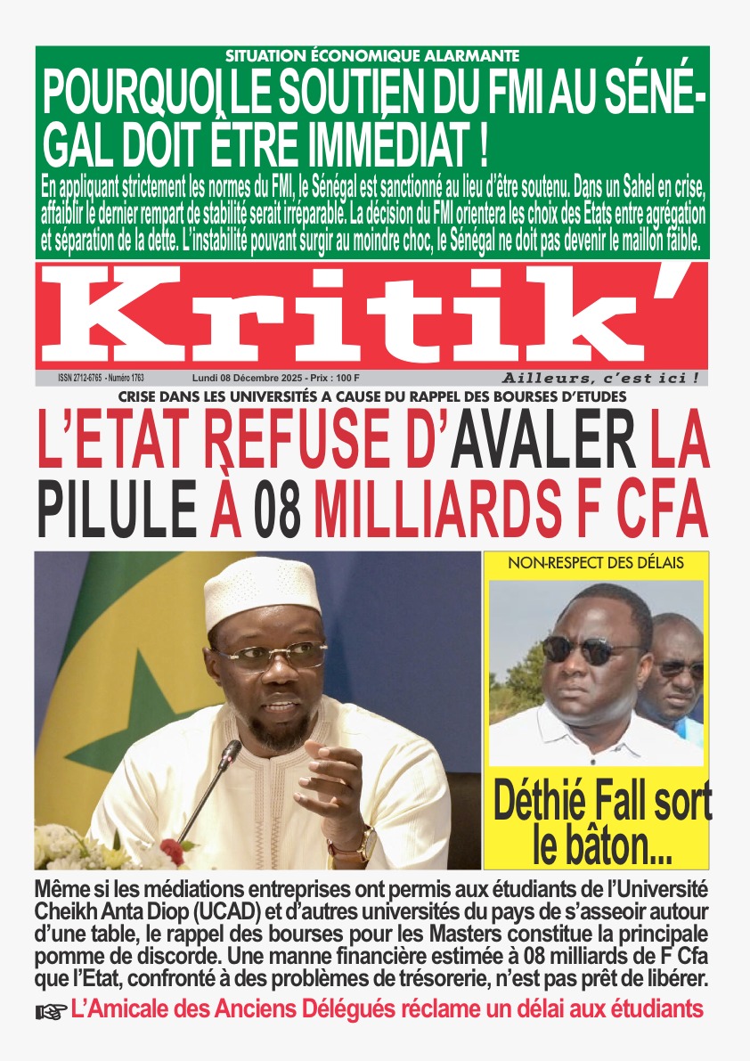 Photos. Les journaux sénégalais du lundi 08 décembre 2025