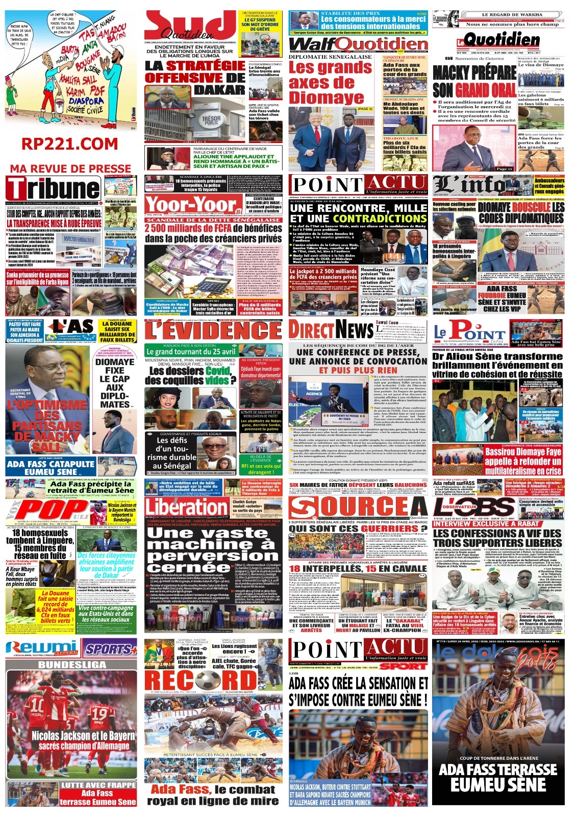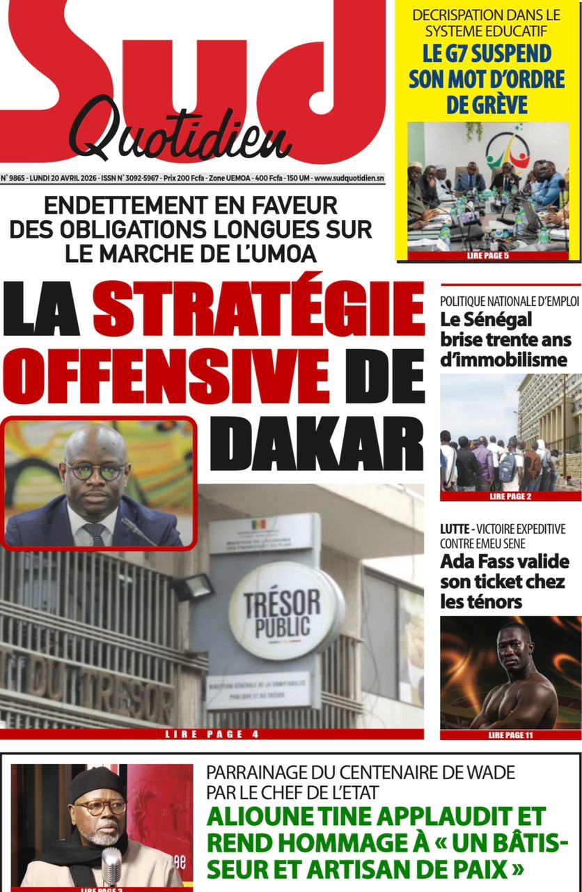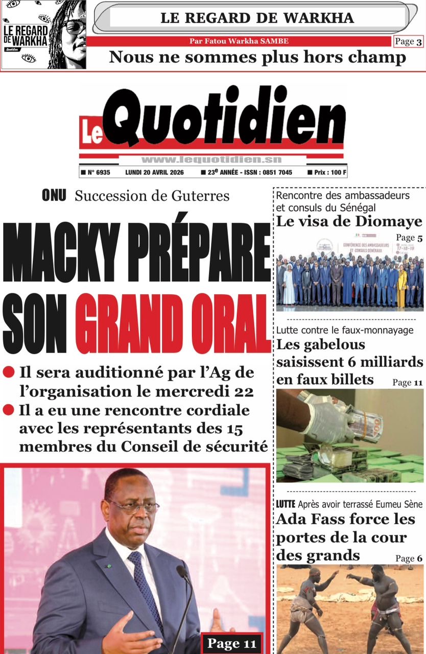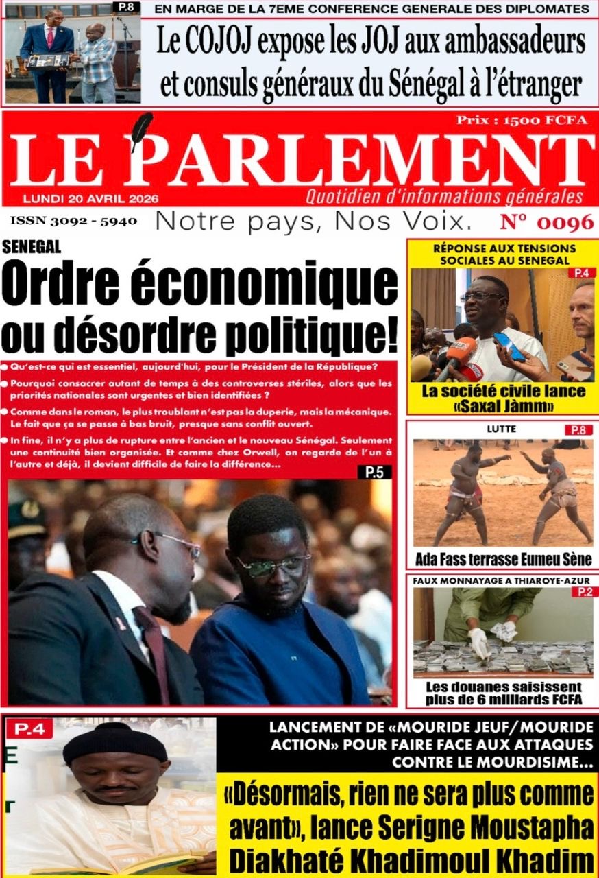 Photos. Les journaux sénégalais du lundi 20 avril 2026