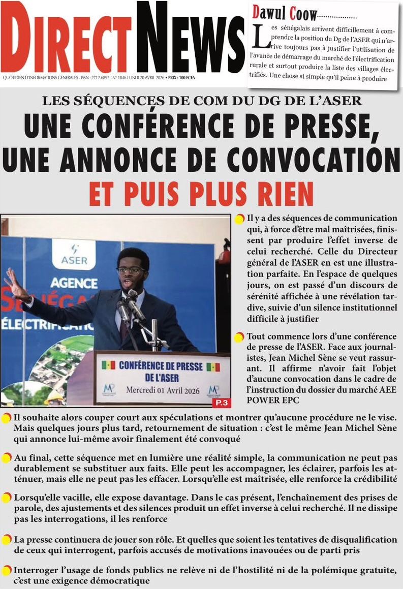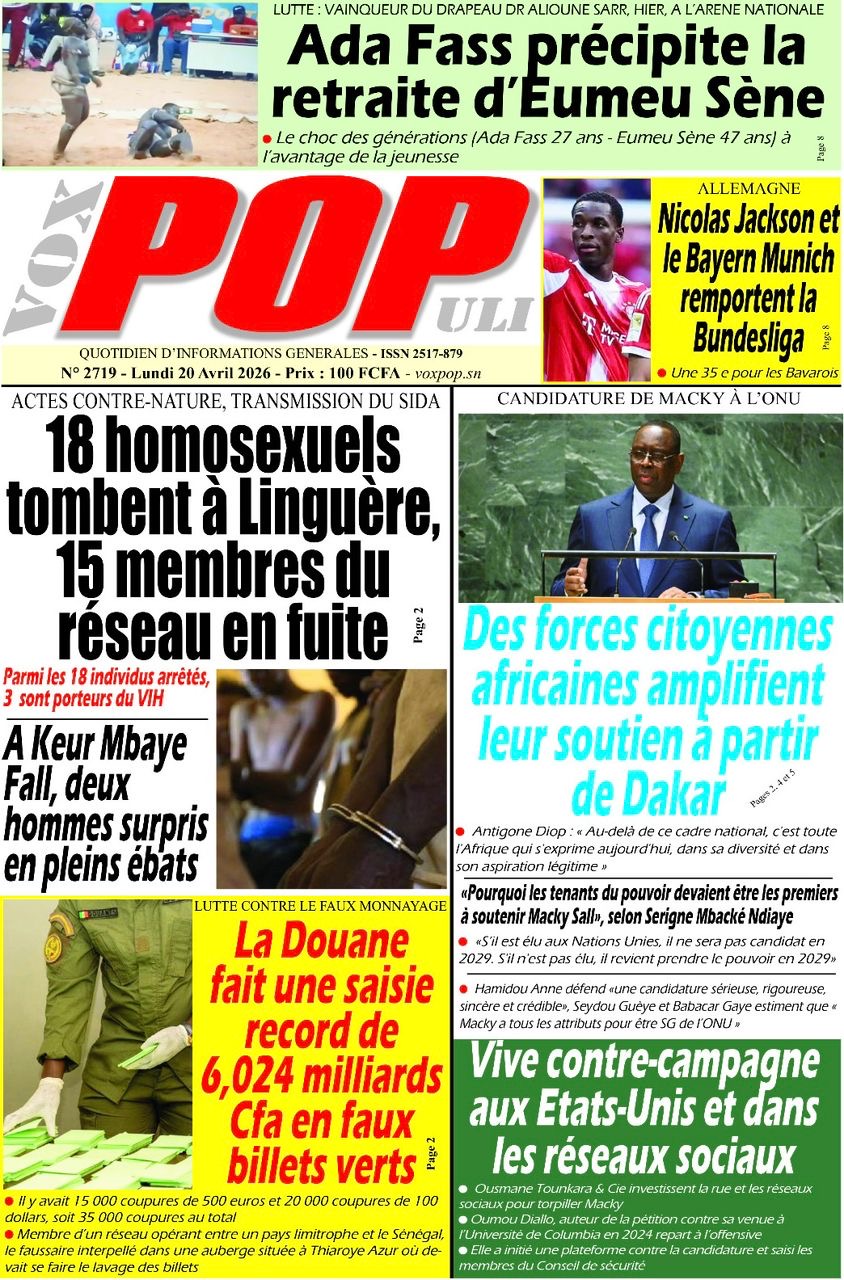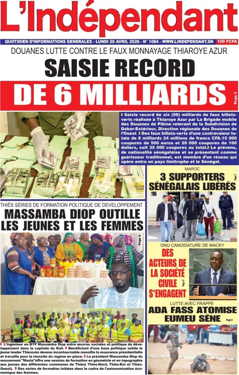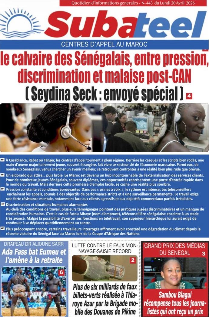 Photos. Les journaux sénégalais du lundi 20 avril 2026