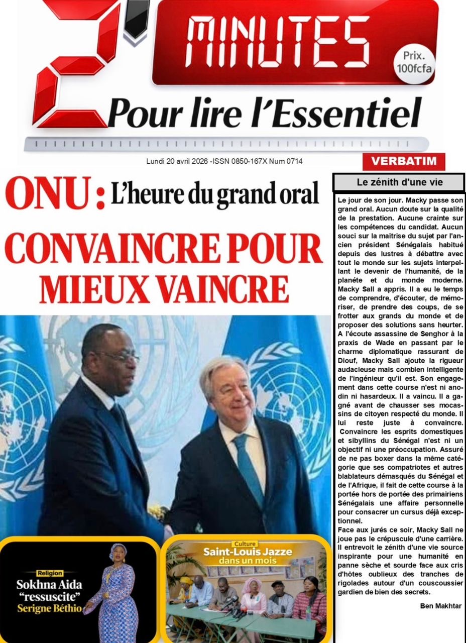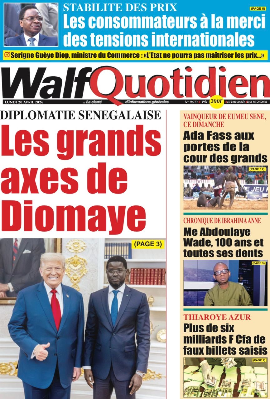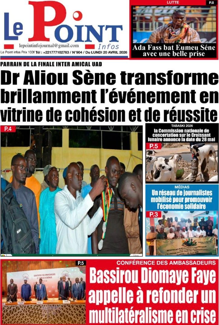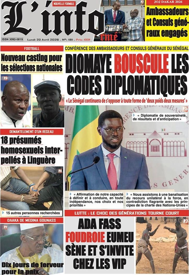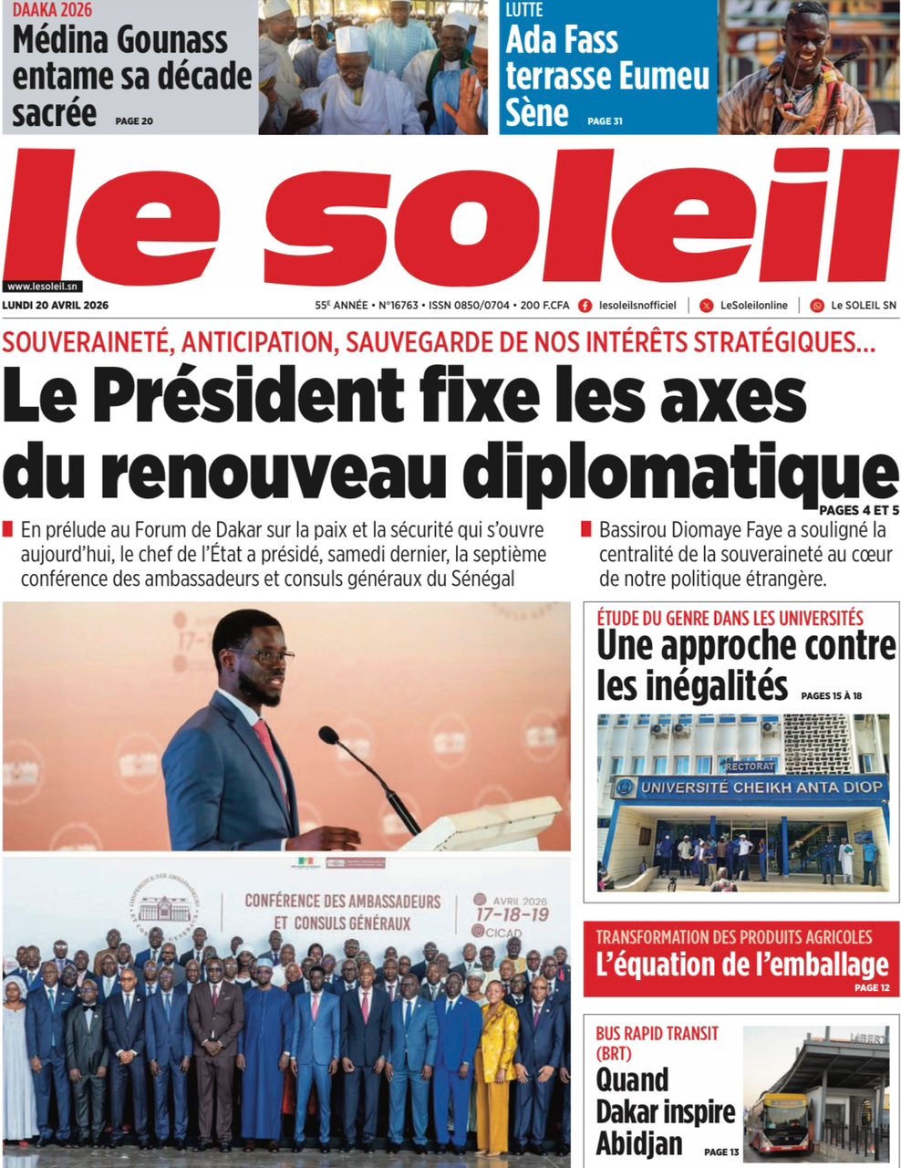 Les journaux sénégalais du lundi 20 avril 2026 font focus sur les nouveaux contours de la diplomatie sénégalaise révélée par le Président Bassirou Diomaye Faye lors de la conférence des Ambassadeurs et Consuls Généraux, organisée à Dakar.